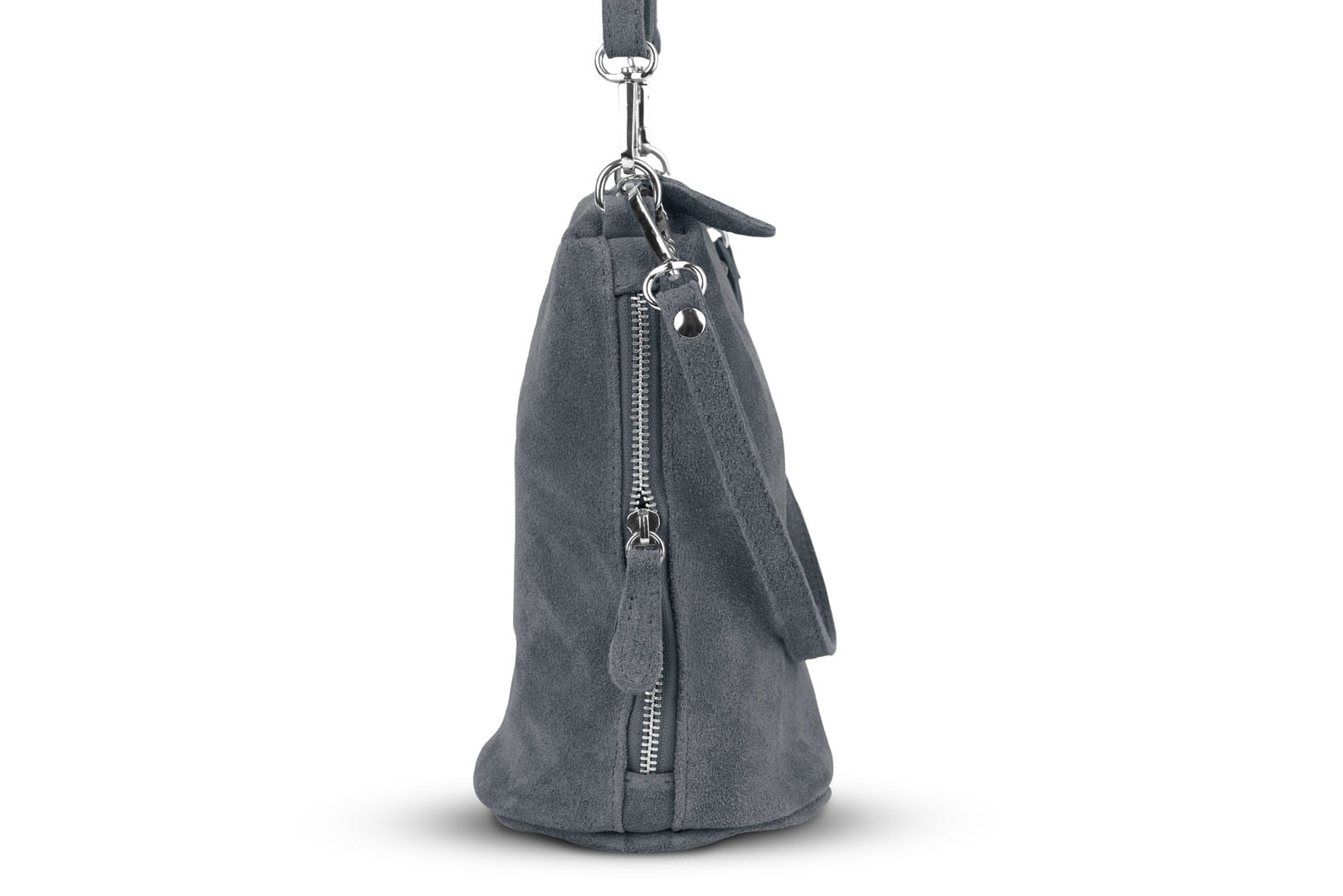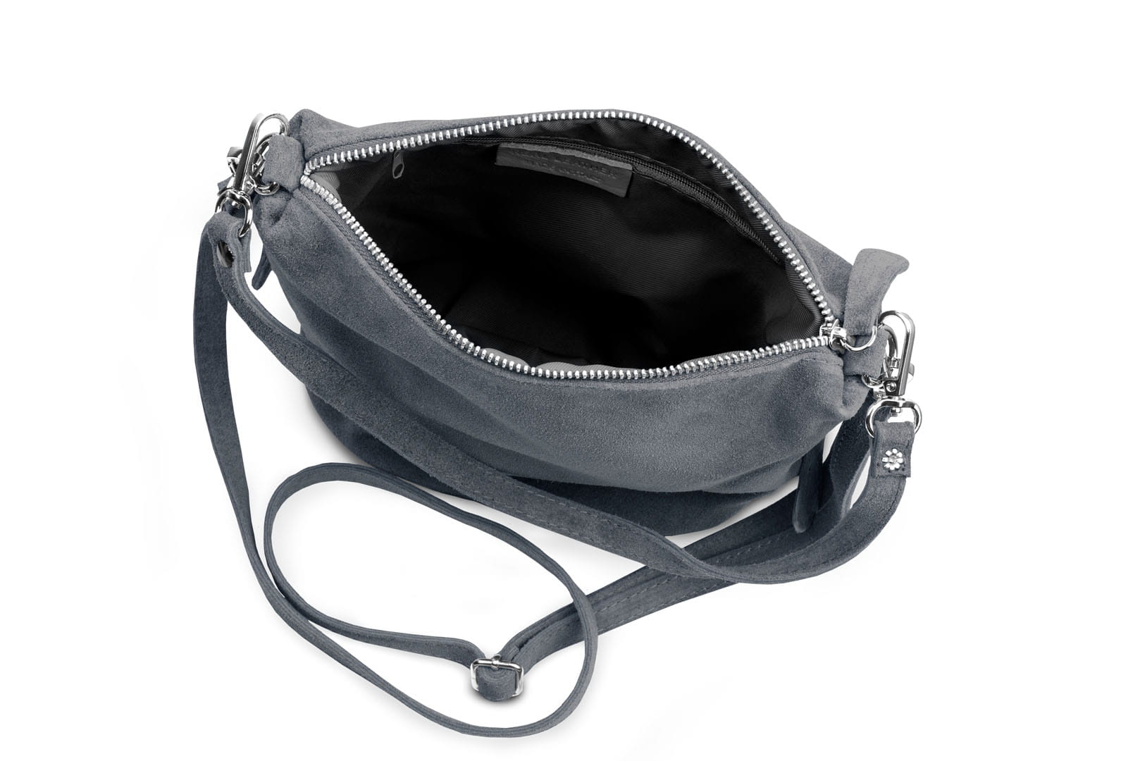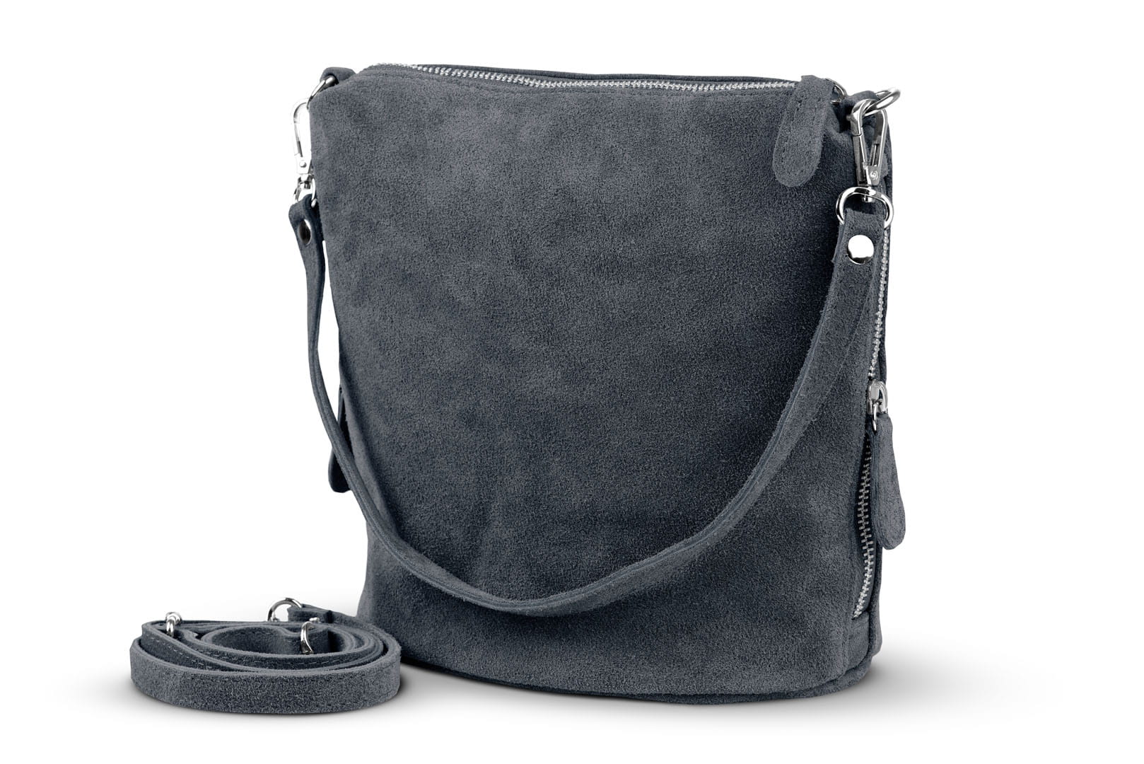 Torebka damska wykonana z wysokogatunkowego włoskiego zamszu naturalnego. Po obu stronach listonoszki znajdują się dwie praktyczne kieszonki. Dzięki dwóm paskom różnej długości, torebkę można nosić w ręku lub na ramieniu.