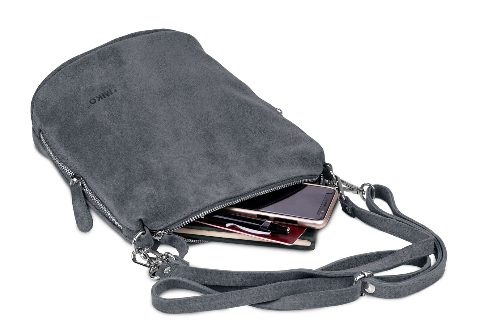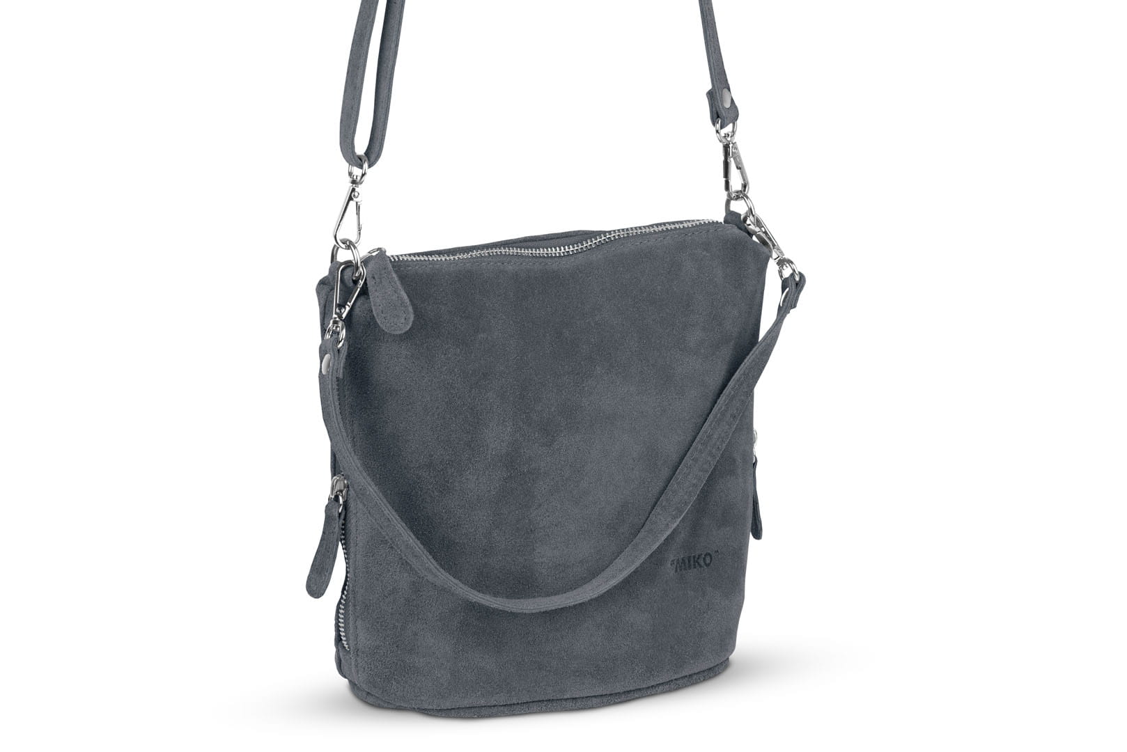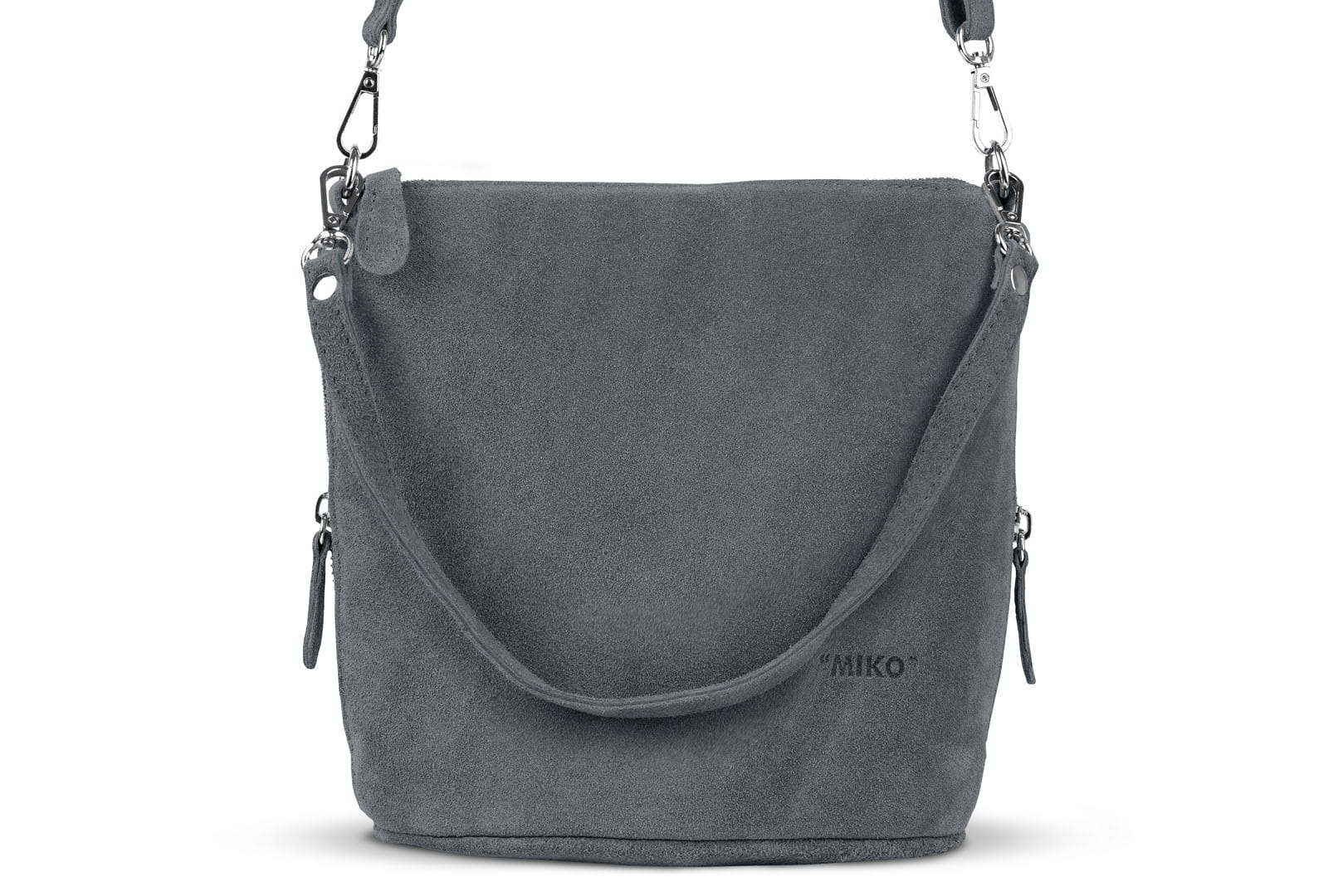 Torebka damska wykonana z wysokogatunkowego włoskiego zamszu naturalnego. Po obu stronach listonoszki znajdują się dwie praktyczne kieszonki. Dzięki dwóm paskom różnej długości, torebkę można nosić w ręku lub na ramieniu.