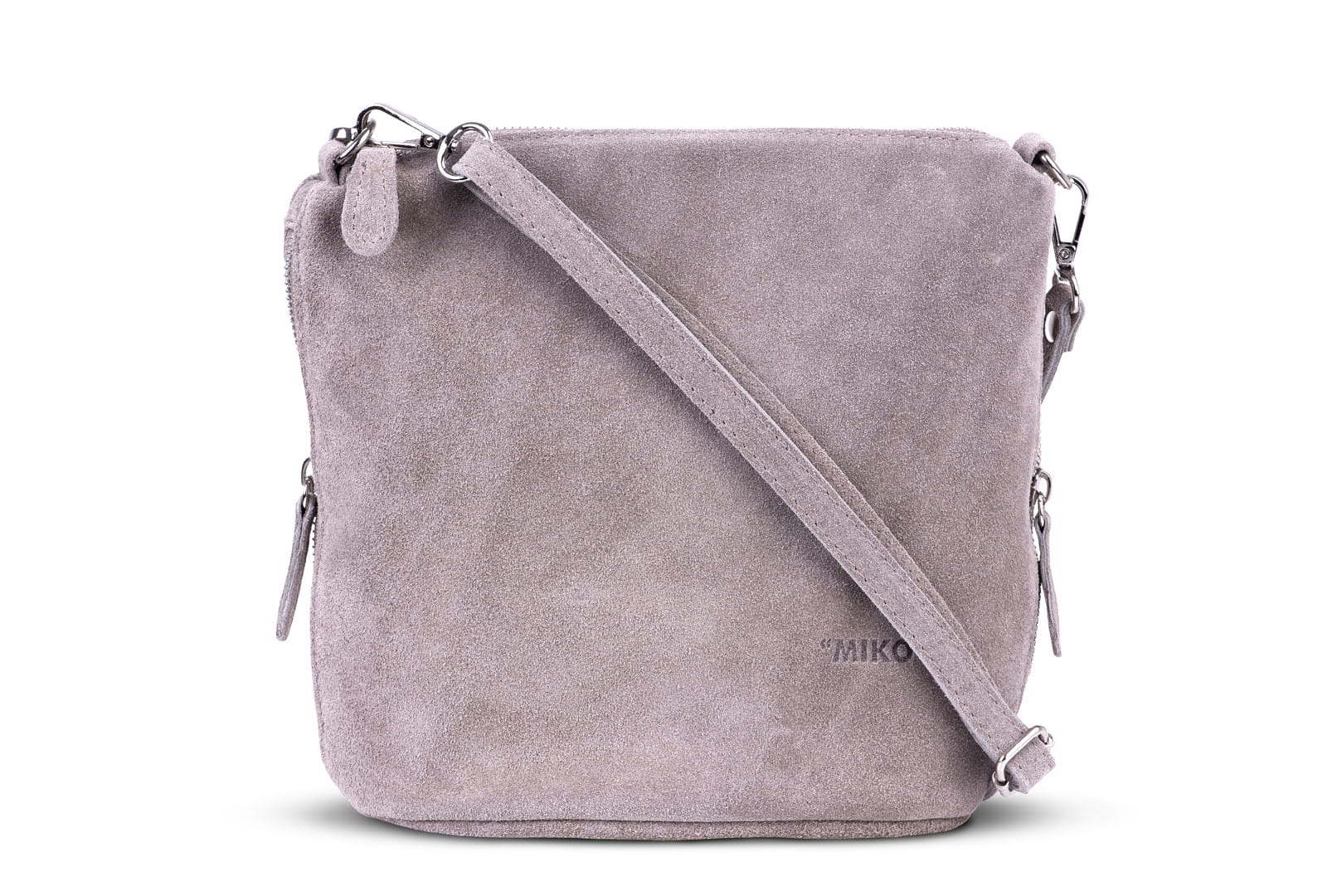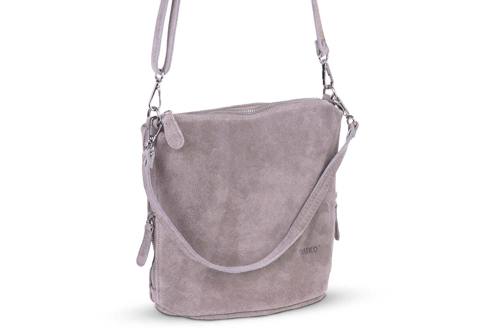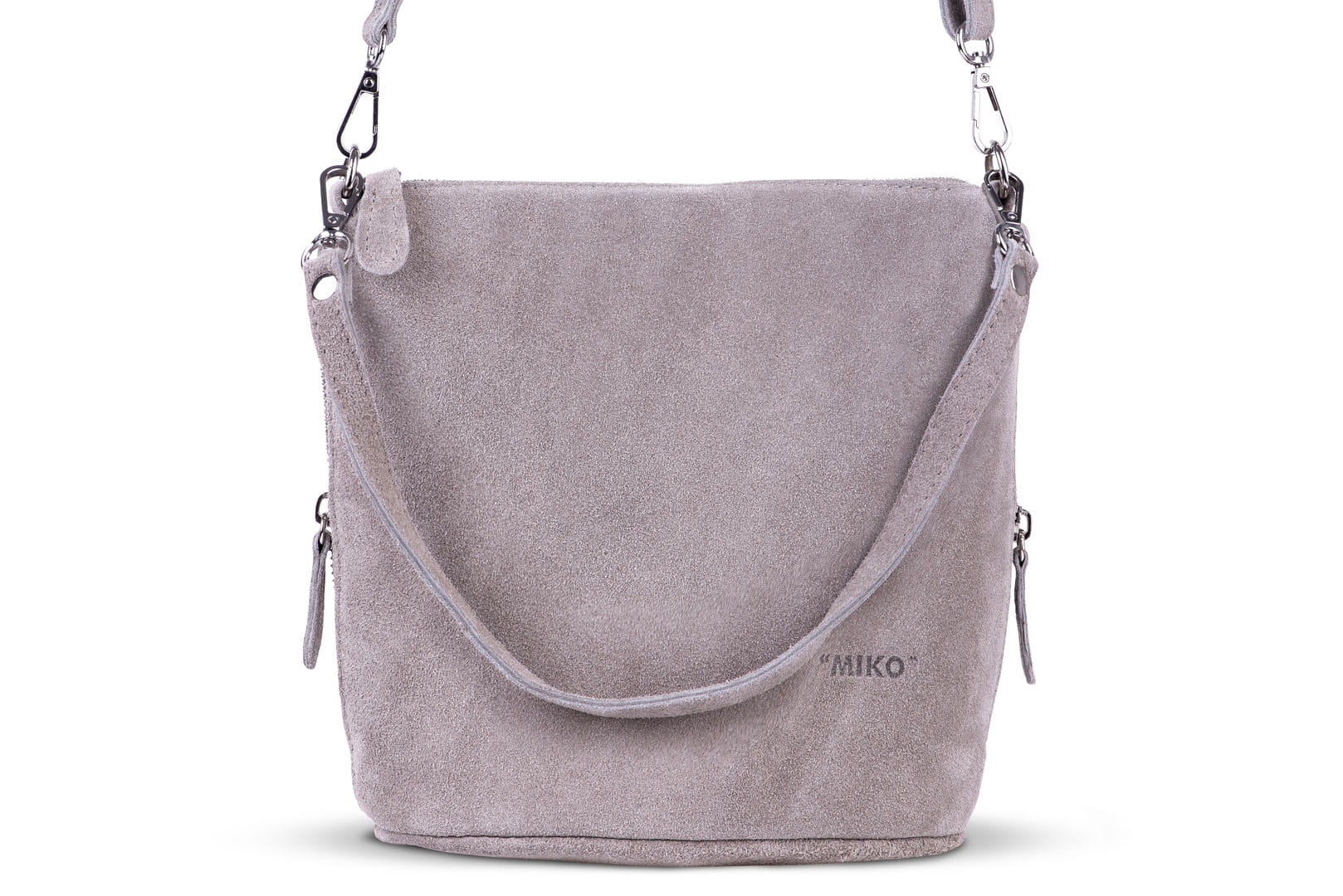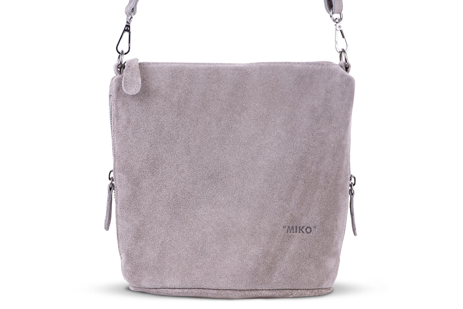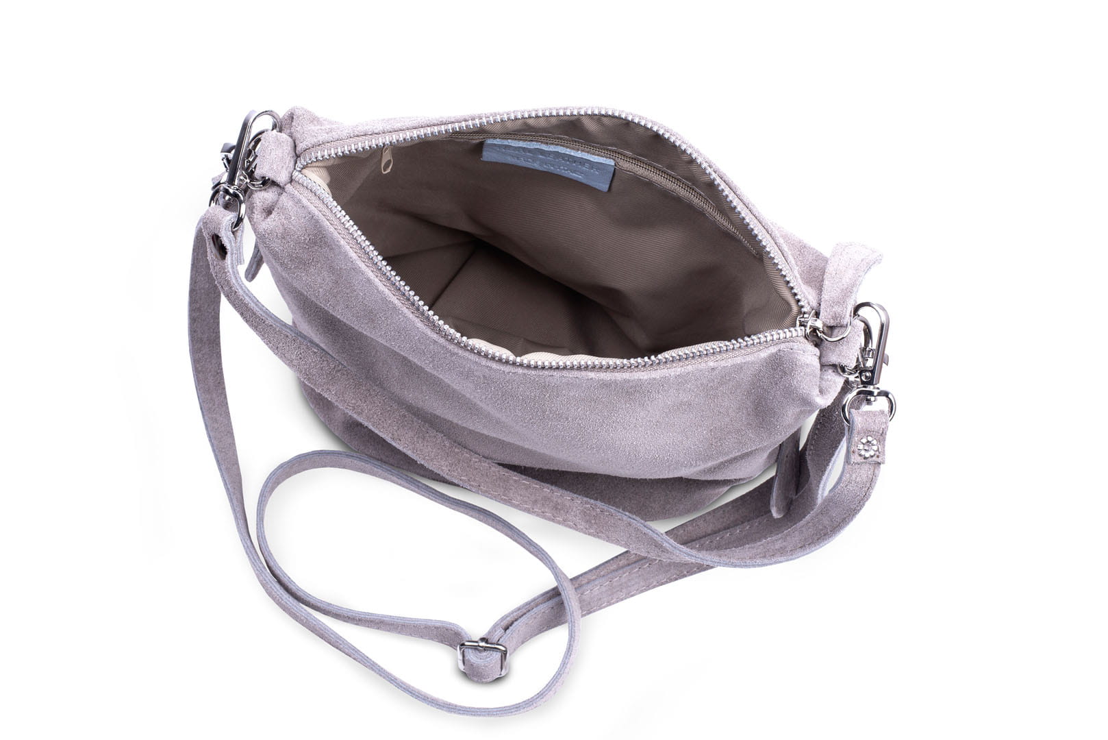 Torebka damska wykonana z wysokogatunkowego włoskiego zamszu naturalnego. Po obu stronach listonoszki znajdują się dwie praktyczne kieszonki. Dzięki dwóm paskom różnej długości, torebkę można nosić w ręku lub na ramieniu.