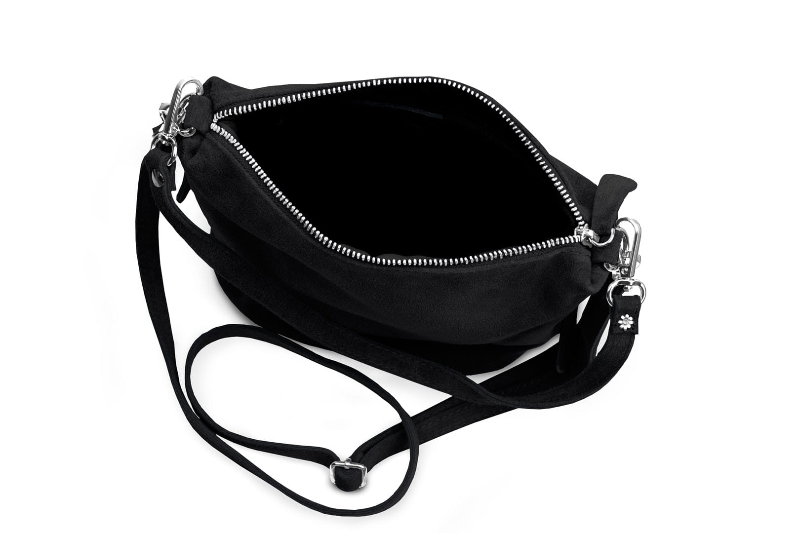 Torebka damska wykonana z wysokogatunkowego włoskiego zamszu naturalnego. Po obu stronach listonoszki znajdują się dwie praktyczne kieszonki. Dzięki dwóm paskom różnej długości, torebkę można nosić w ręku lub na ramieniu.