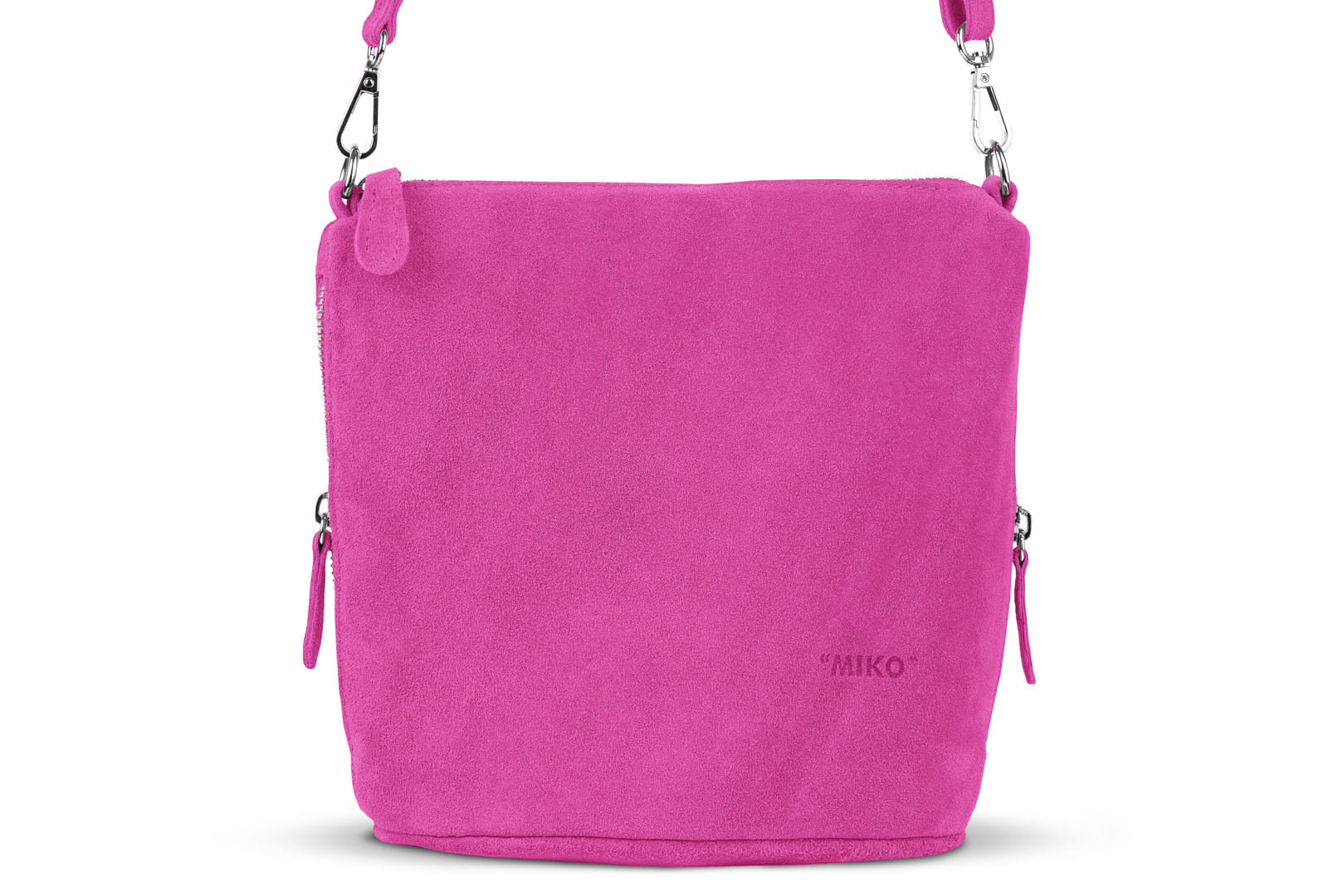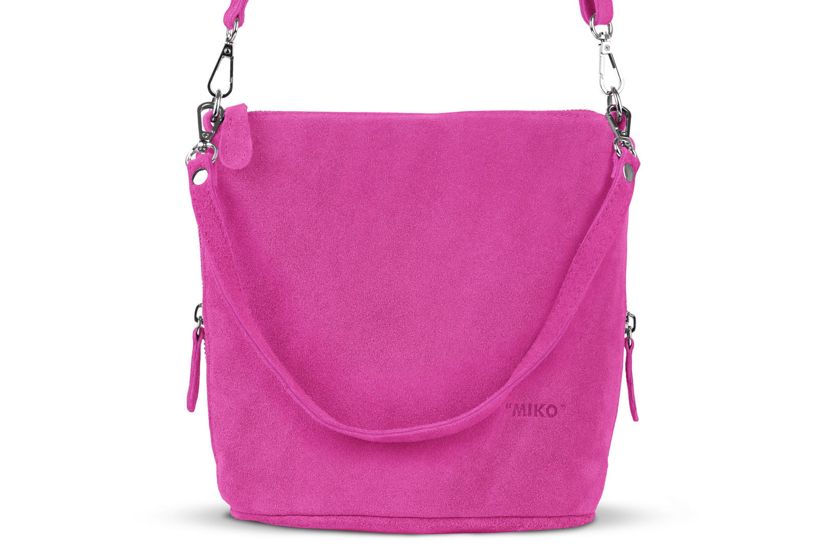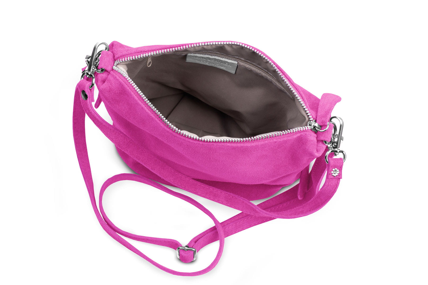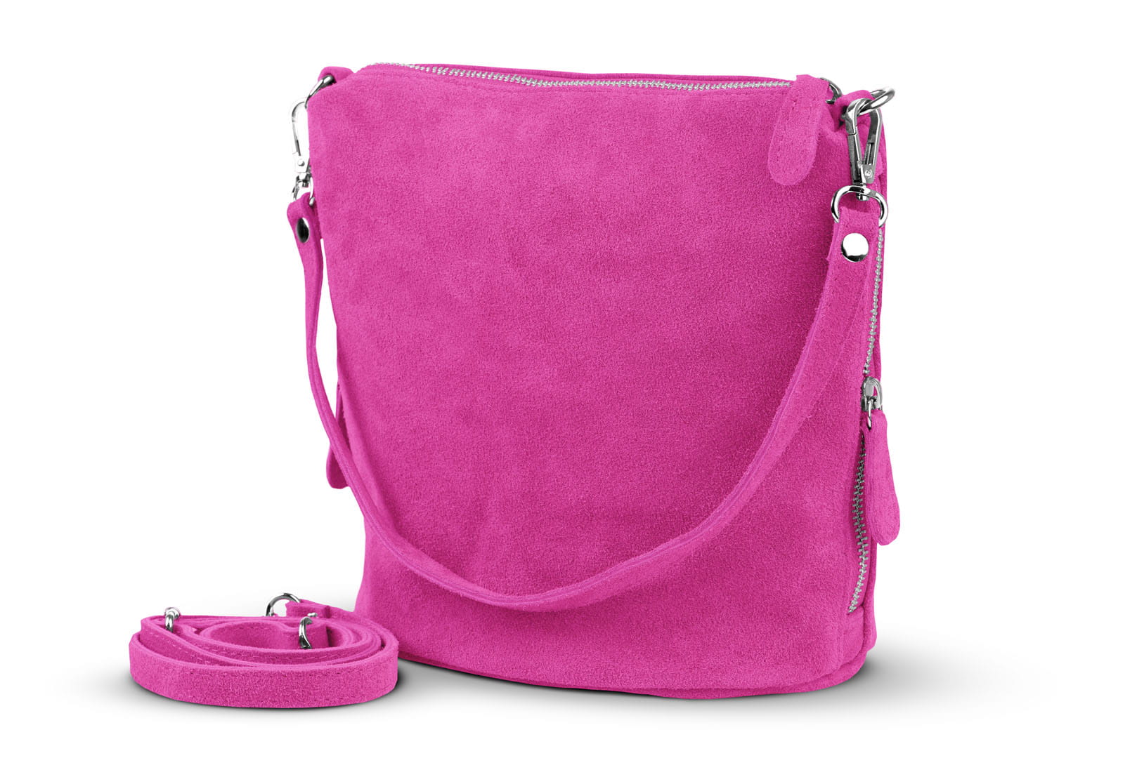Torebka damska wykonana z wysokogatunkowego włoskiego zamszu naturalnego. Po obu stronach listonoszki znajdują się dwie praktyczne kieszonki. Dzięki dwóm paskom różnej długości, torebkę można nosić w ręku lub na ramieniu.