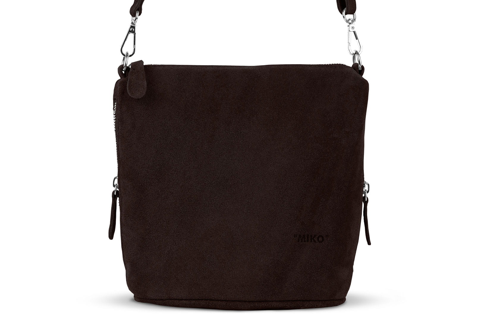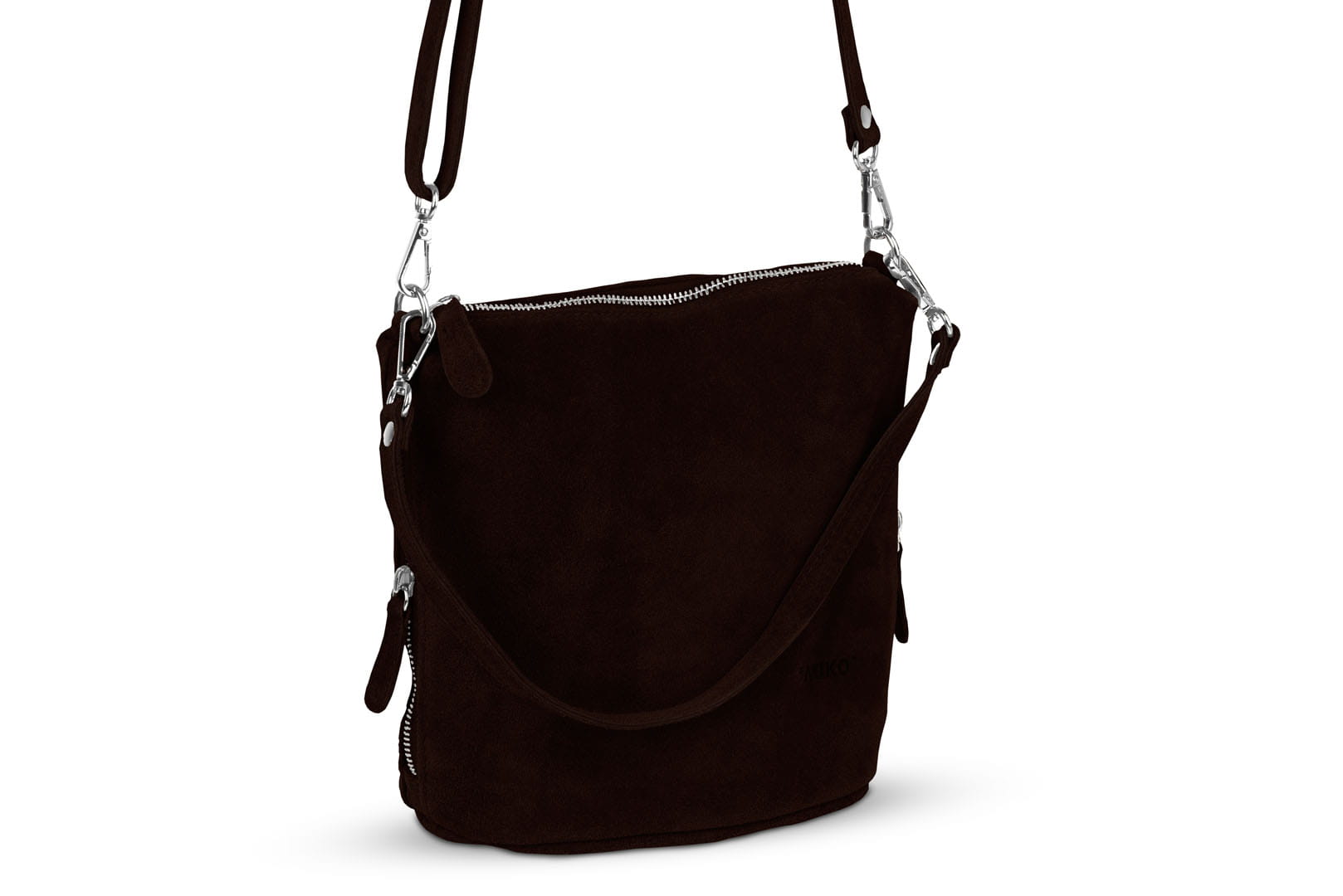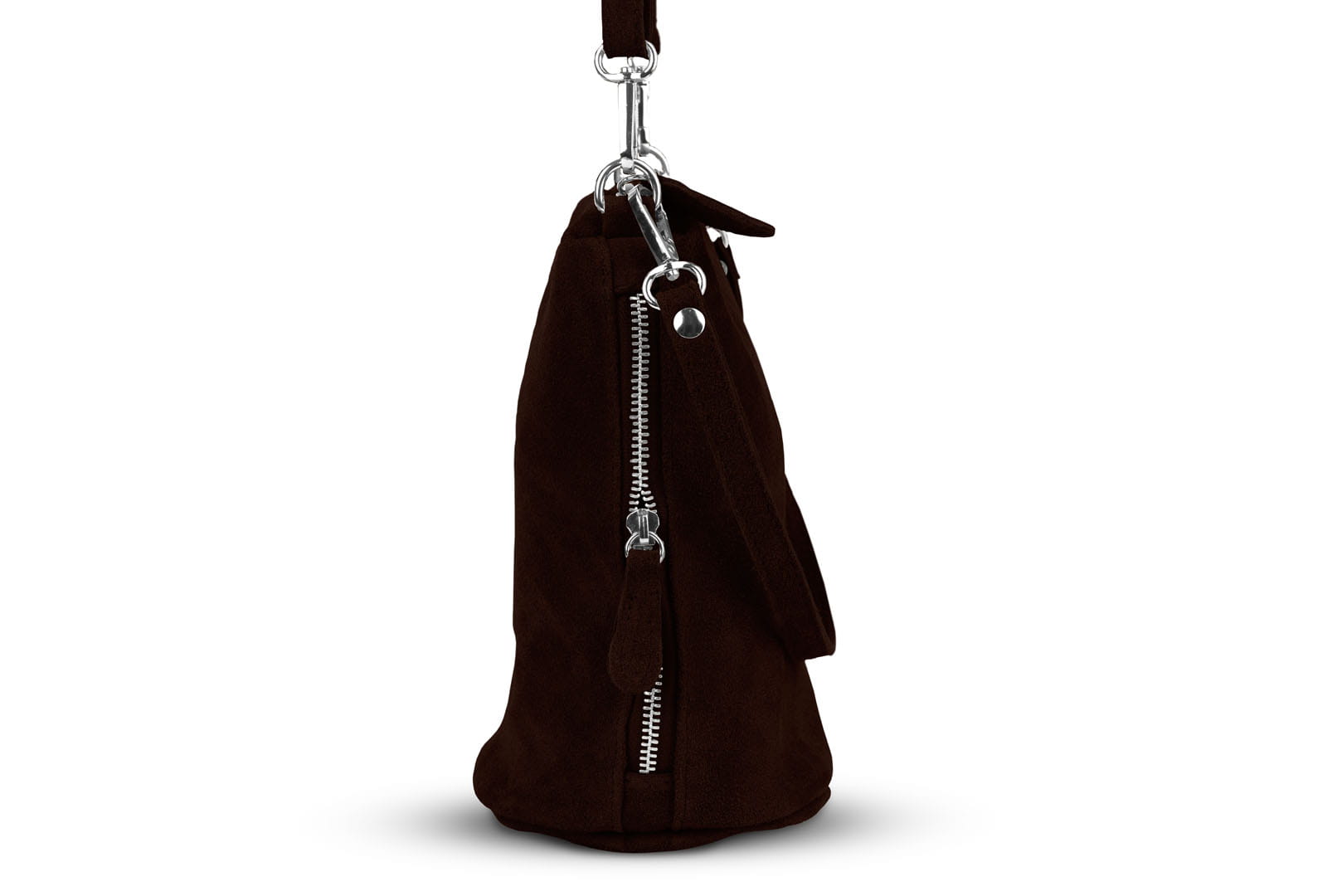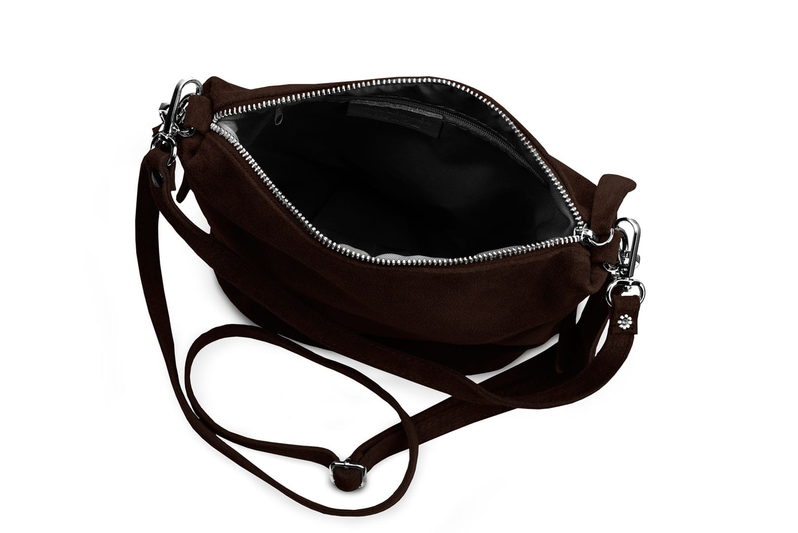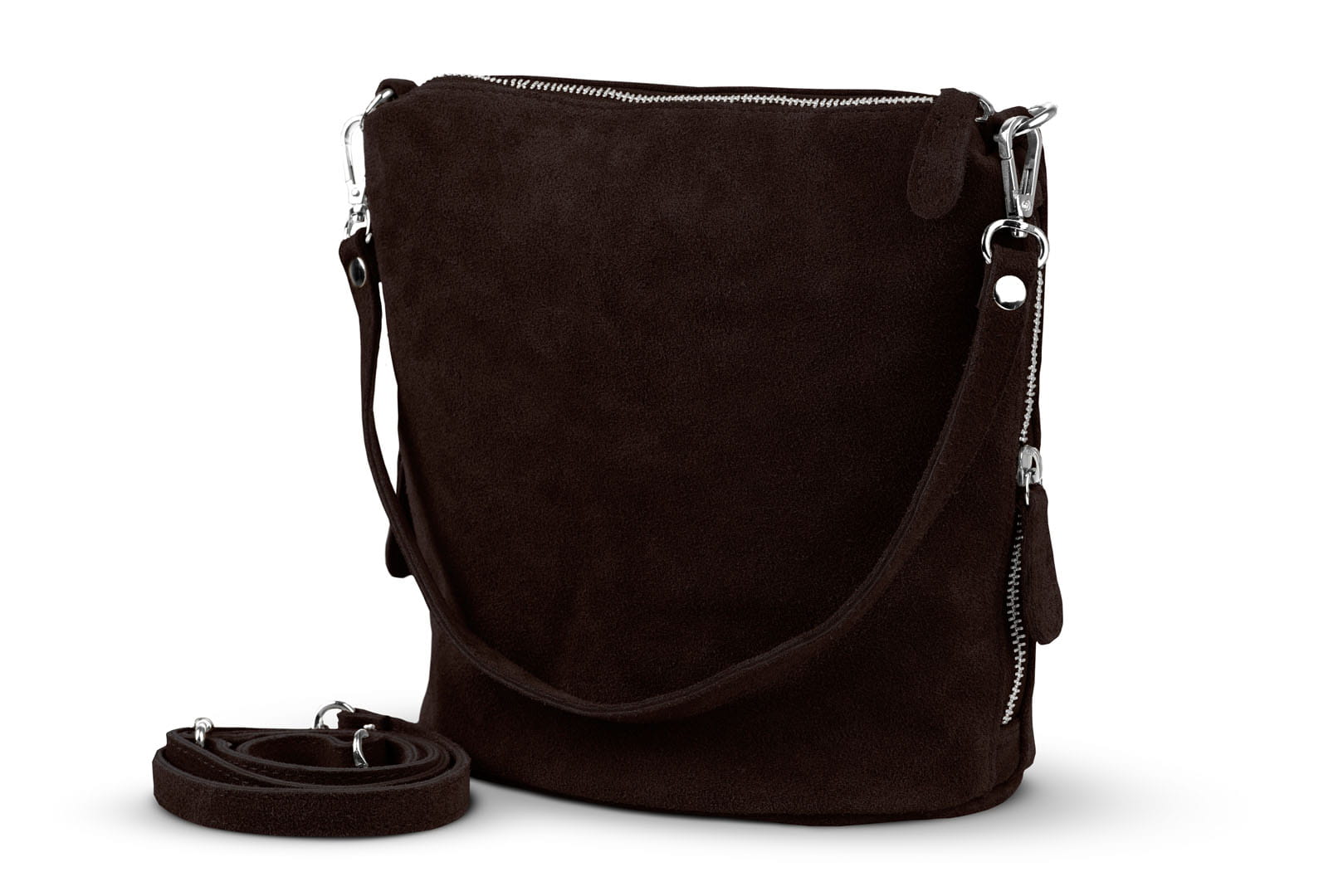 Torebka damska wykonana z wysokogatunkowego włoskiego zamszu naturalnego. Po obu stronach listonoszki znajdują się dwie praktyczne kieszonki. Dzięki dwóm paskom różnej długości, torebkę można nosić w ręku lub na ramieniu.