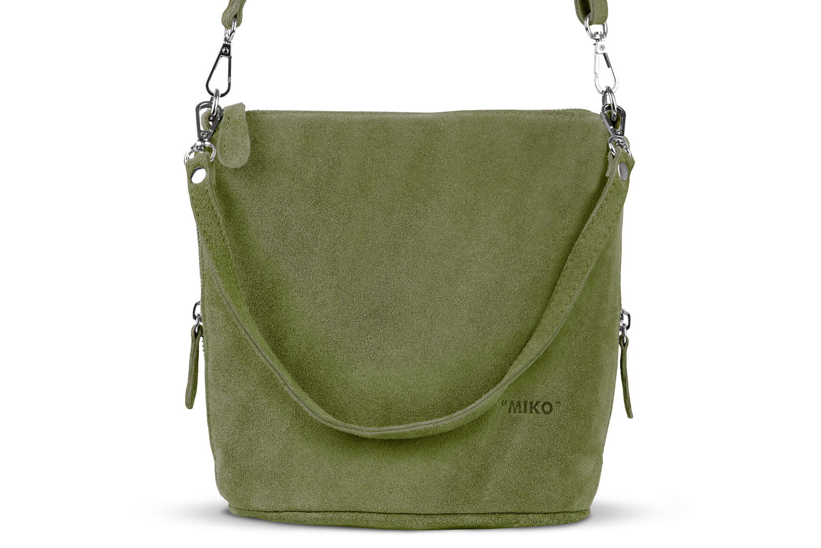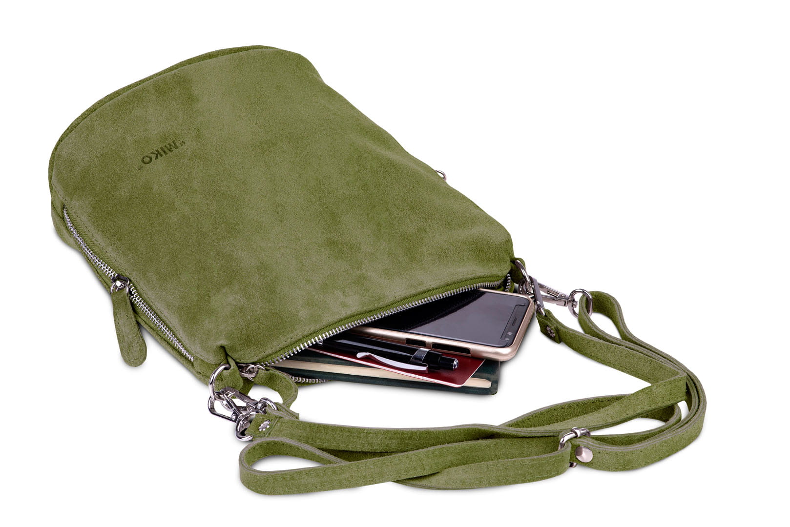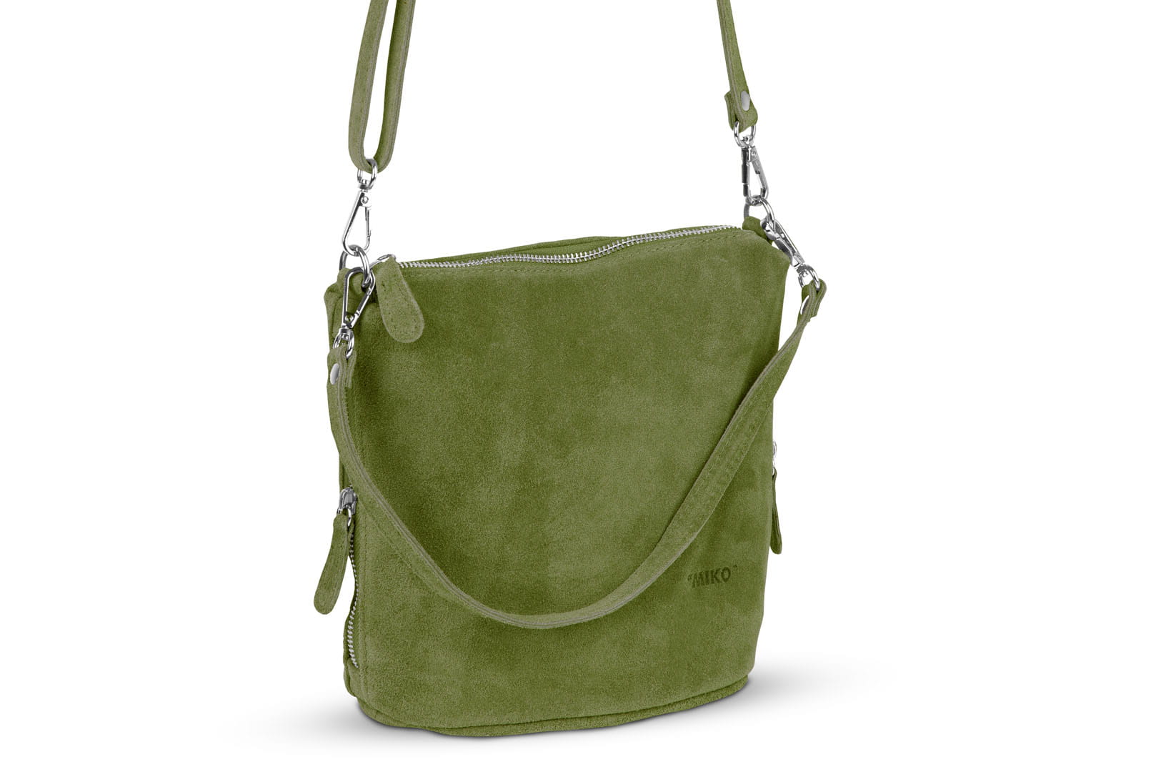 Torebka damska wykonana z wysokogatunkowego włoskiego zamszu naturalnego. Po obu stronach listonoszki znajdują się dwie praktyczne kieszonki. Dzięki dwóm paskom różnej długości, torebkę można nosić w ręku lub na ramieniu.