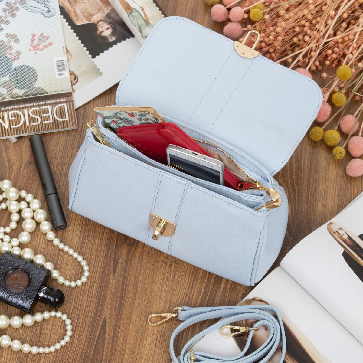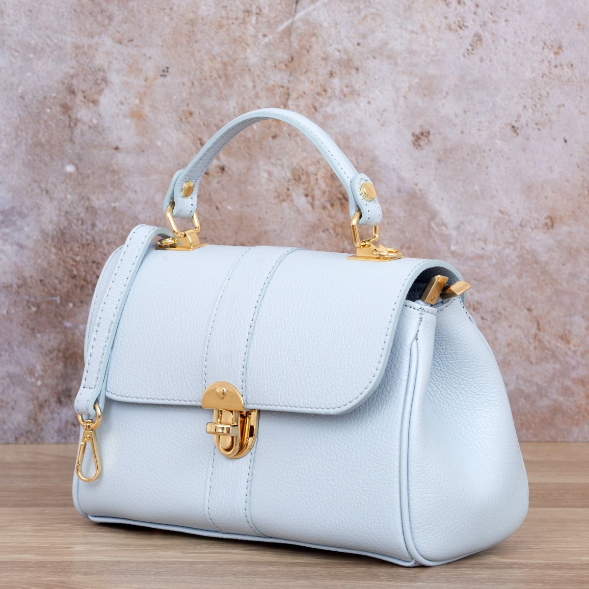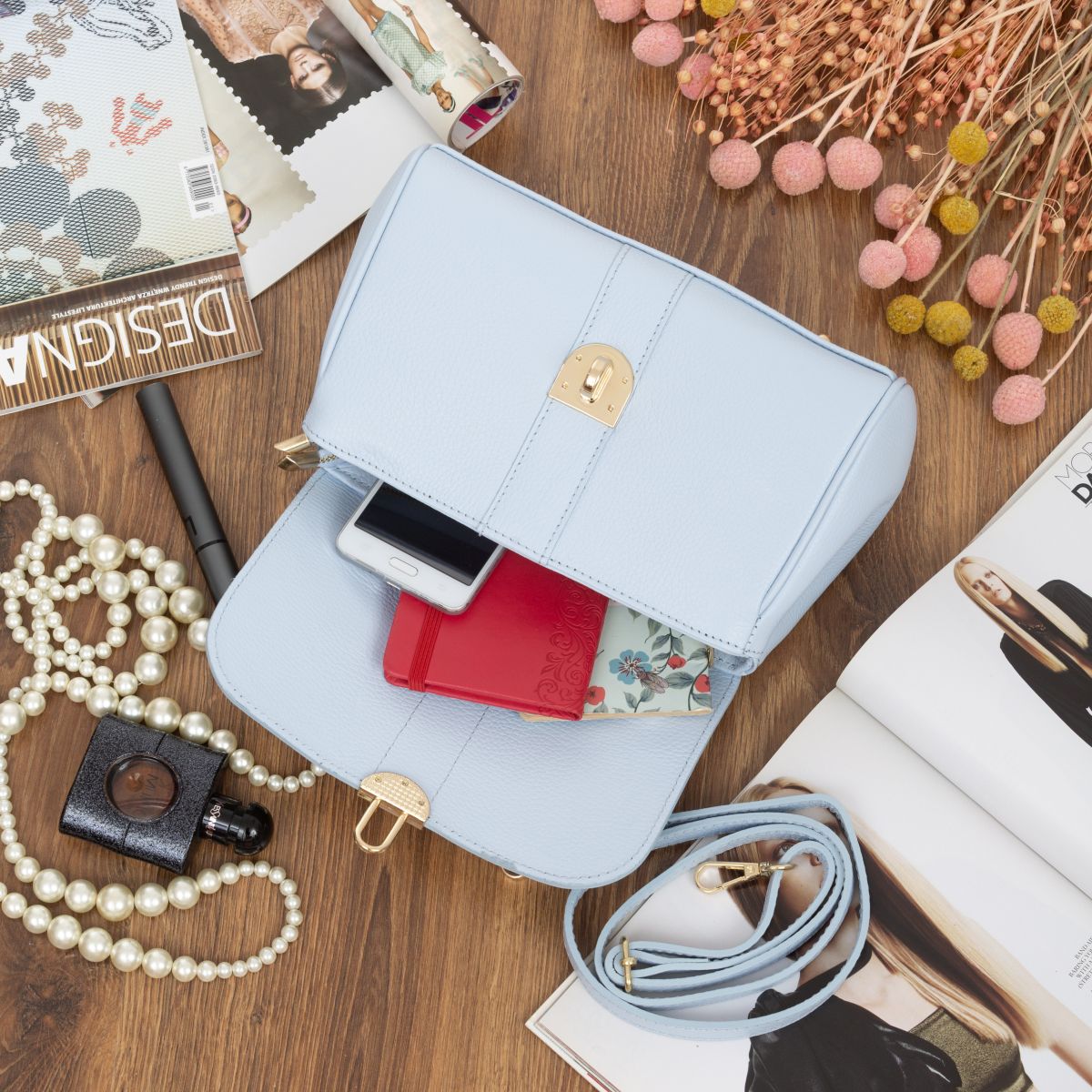 Torebka Damska Na Ramię Do Ręki Skórzana Vera Pelle Giovita Błękitna