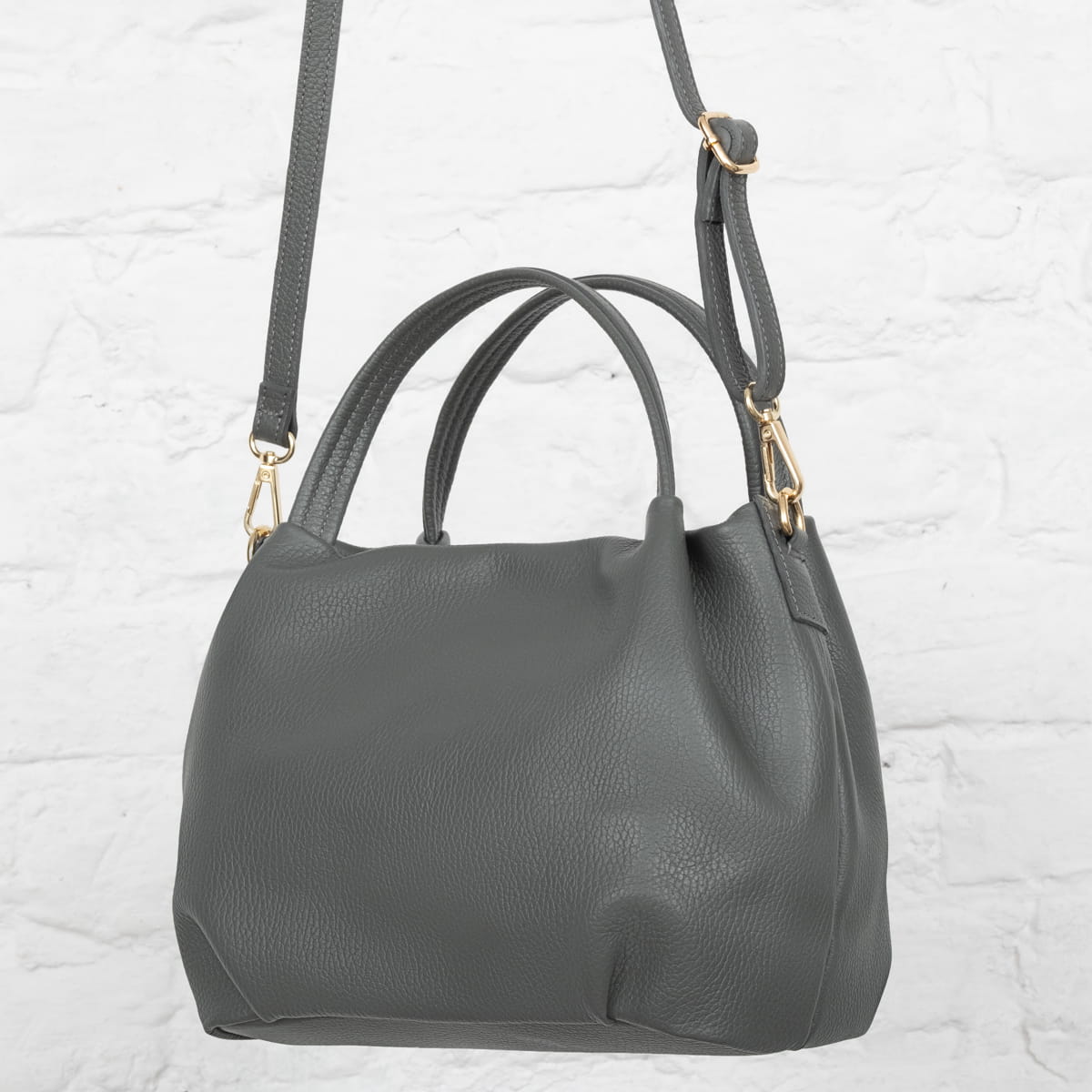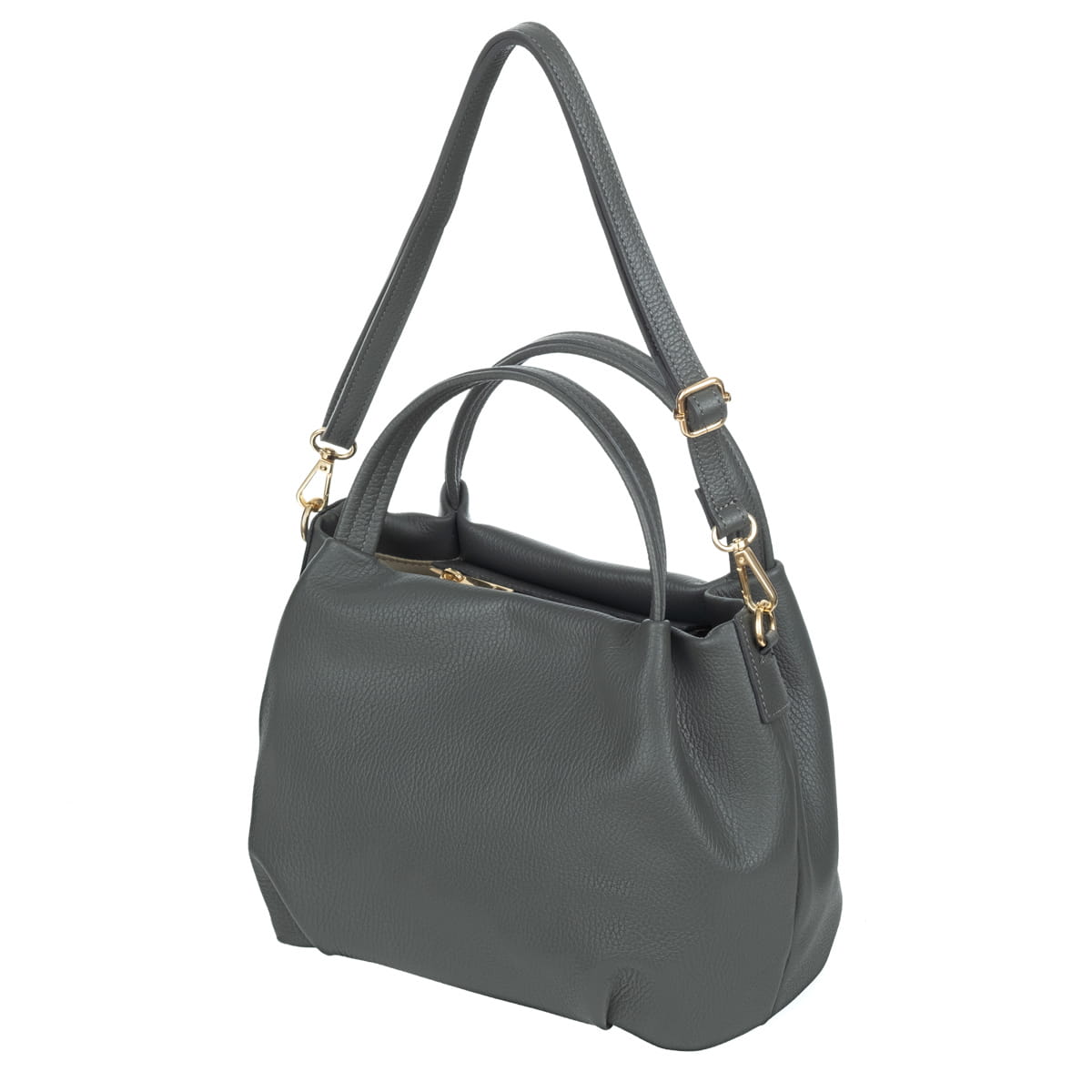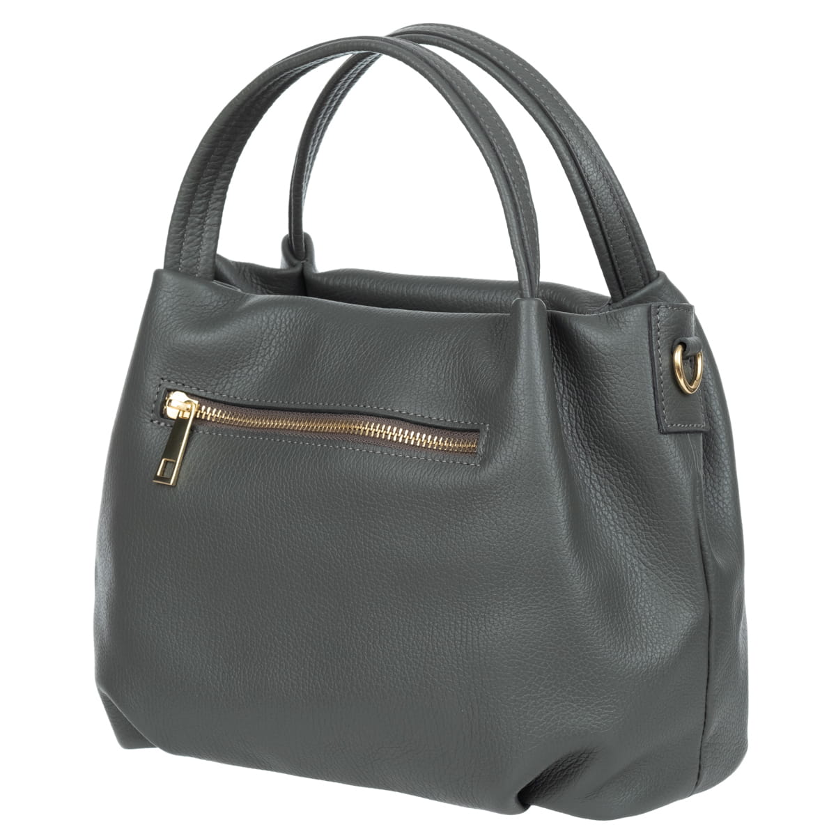 Miejska torebka damska średniej wielkości, wykonana z włoskiej skóry naturalnej. Z tyłu torebki jest kieszonka zamykana na suwak. Para uchwytów i odpinany pasek pozwala nosić torebkę w ręku, na przedramieniu lub na ramieniu.