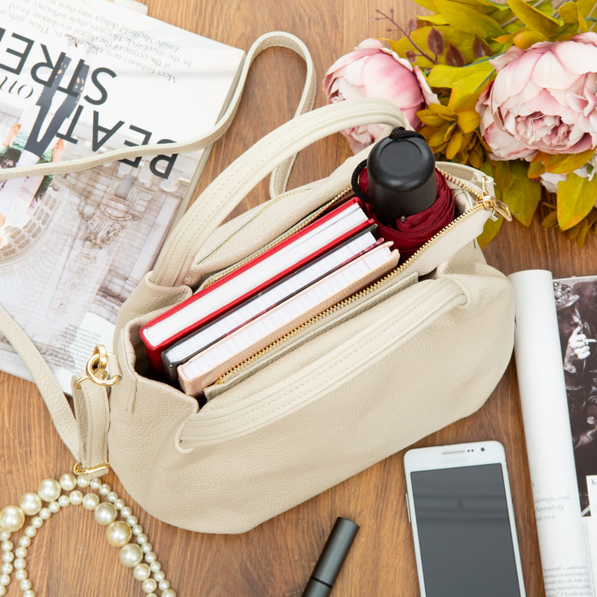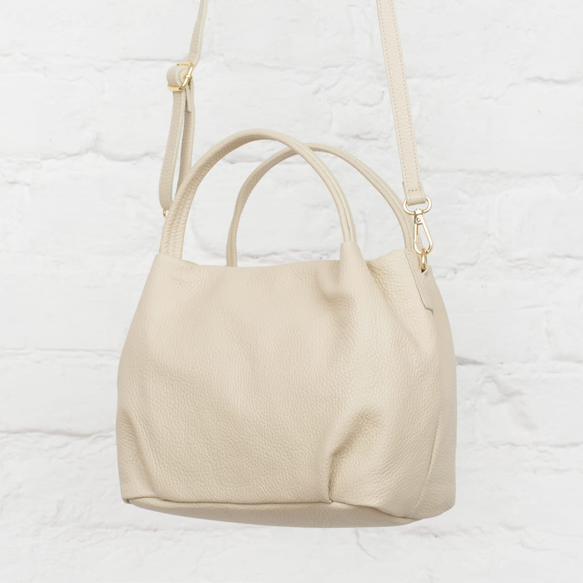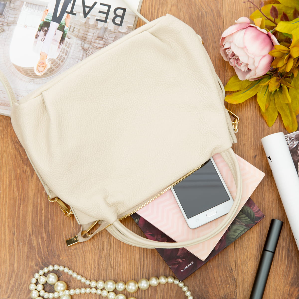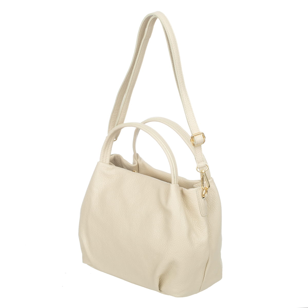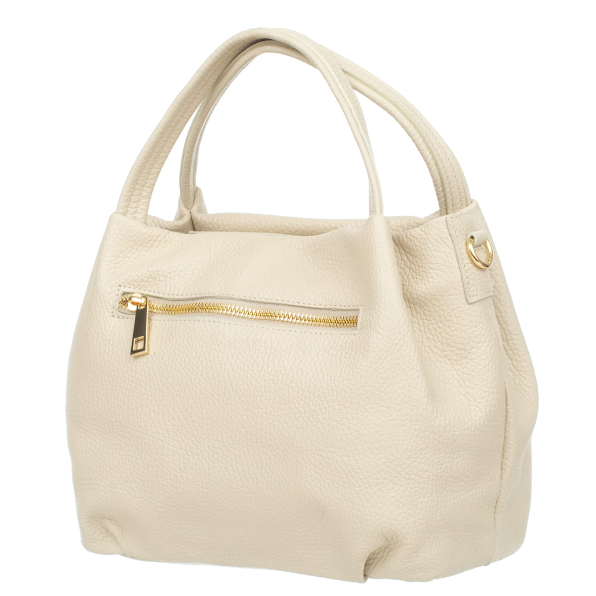 Miejska torebka damska średniej wielkości, wykonana z włoskiej skóry naturalnej. Z tyłu torebki jest kieszonka zamykana na suwak. Para uchwytów i odpinany pasek pozwala nosić torebkę w ręku, na przedramieniu lub na ramieniu.