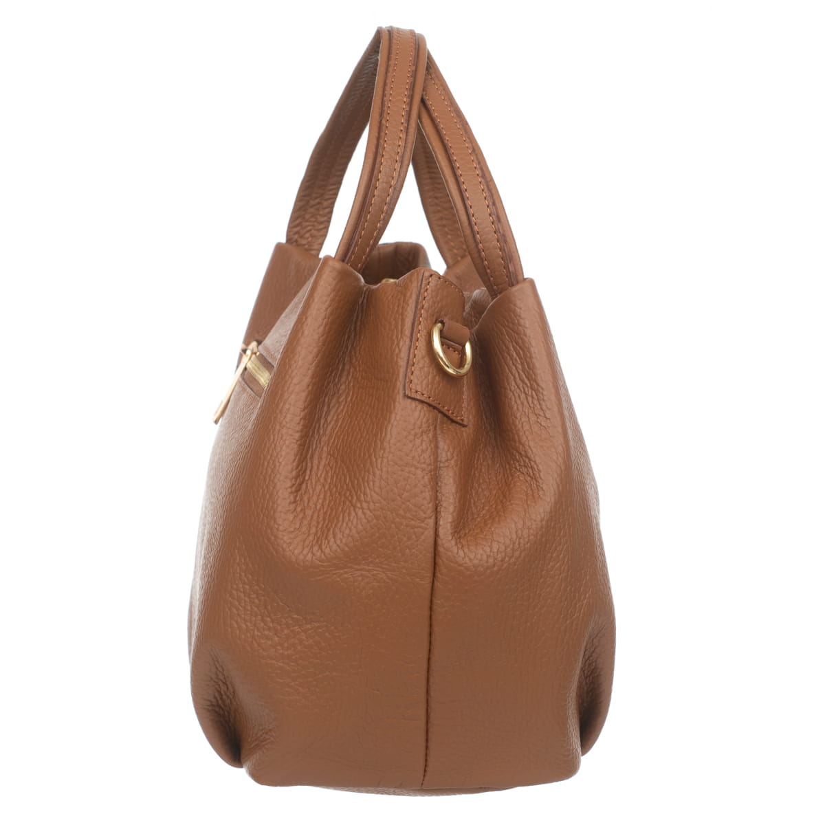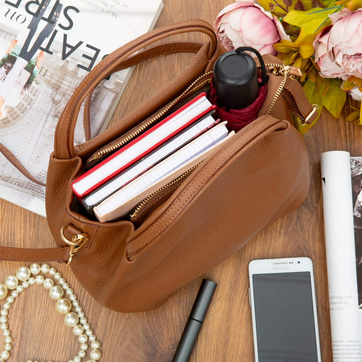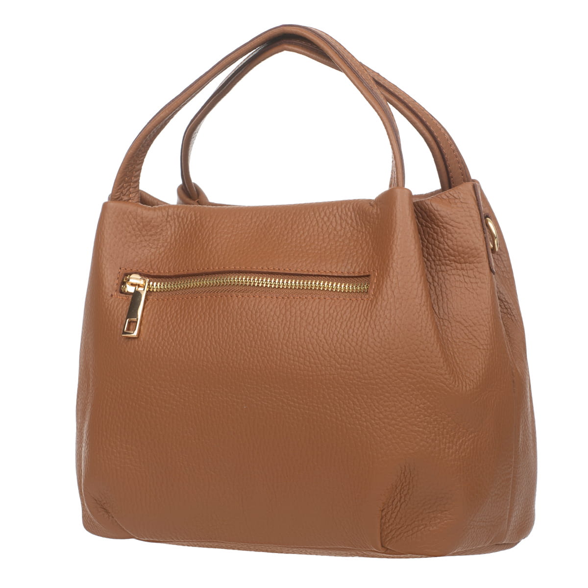 Miejska torebka damska średniej wielkości, wykonana z włoskiej skóry naturalnej. Z tyłu torebki jest kieszonka zamykana na suwak. Para uchwytów i odpinany pasek pozwala nosić torebkę w ręku, na przedramieniu lub na ramieniu.