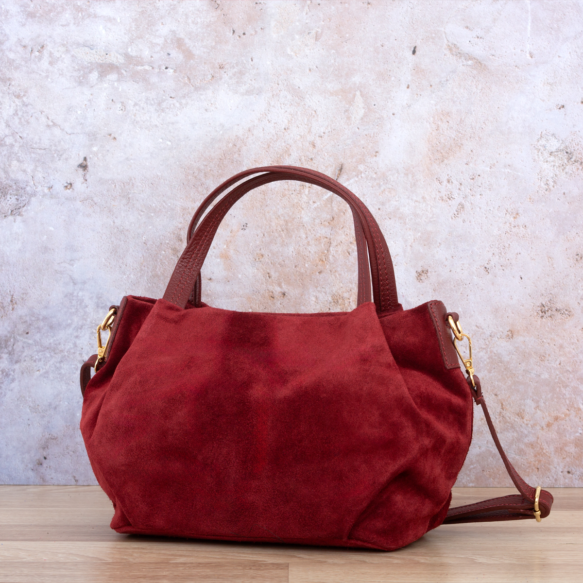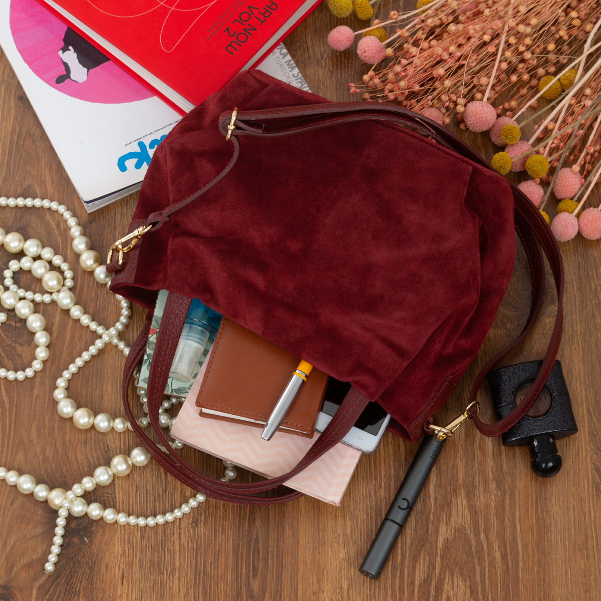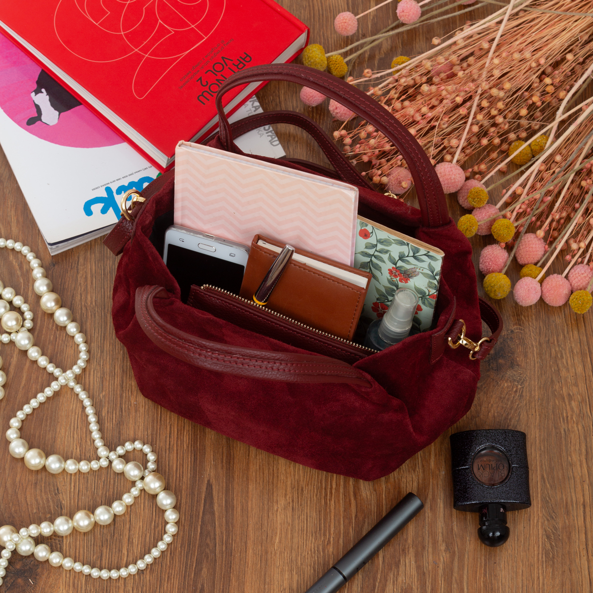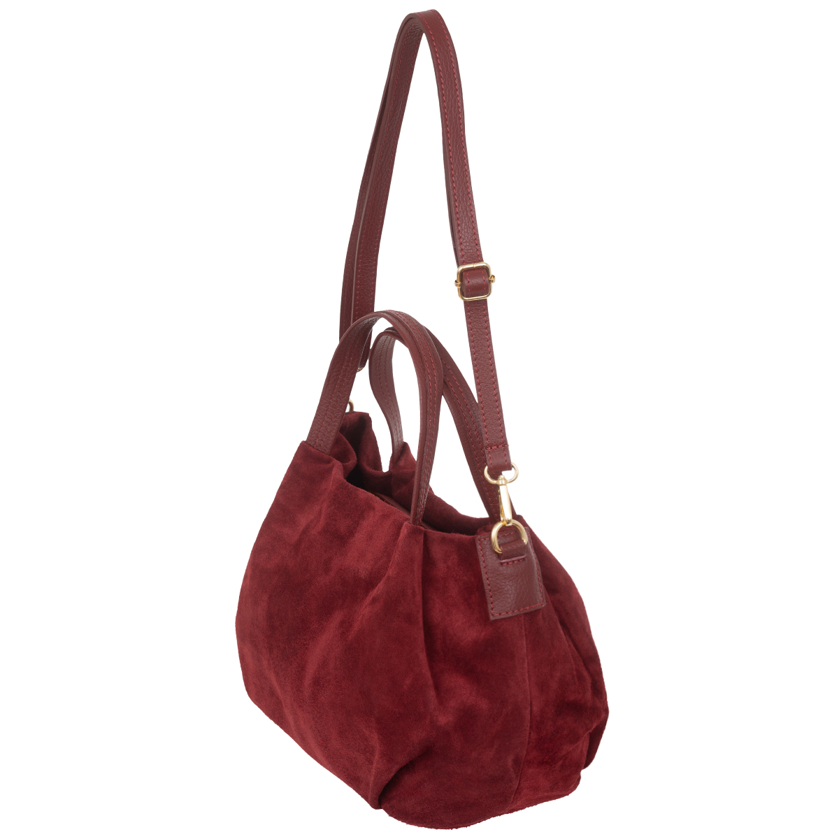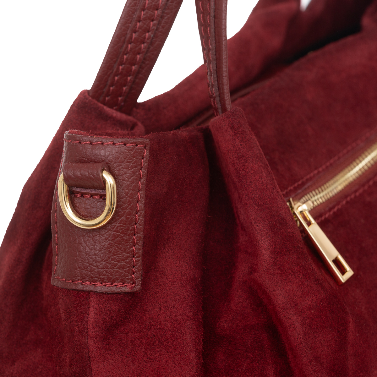 Torebka Damska Na Ramię Zamszowa Vera Pelle Bolsa Bordowa