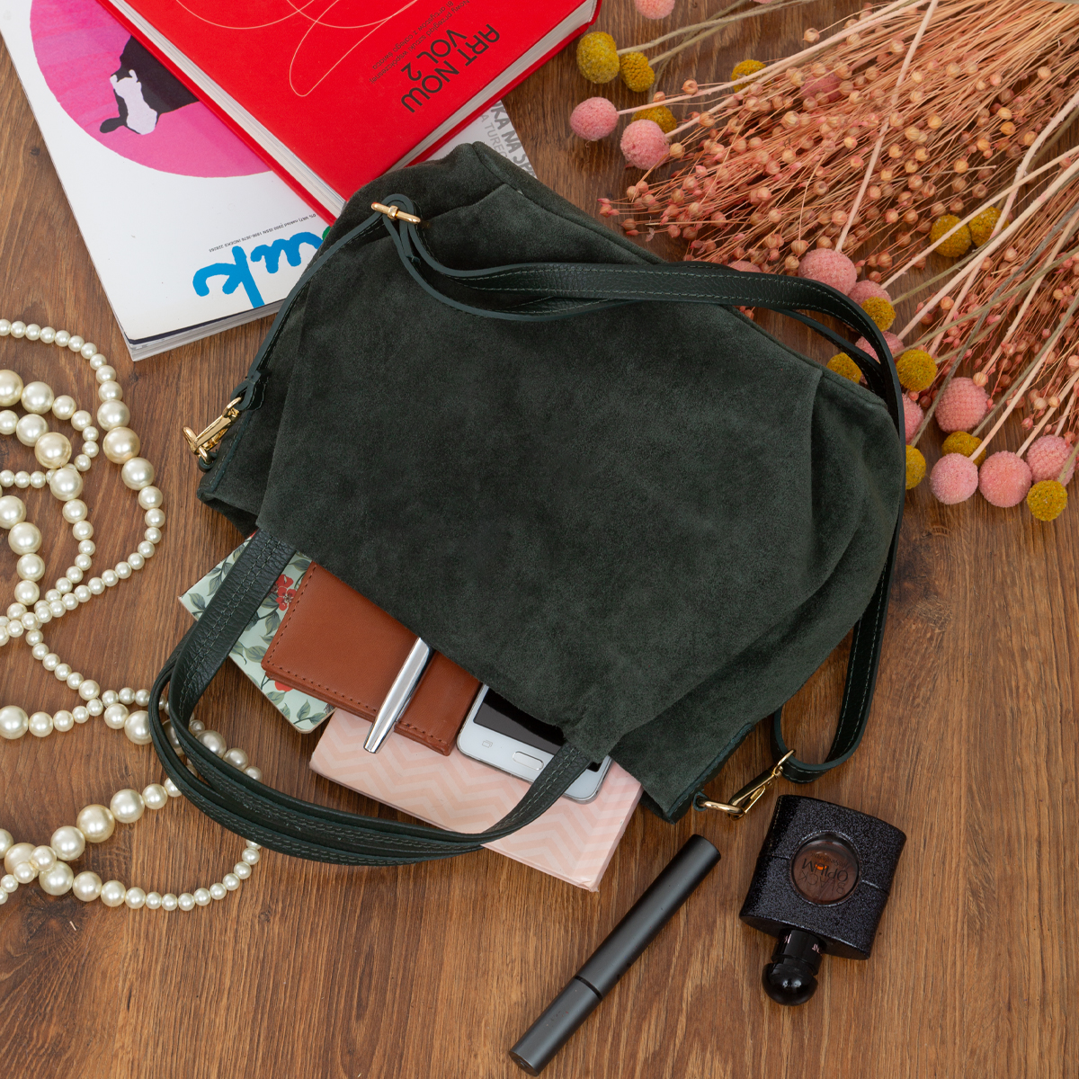 Torebka Damska Na Ramię Zamszowa Vera Pelle Bolsa Butelkowa