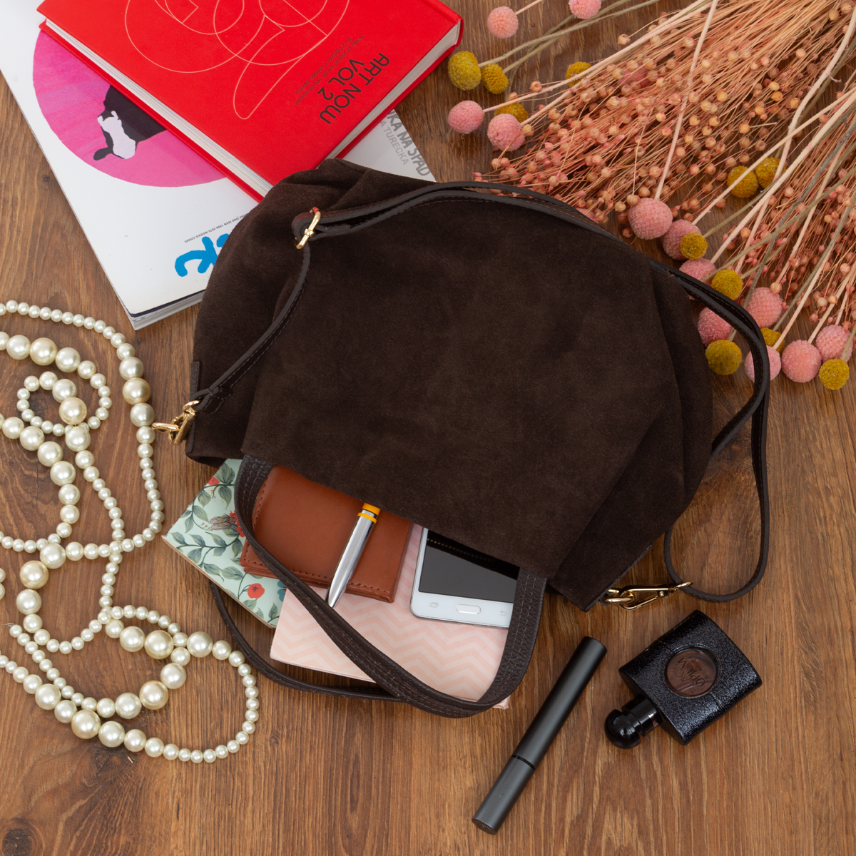 Torebka Damska Na Ramię Zamszowa Vera Pelle Bolsa Choco