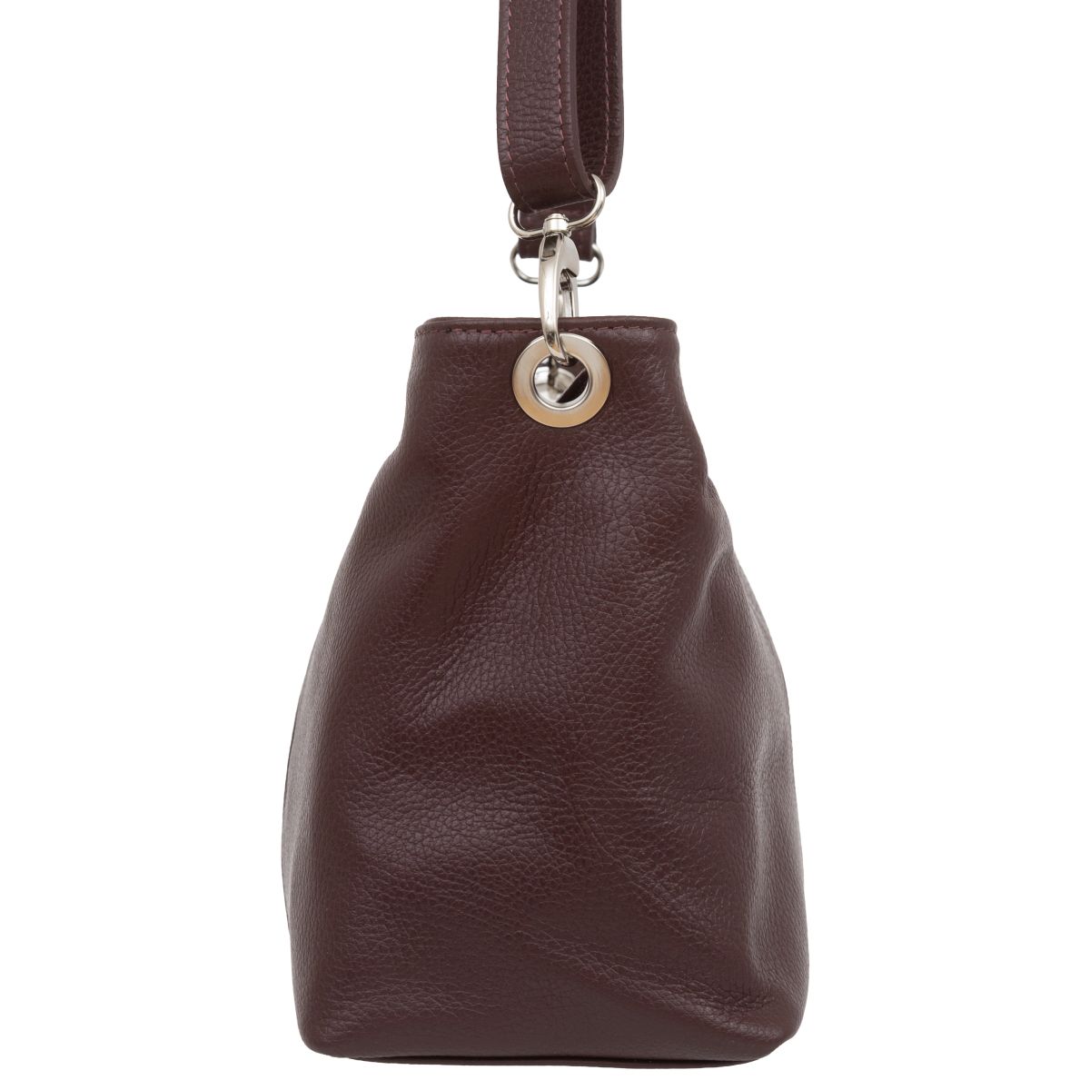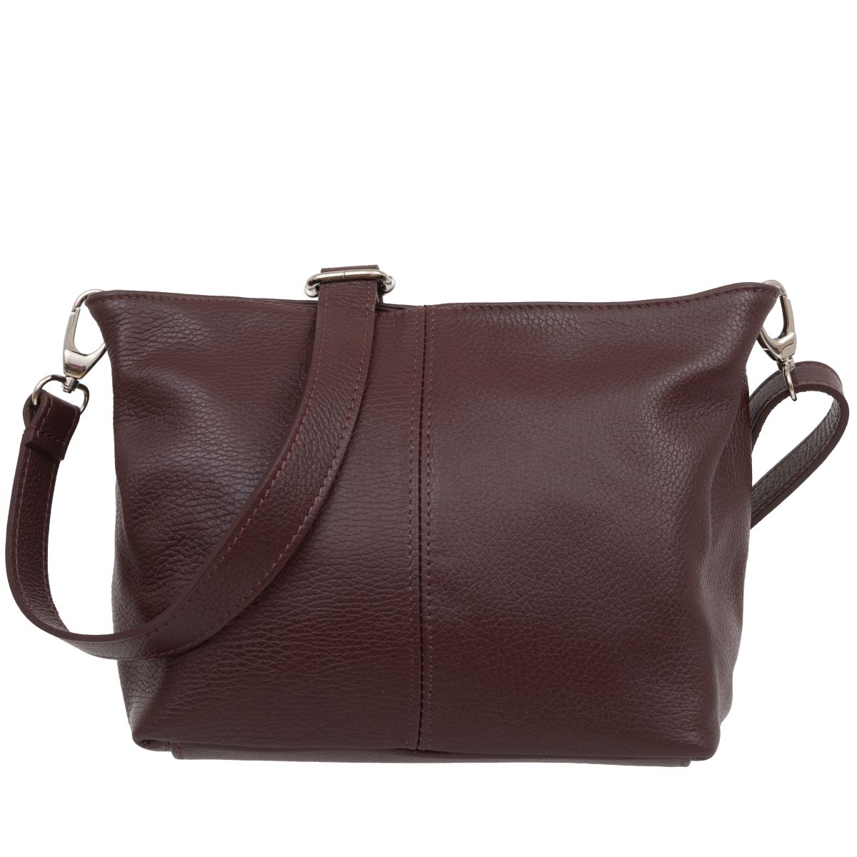 Torba damska wykonana z wysokogatunkowej skóry naturalnej. Poza ozdobnymi przeszyciami po obu bokach, torebka jest gładka i nie posiada zewnętrznych kieszeni. Przystosowana do noszenia na ramieniu.