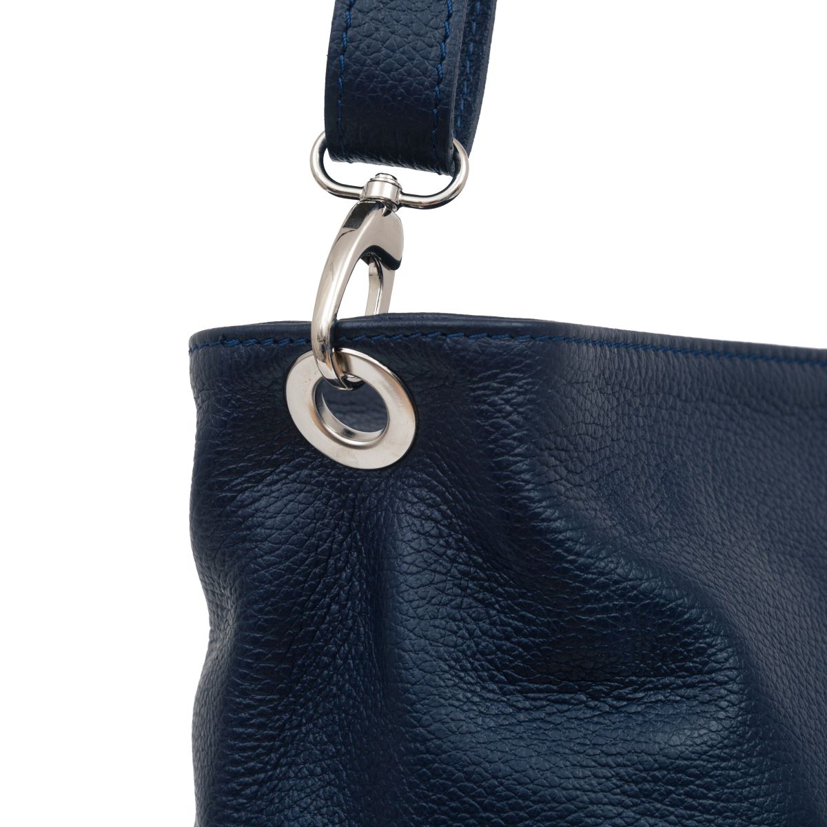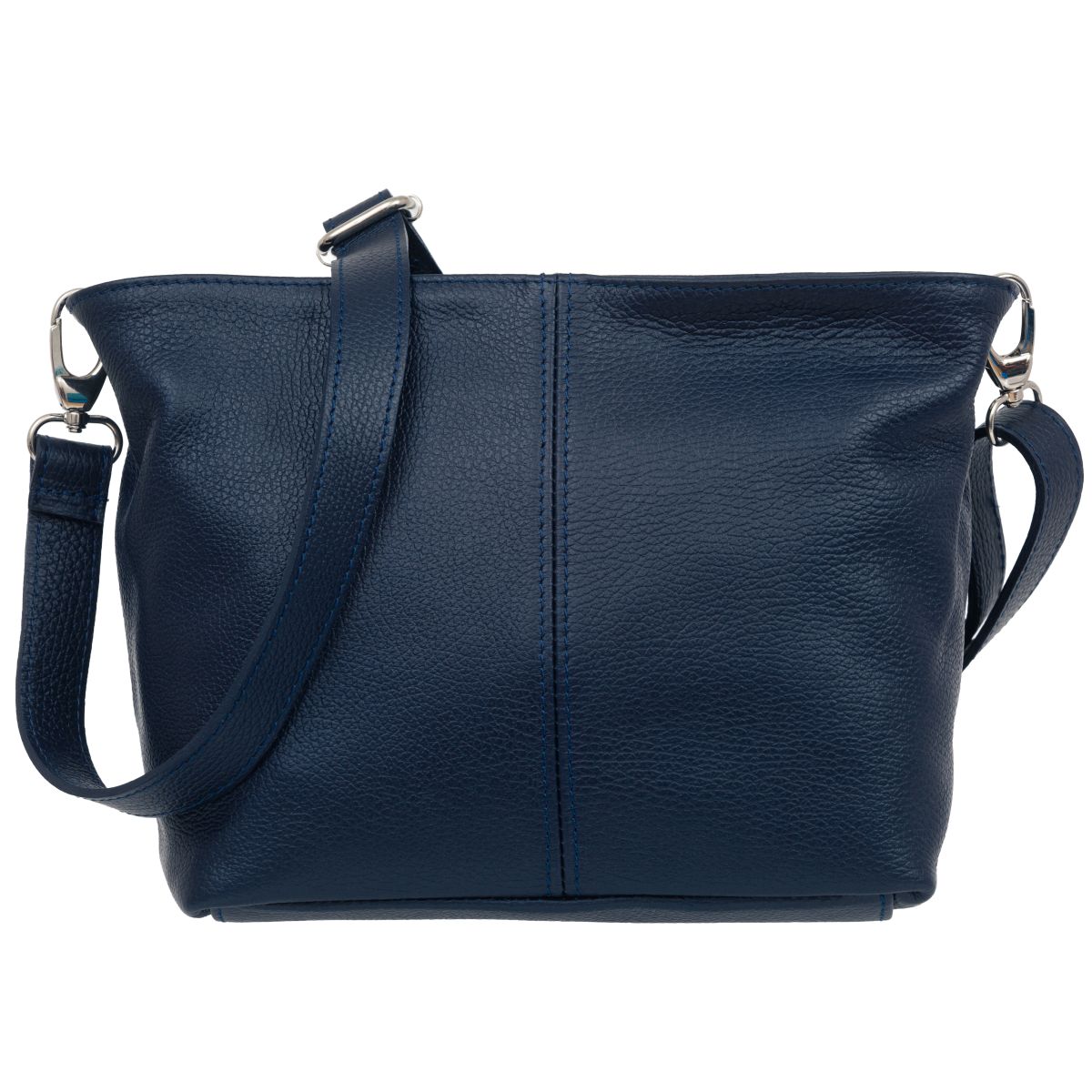 Torba damska wykonana z wysokogatunkowej skóry naturalnej. Poza ozdobnymi przeszyciami po obu bokach, torebka jest gładka i nie posiada zewnętrznych kieszeni. Przystosowana do noszenia na ramieniu.