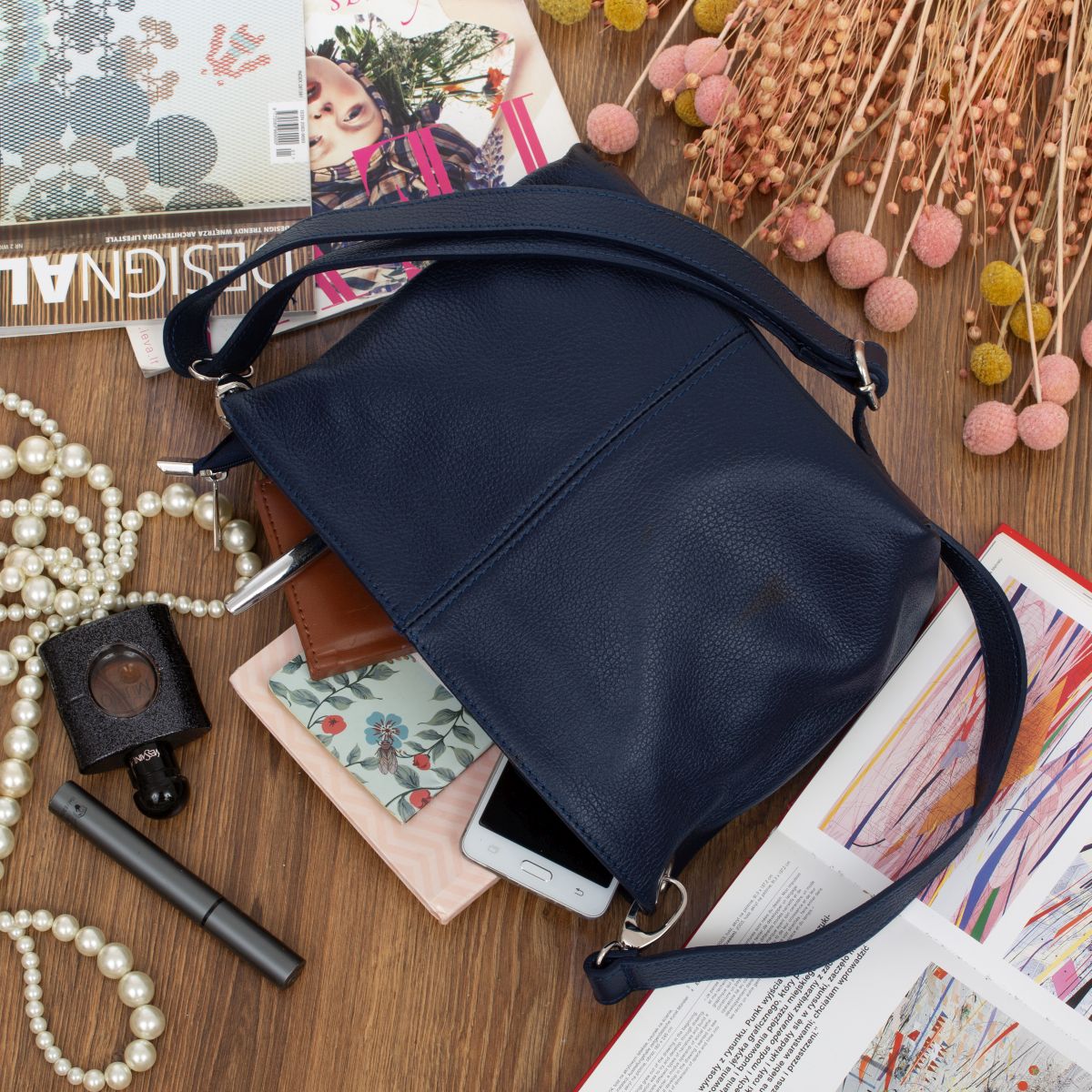 Torebka Damska Skórzana Kaletnik Sosia Granatowa