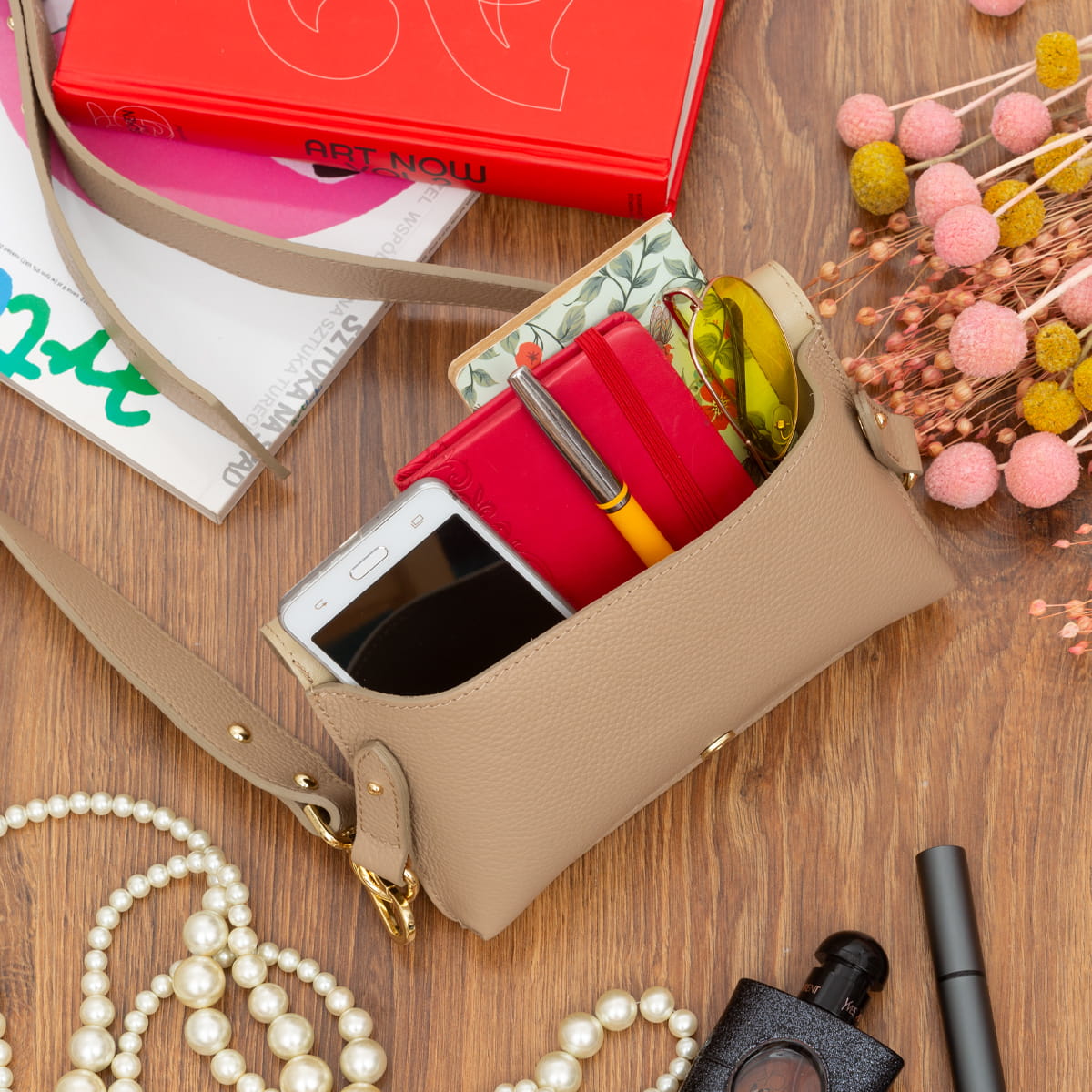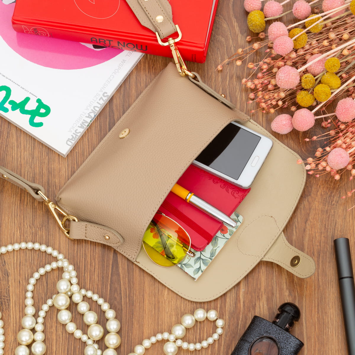 Torebka Damska Skórzana Vera Pelle Imba Beżowa