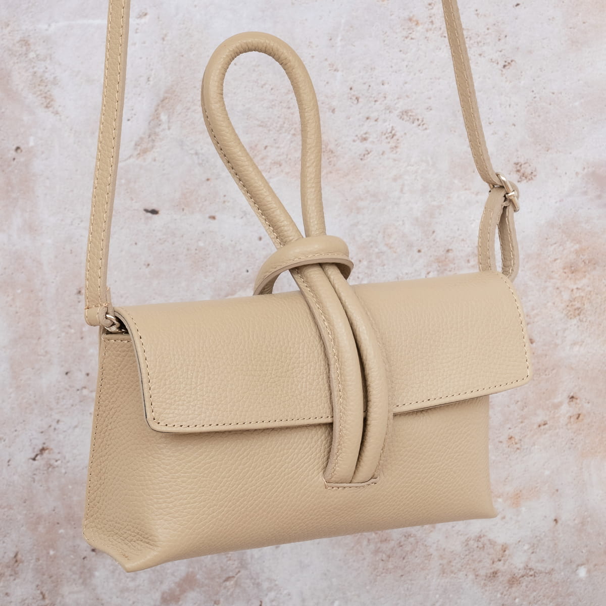 Torebka Damska Skórzana Vera Pelle Nodo Beżowa