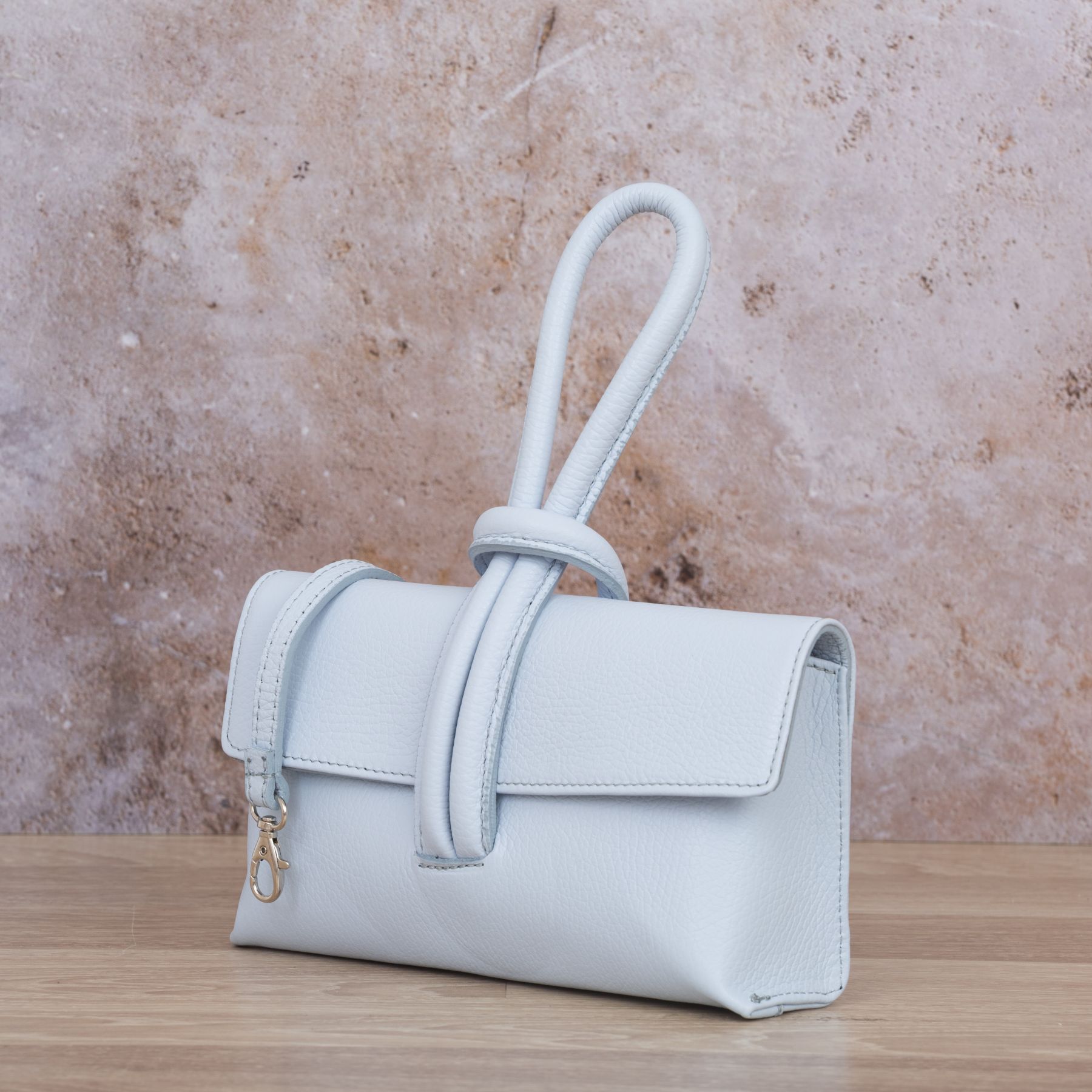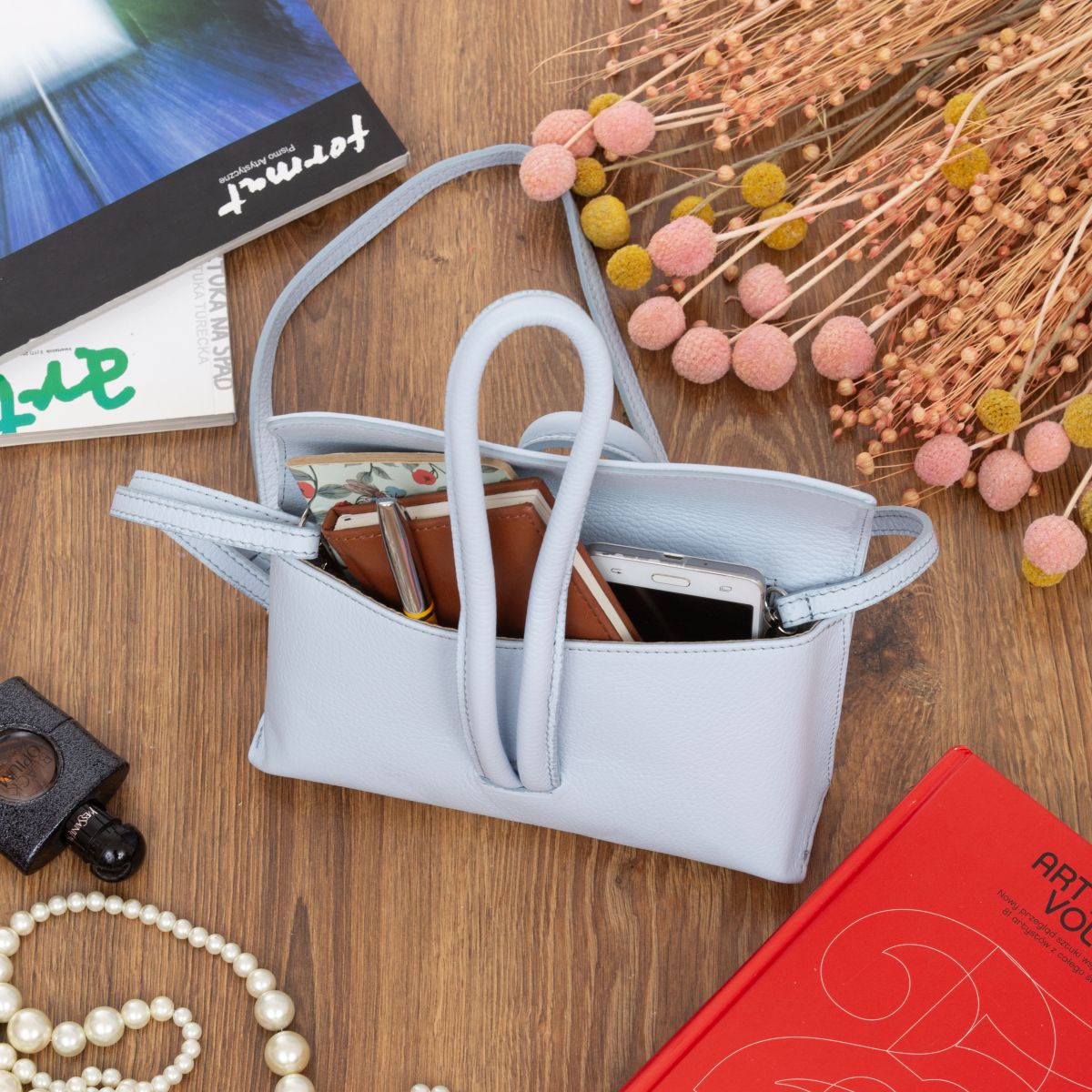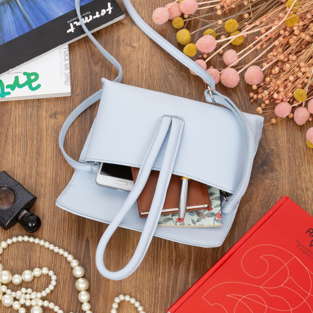 Torebka Damska Skórzana Vera Pelle Nodo Błękitna