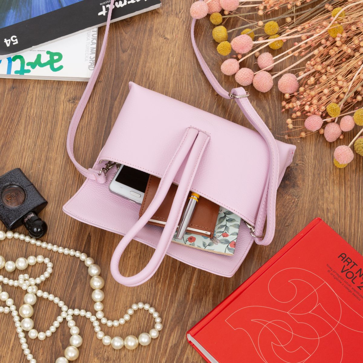 Torebka Damska Skórzana Vera Pelle Nodo Różowa