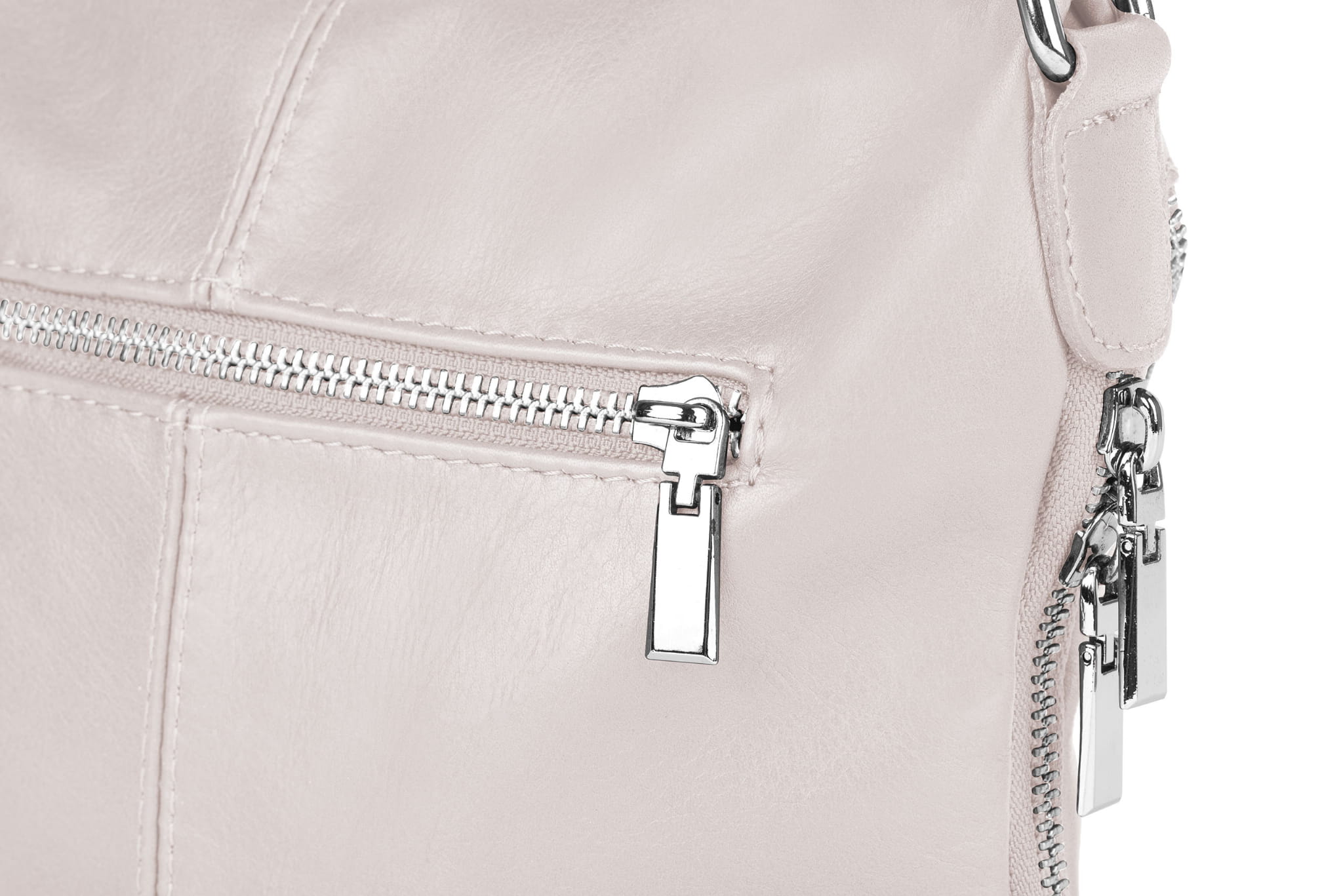 - ozdobny suwak przechodzący przez trzy boki torebki