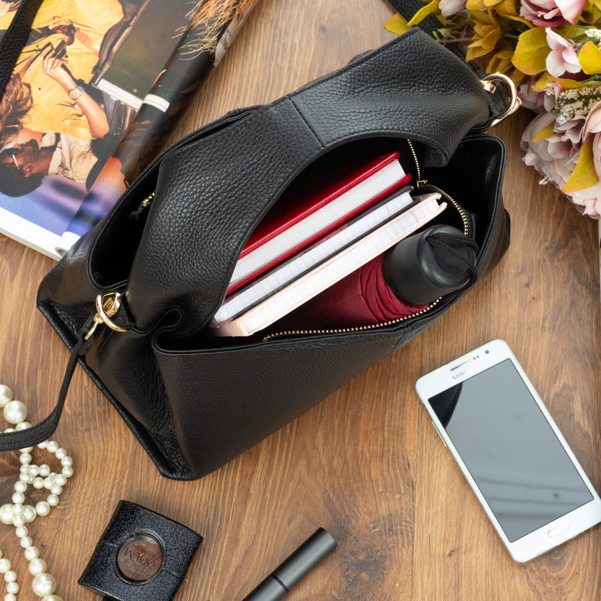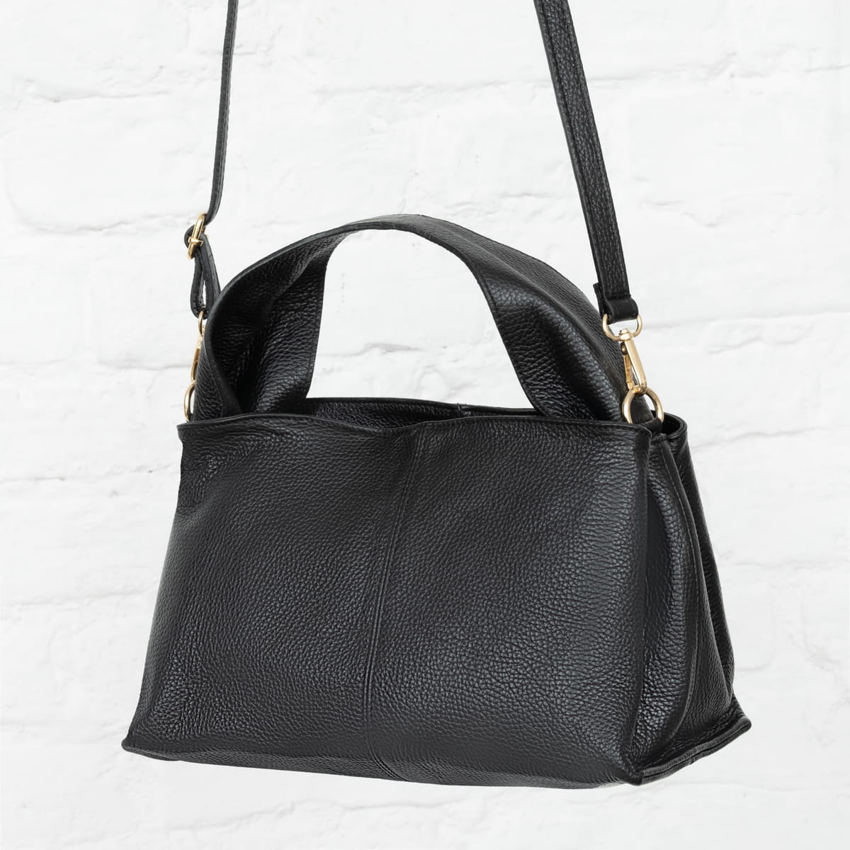 Torba damska wykonana z wysokogatunkowej naturalnej włoskiej skóry licowej. Z wygodnym skórzanym uchwytem. Przystosowana do noszenia w ręku i na ramieniu.