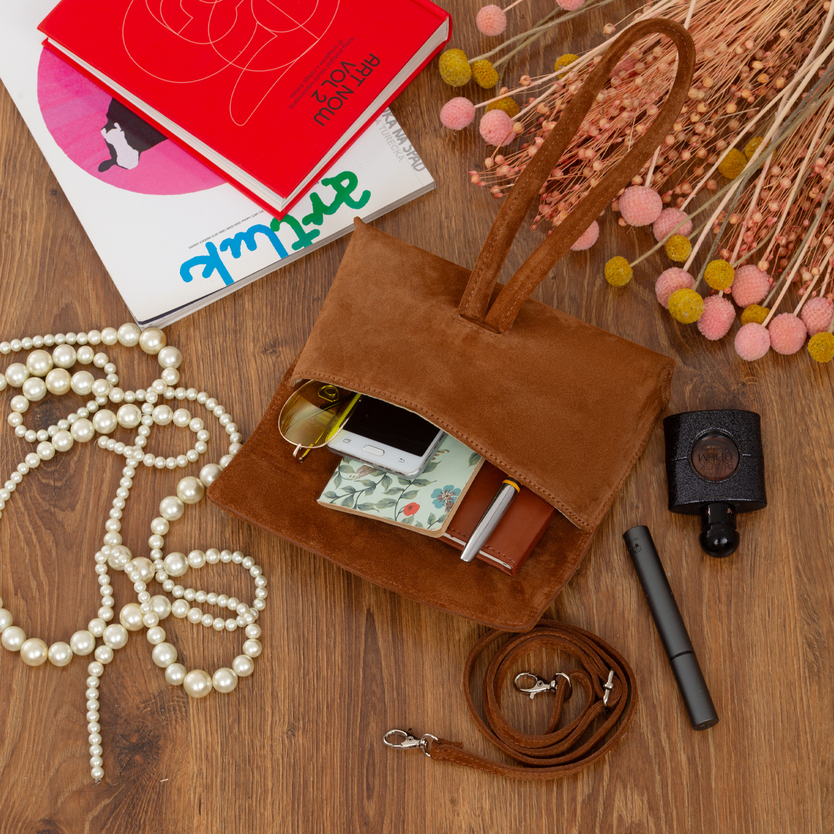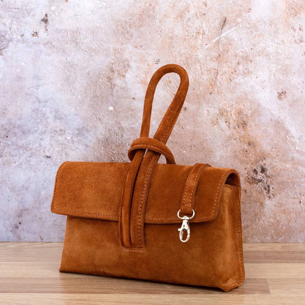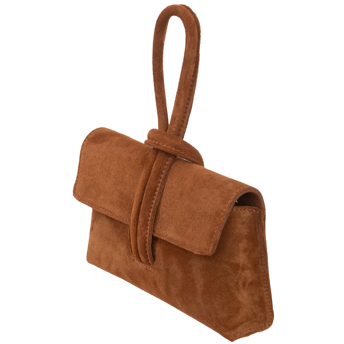 Torebka Damska Zamszowa Vera Pelle Nodo Brązowa