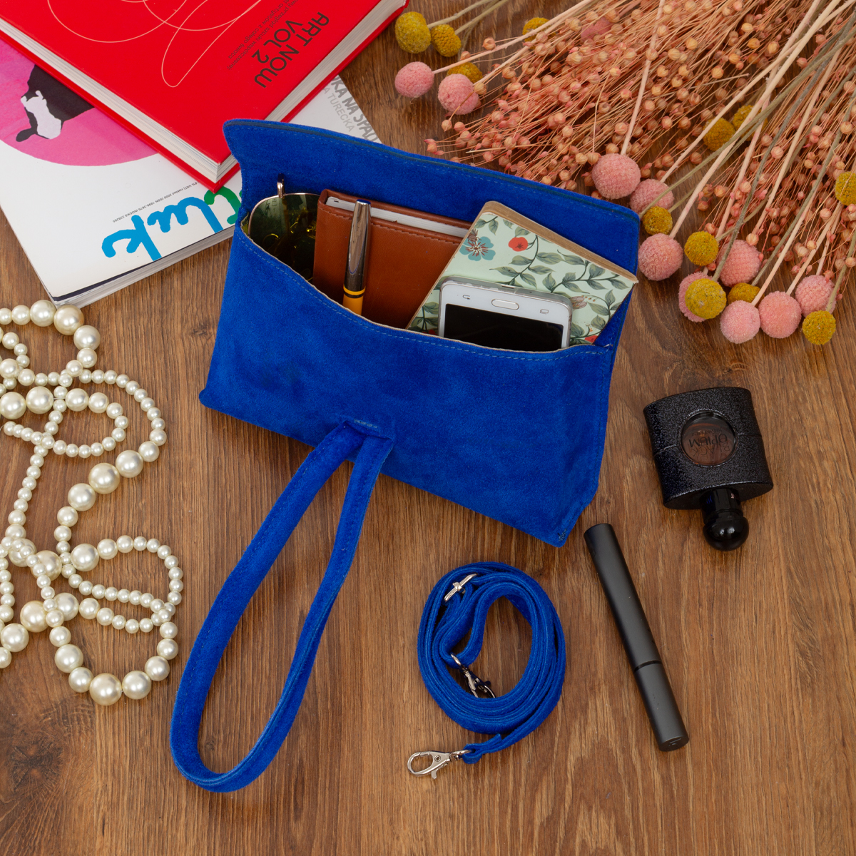 Torebka wykonana z wysokogatunkowej, włoskiej skóry zamszowej. Drobna i lekka torebka wieczorowa jest atrakcyjnym dodatkiem do każdej eleganckiej bądź zwykłej kreacji.