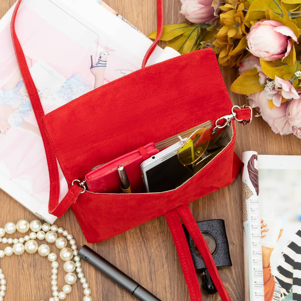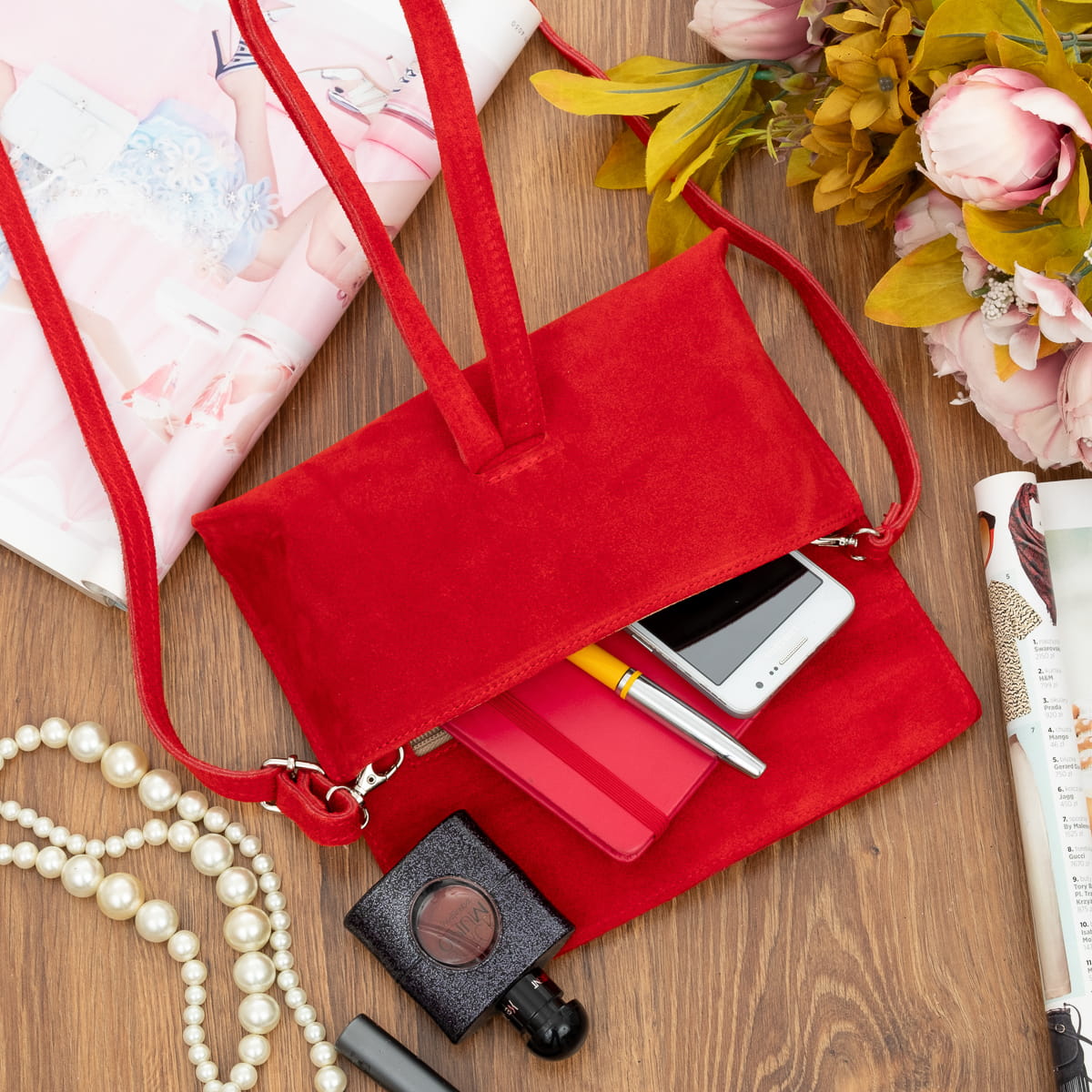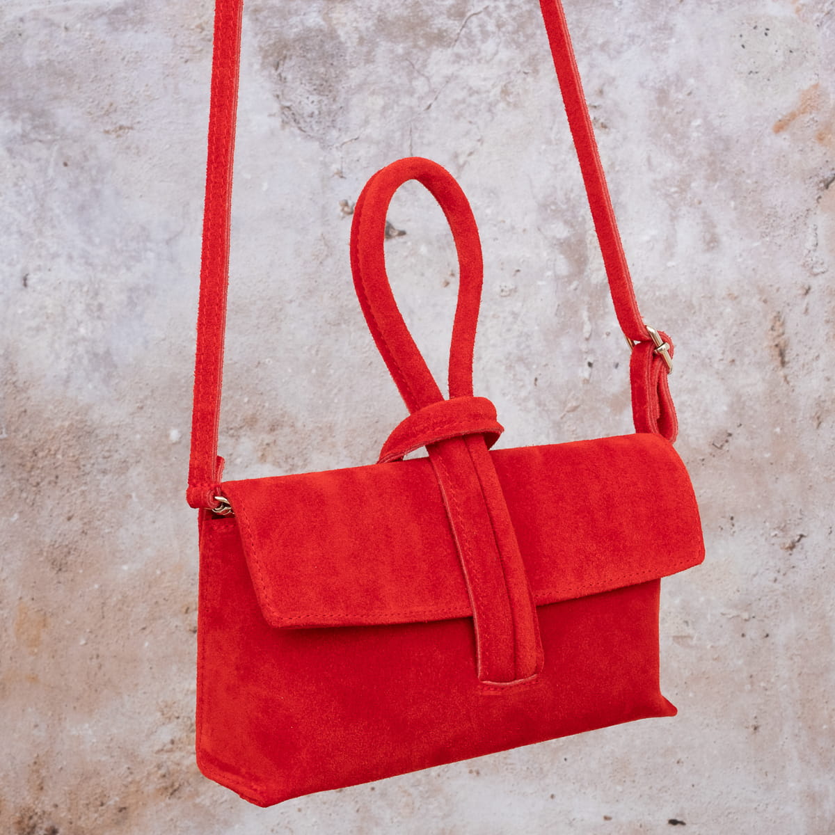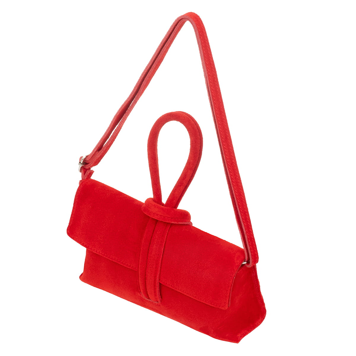 Torebka Damska Zamszowa Vera Pelle Nodo Czerwona
