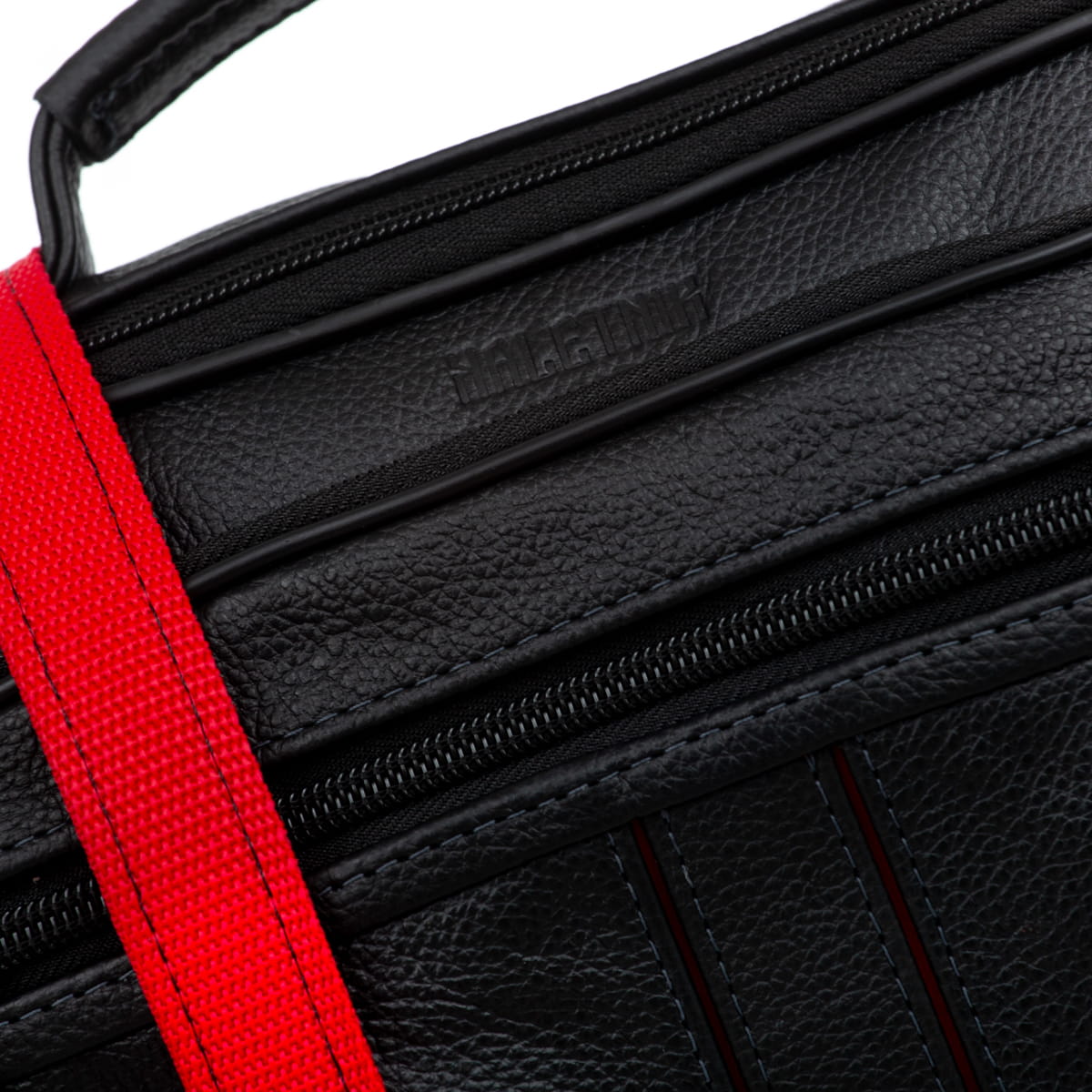 - odpinany, regulowany pasek na ramię z czerwoną taśmą