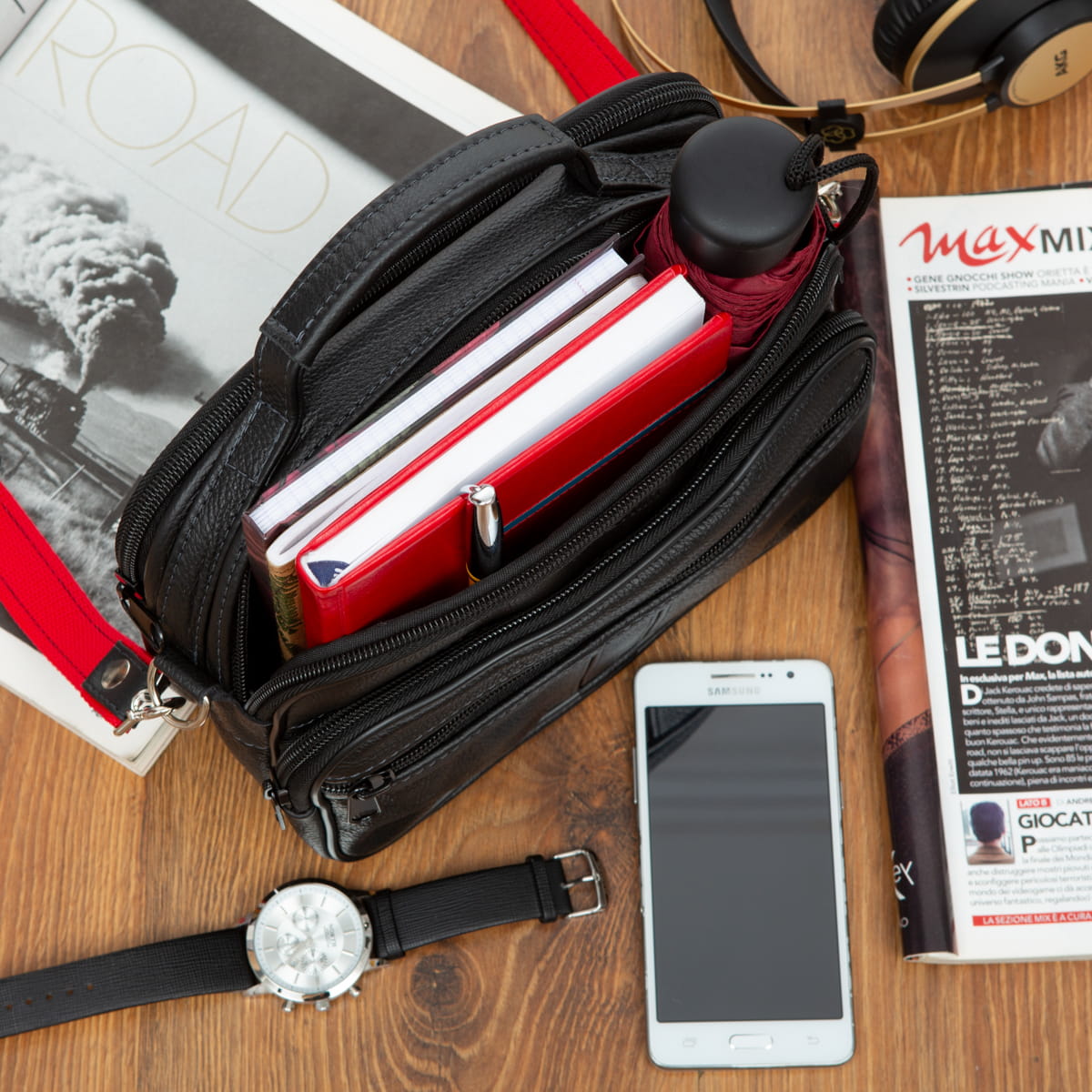 Męska torebka Kaletnik Obrok wykonana z naturalnej skóry licowej. Trzy komory i dwie kieszenie w różnych rozmiarach pozwalają wygodnie posegregować rzeczy w torebce. Przystosowana do noszenia na ramieniu lub w ręku.