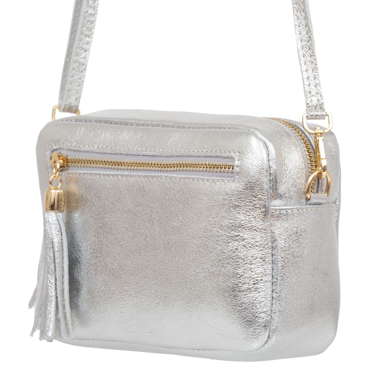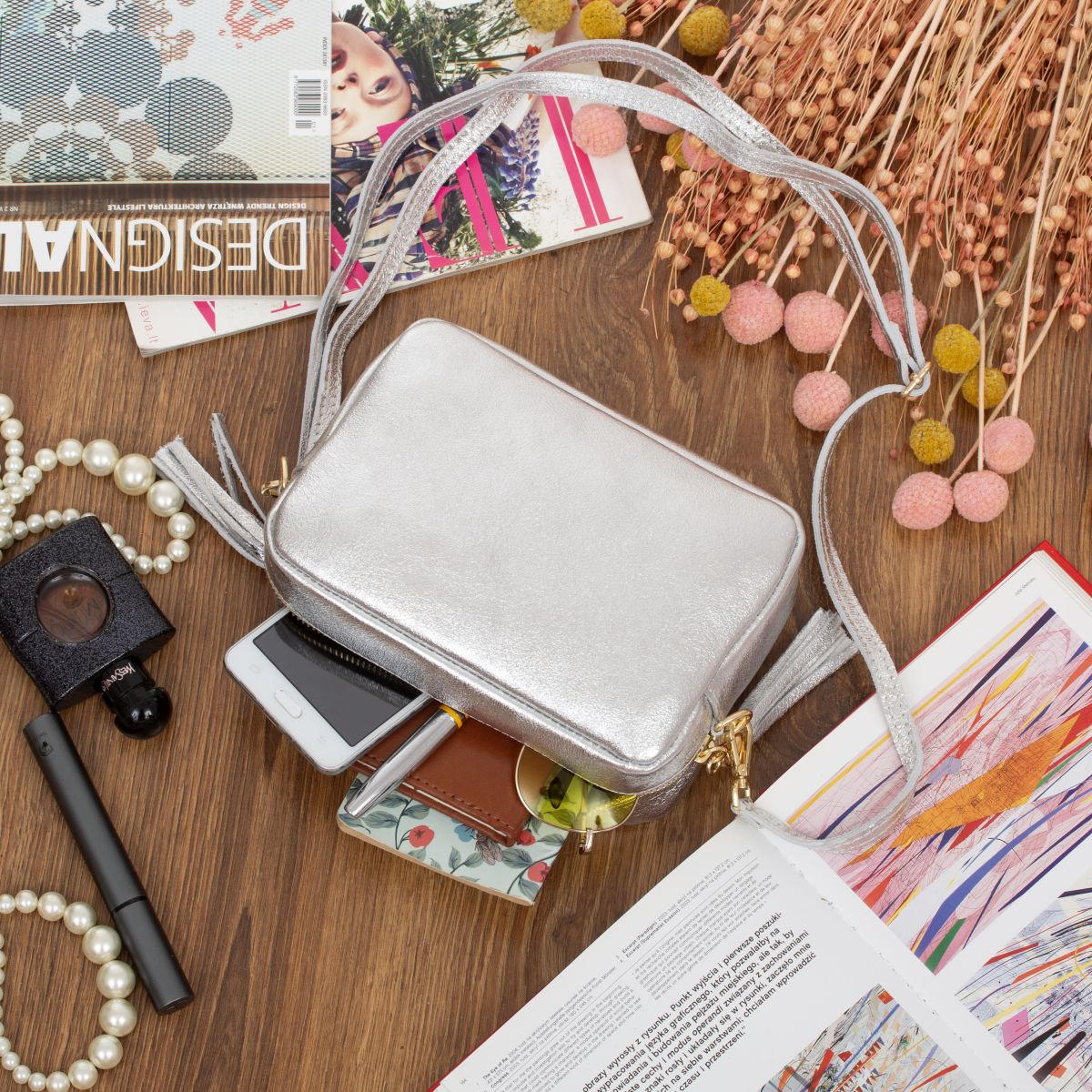 Torebka Skórzana Kuferek Kaletnik Balena Srebrny