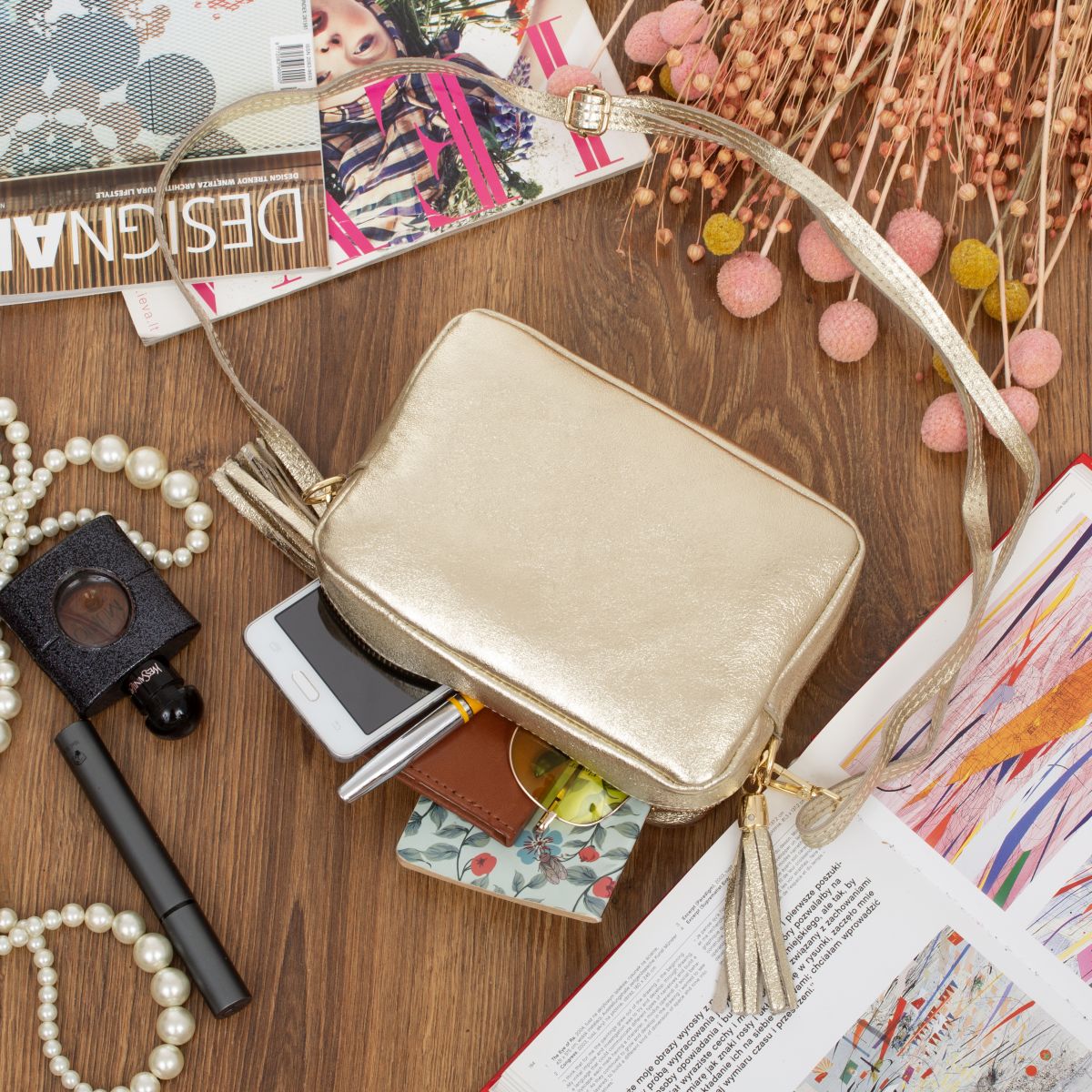 - okucia w złotym kolorze