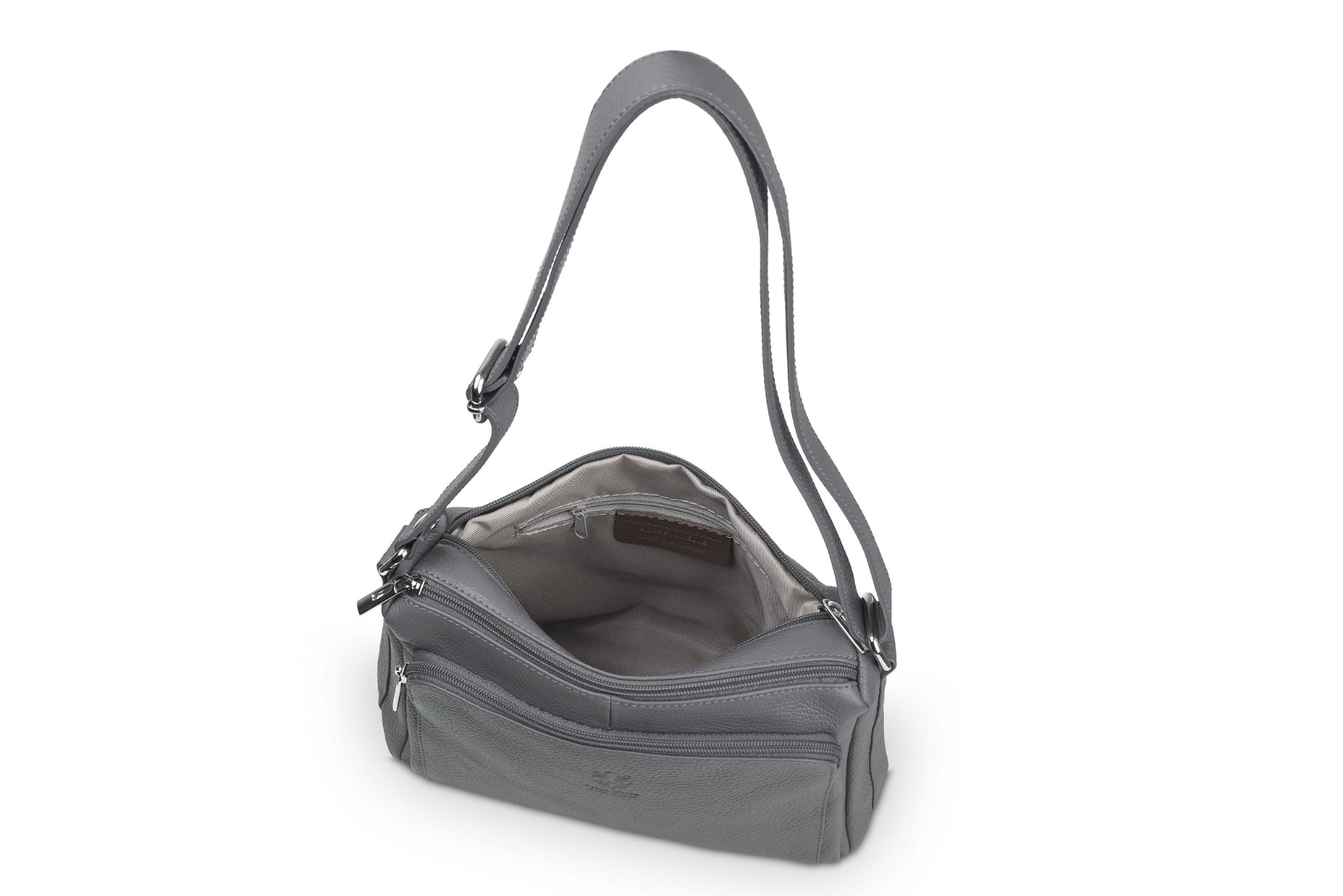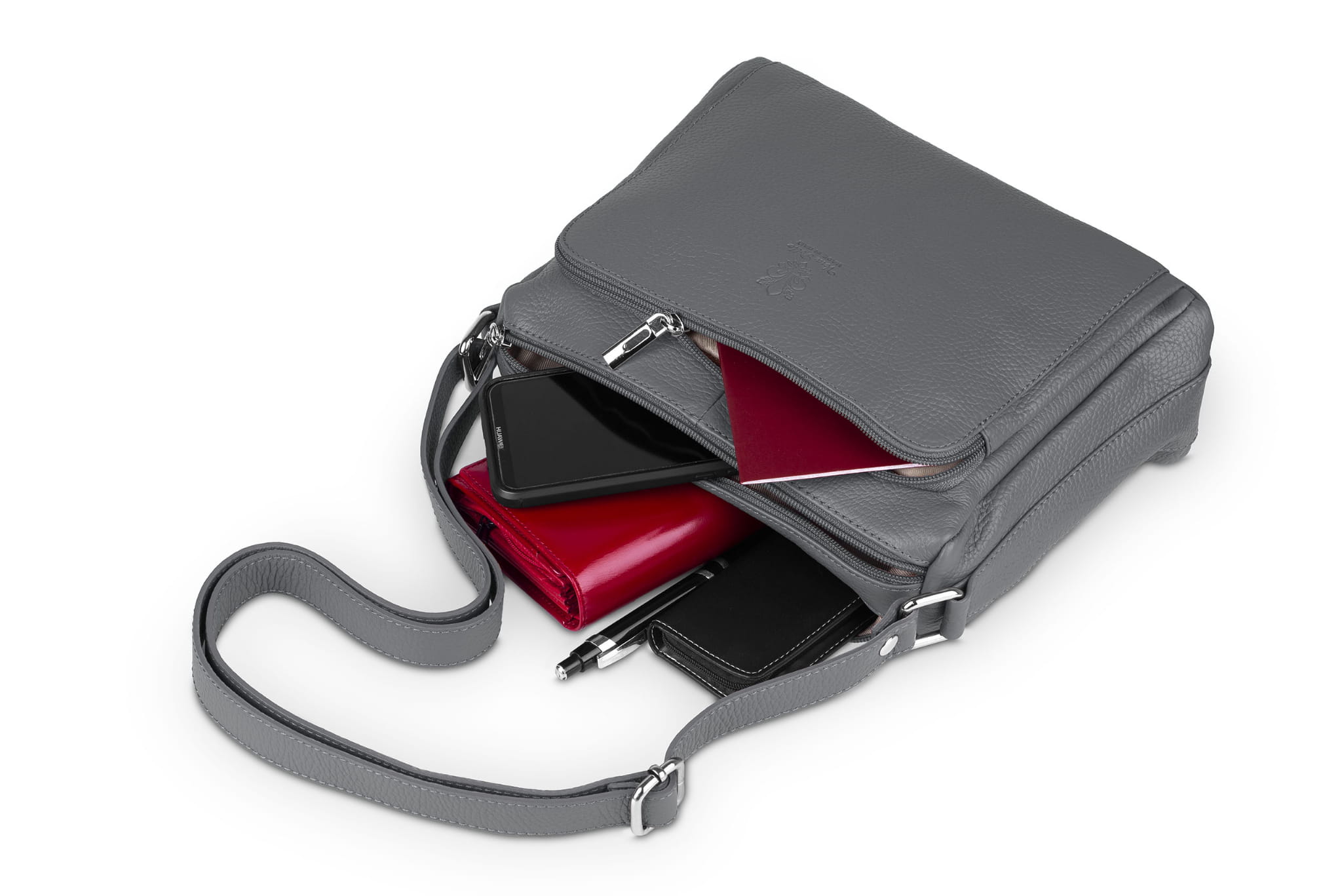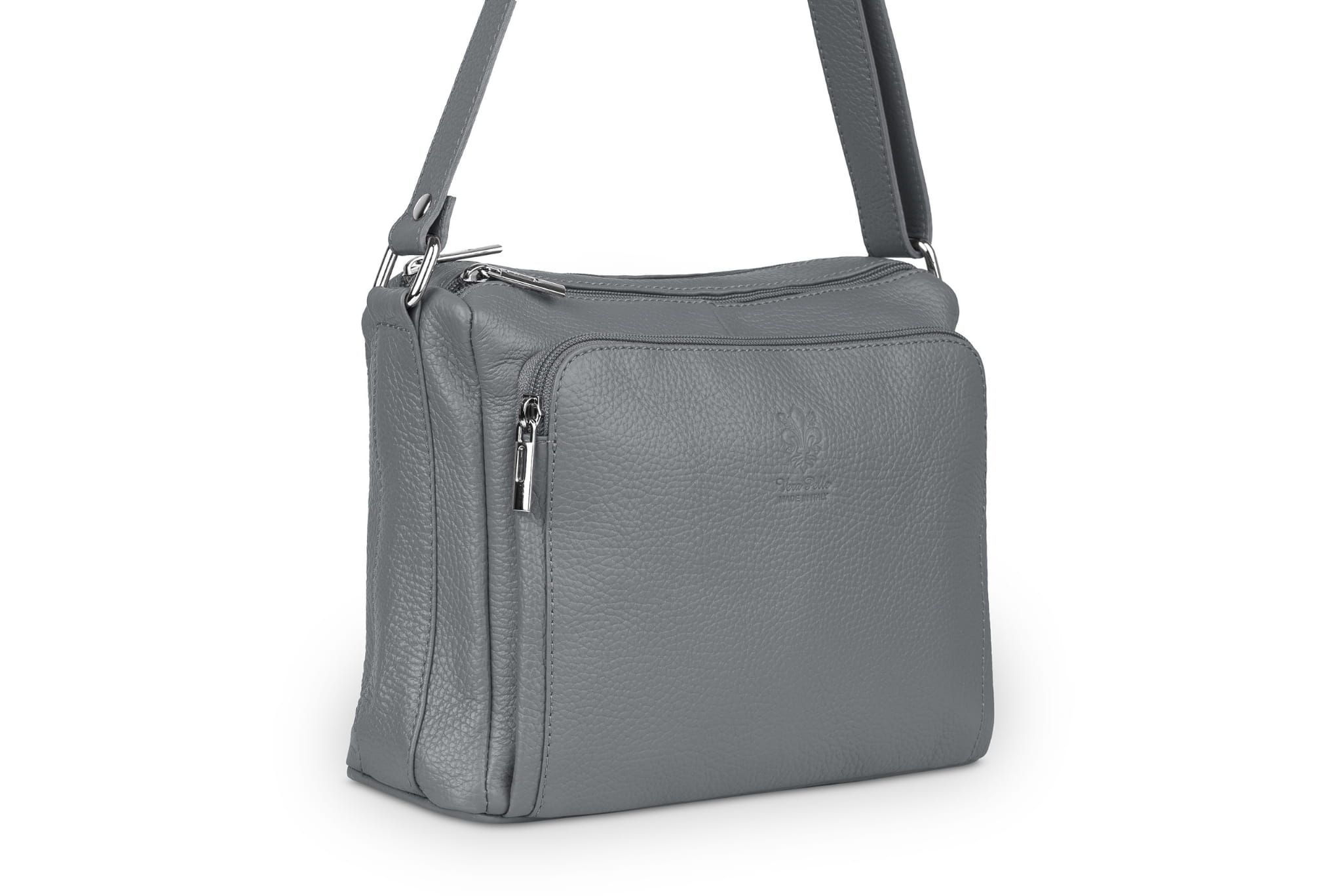 Torebka wykonana z wysokogatunkowej, włoskiej skóry licowej. Skóra została wykończona w taki sposób aby zachować jej naturalną fakturę. Dzięki dwóm komorom i trzem kieszeniom, rzeczy w torebce można łatwo posegregować.