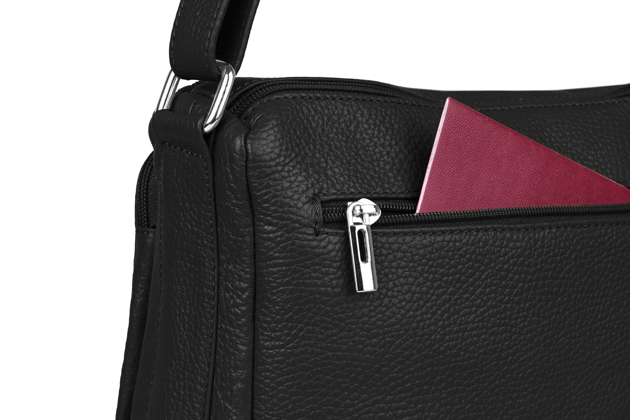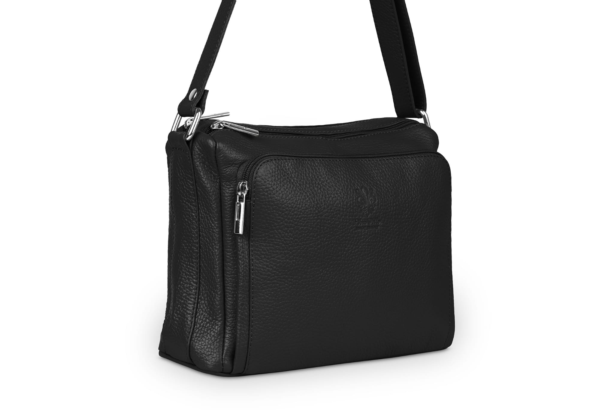 Torebka wykonana z wysokogatunkowej, włoskiej skóry licowej. Skóra została wykończona w taki sposób aby zachować jej naturalną fakturę. Dzięki dwóm komorom i trzem kieszeniom, rzeczy w torebce można łatwo posegregować.
