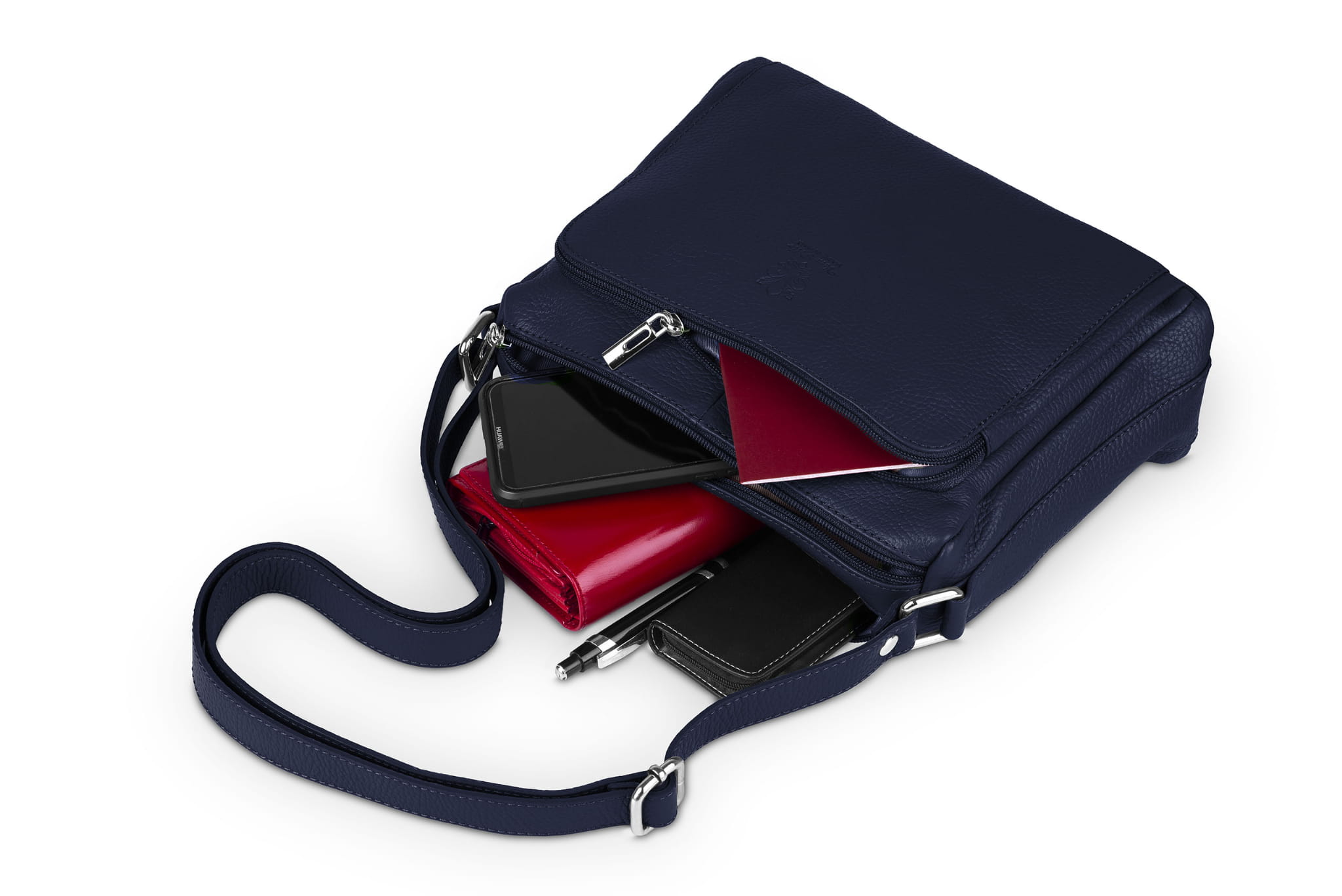 Torebka wykonana z wysokogatunkowej, włoskiej skóry licowej. Skóra została wykończona w taki sposób aby zachować jej naturalną fakturę. Dzięki dwóm komorom i trzem kieszeniom, rzeczy w torebce można łatwo posegregować.