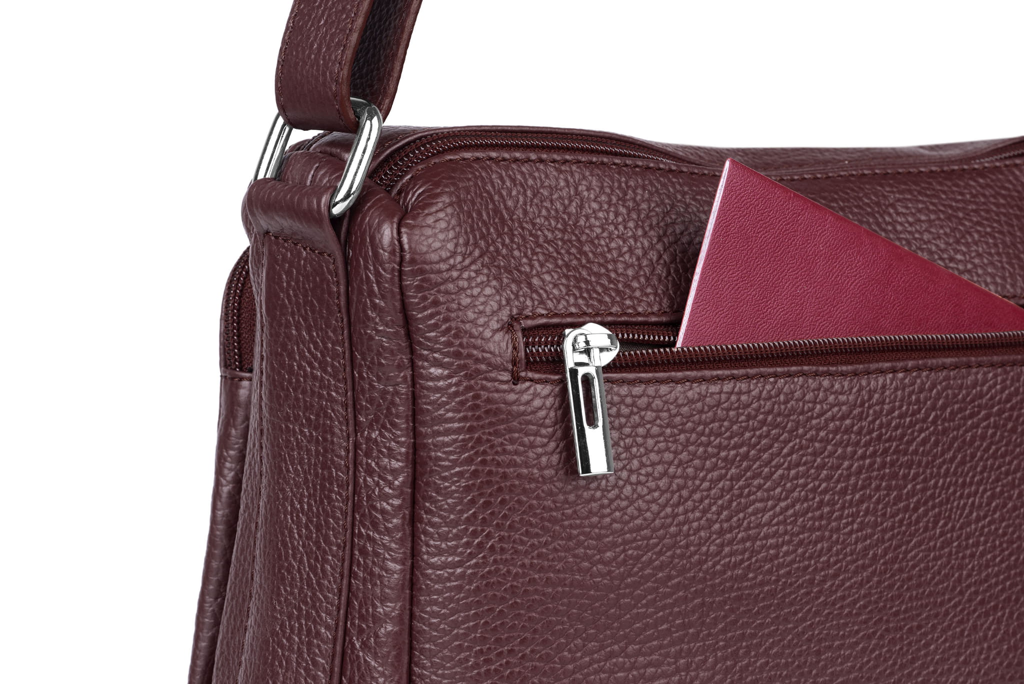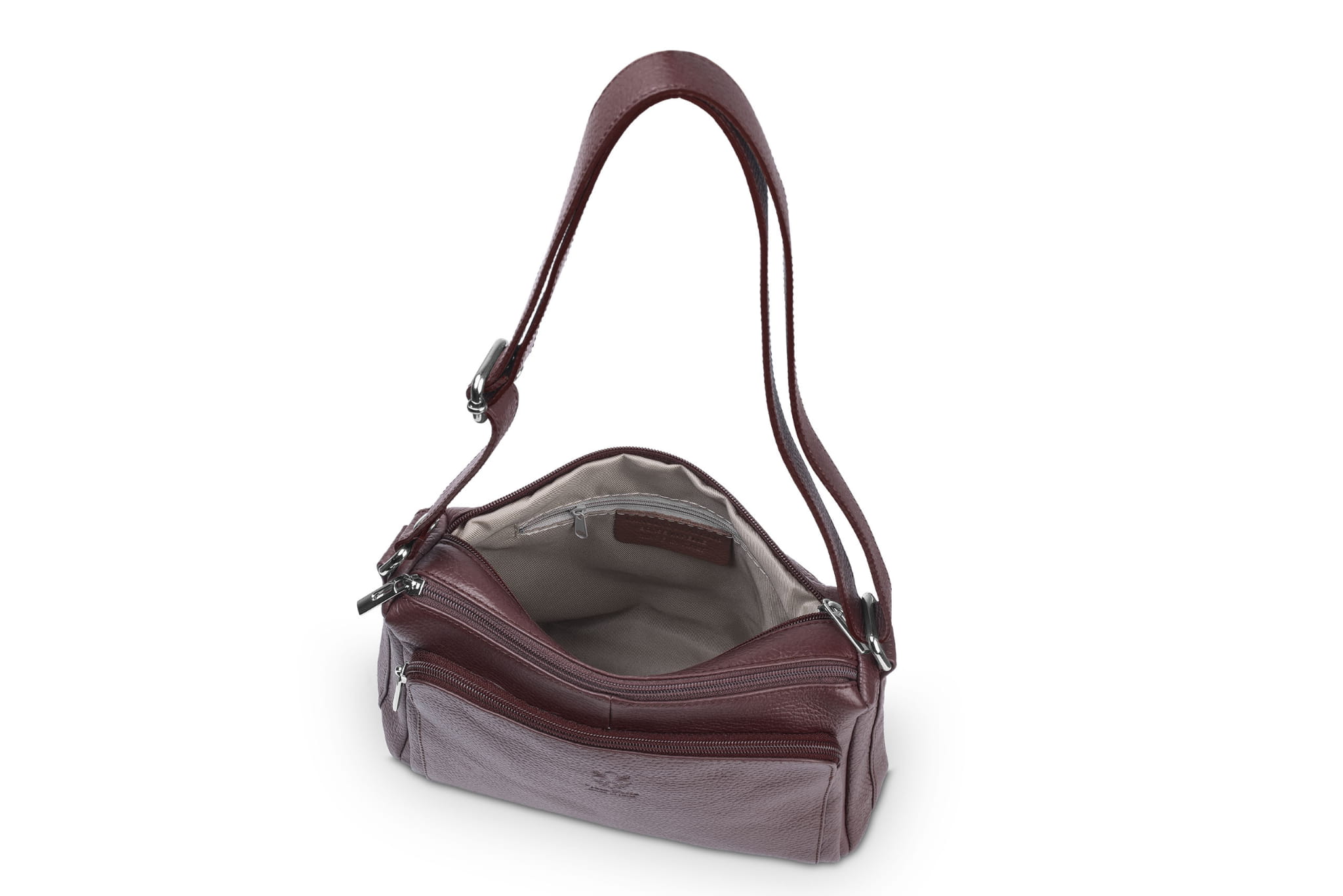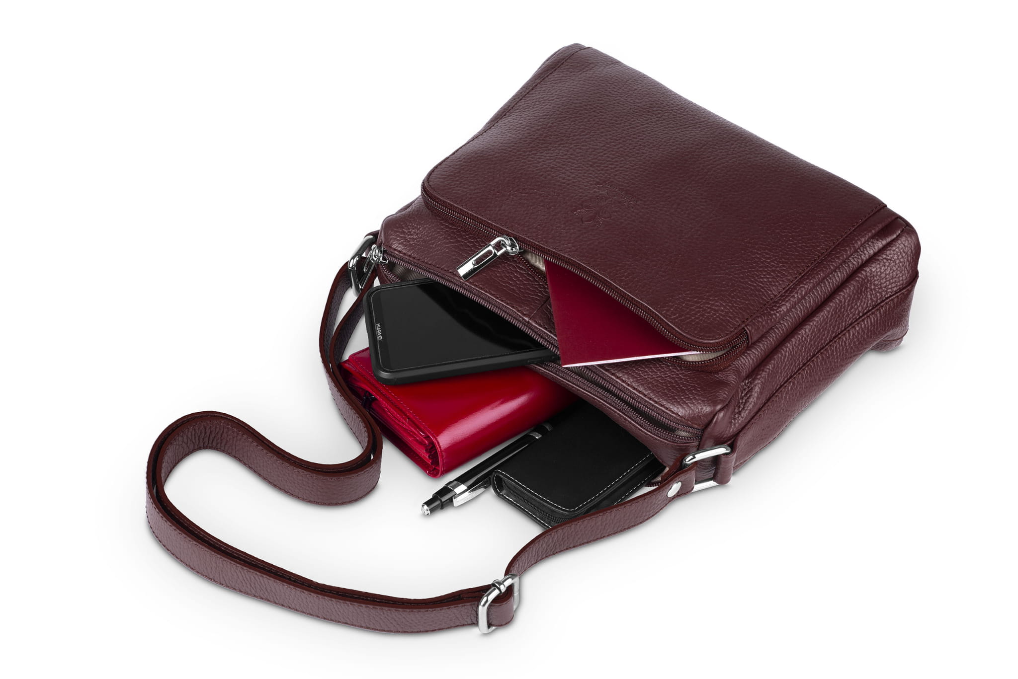Torebka wykonana z wysokogatunkowej, włoskiej skóry licowej. Skóra została wykończona w taki sposób aby zachować jej naturalną fakturę. Dzięki dwóm komorom i trzem kieszeniom, rzeczy w torebce można łatwo posegregować.
