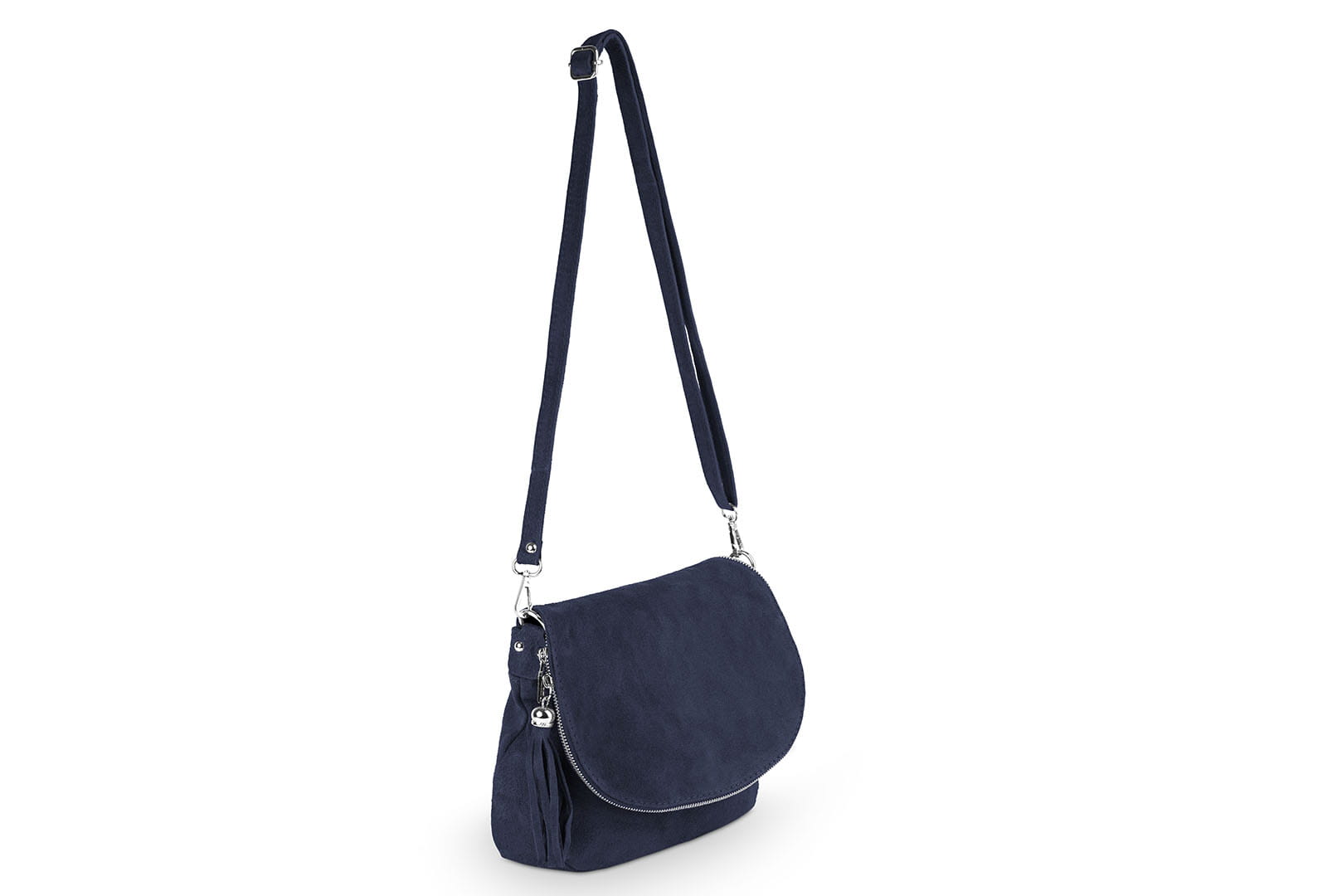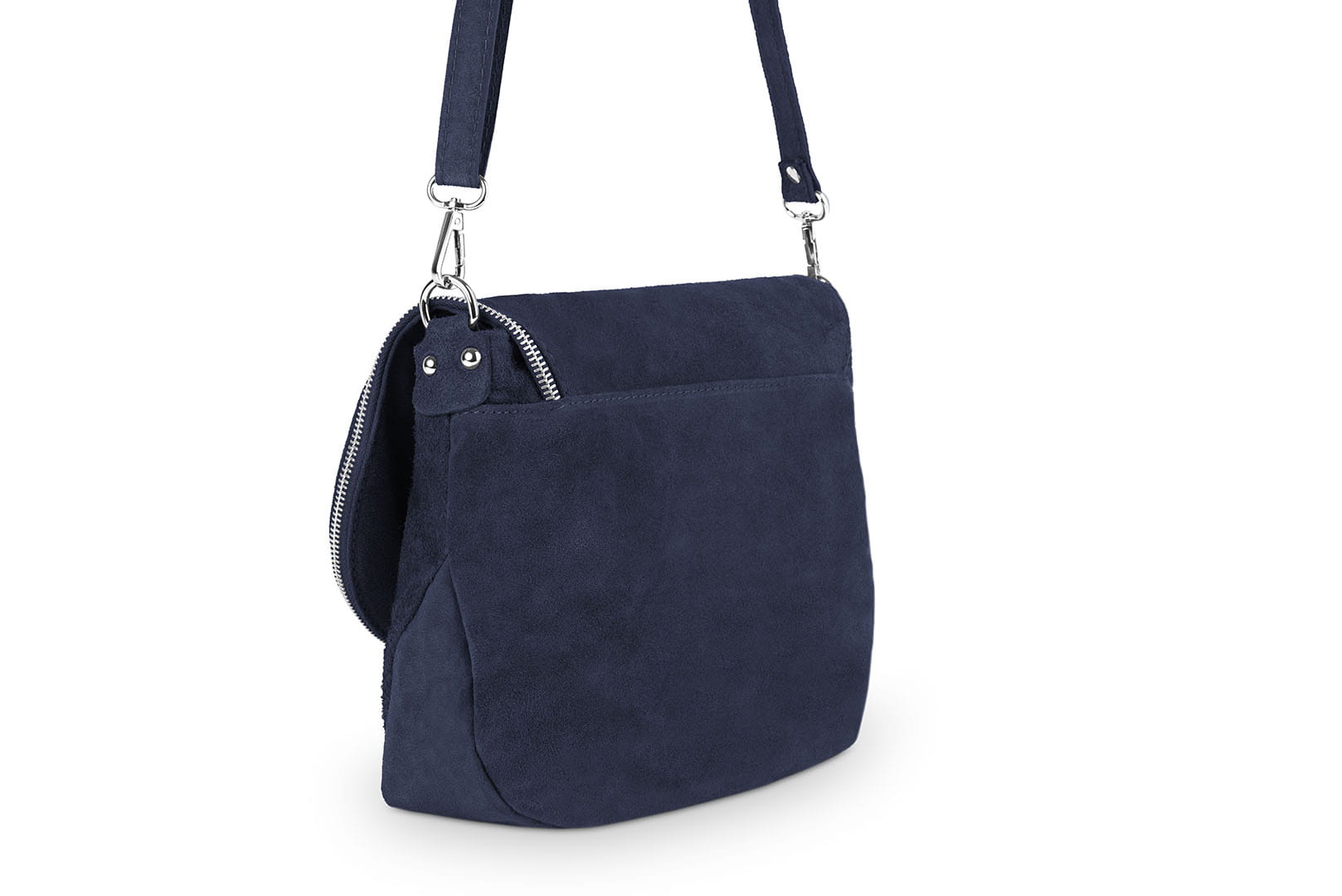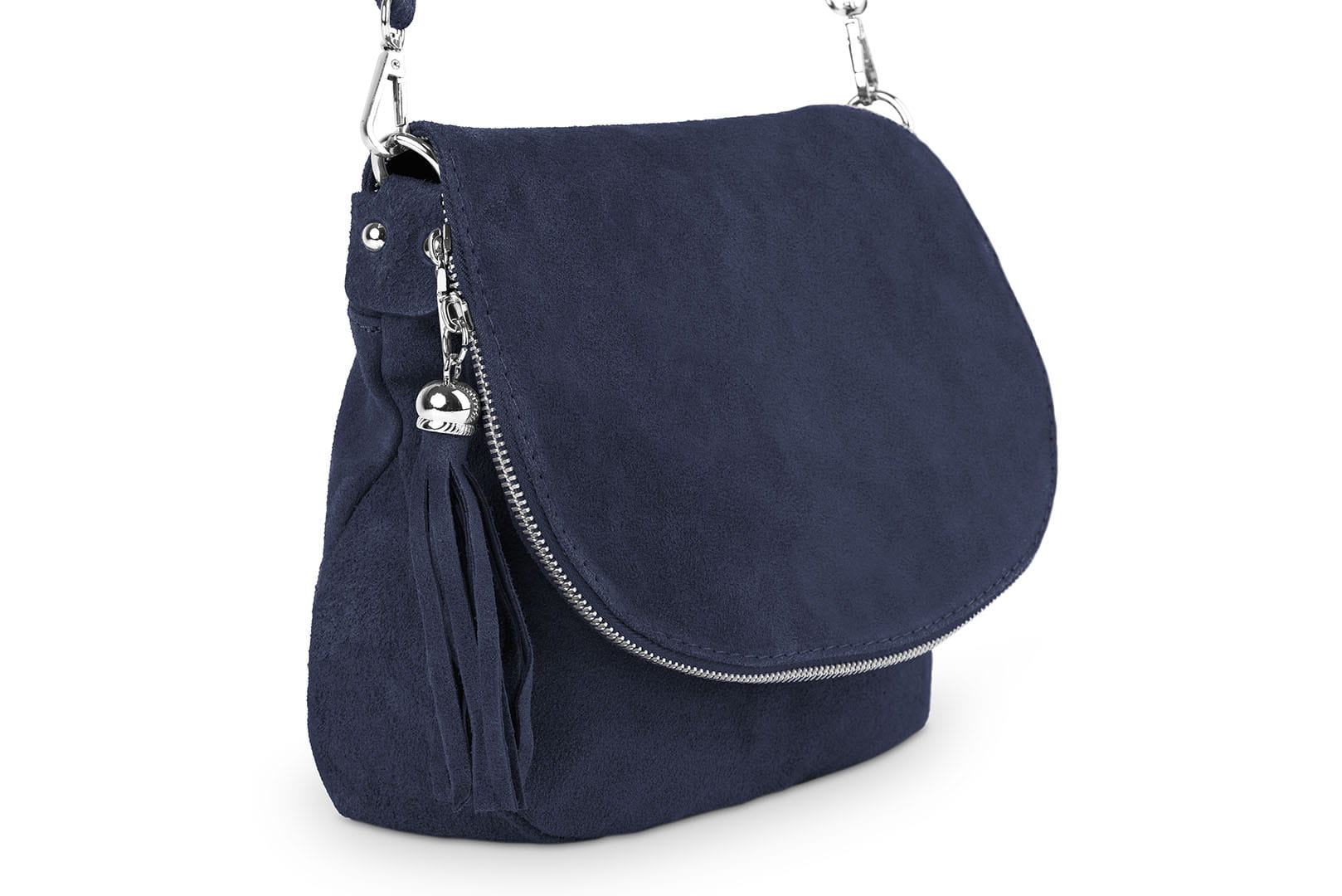 Torebka Skórzana Vera Pelle Bisaccia Zamsz Granatowa