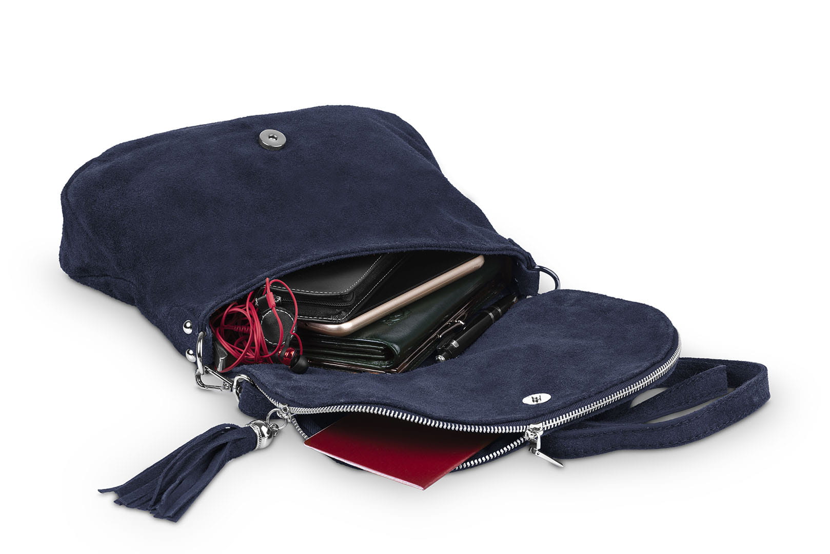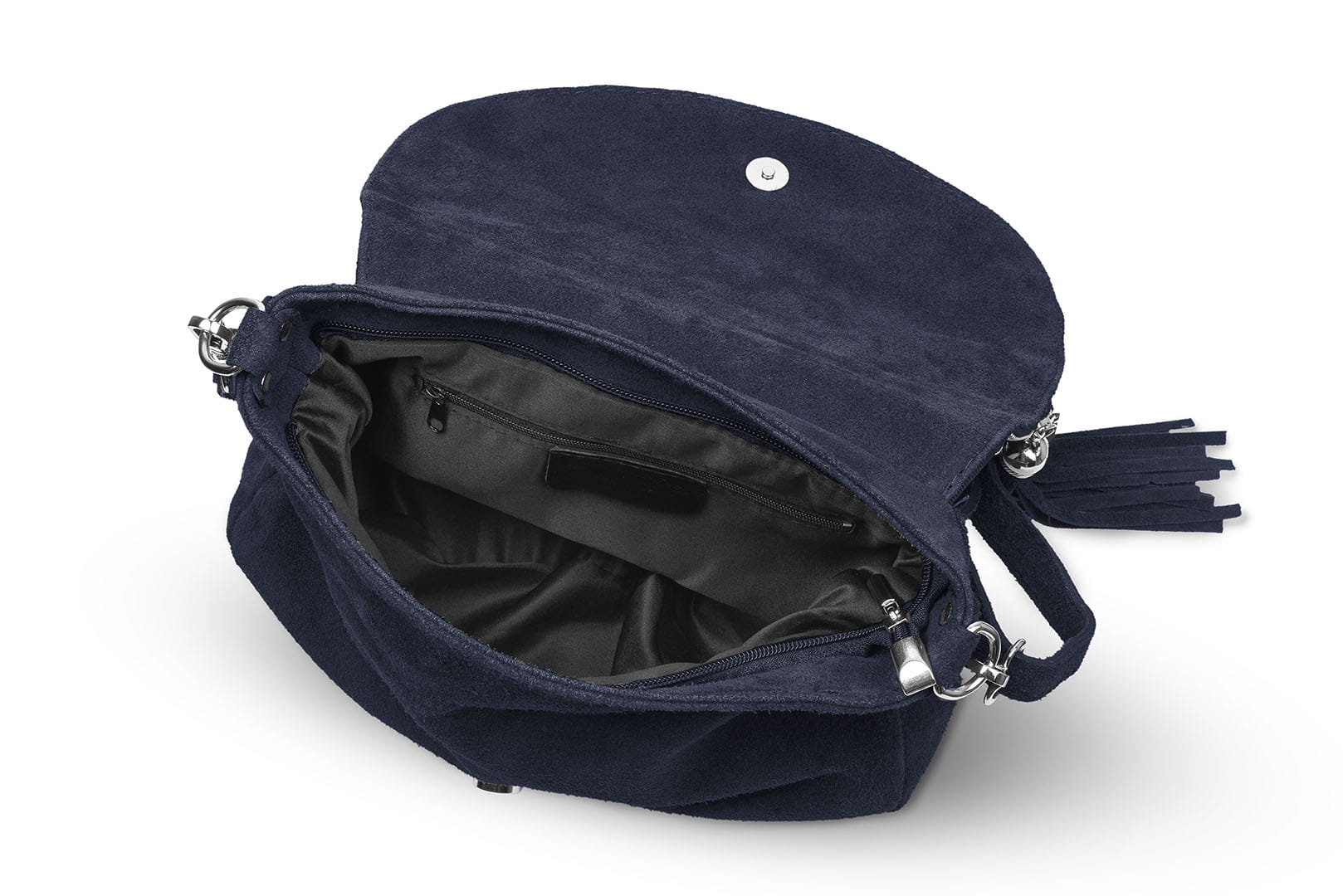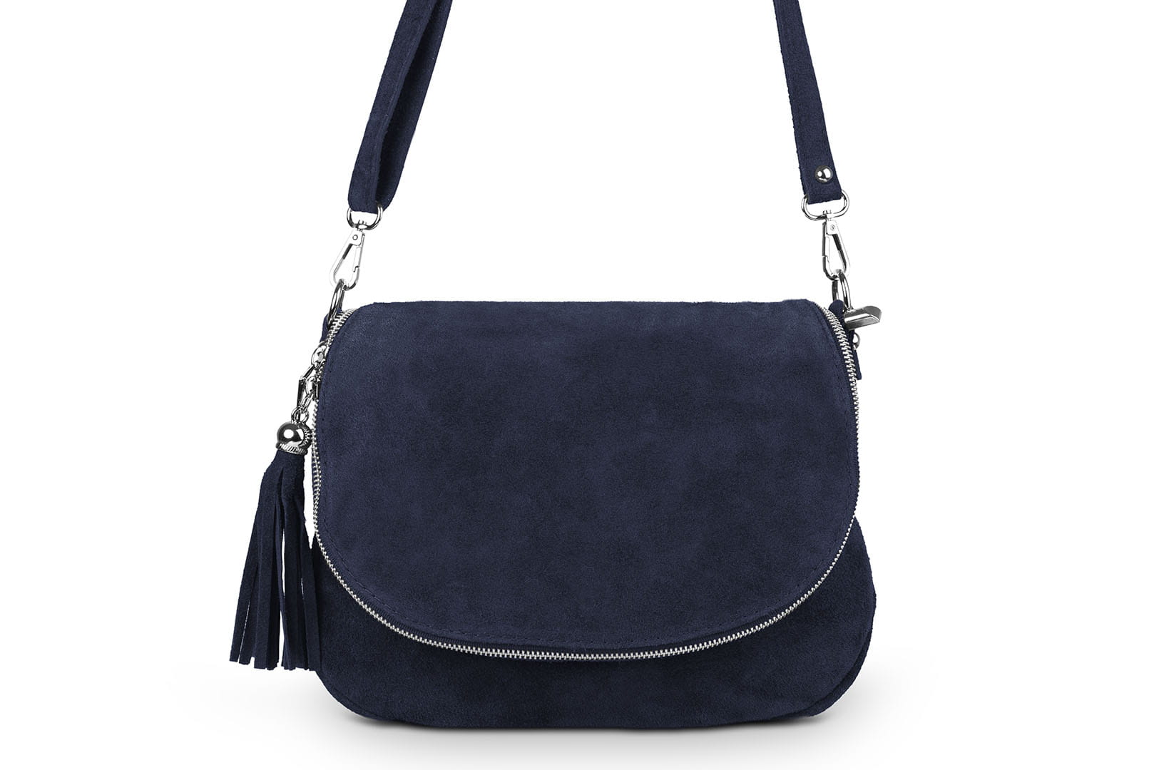 Torebka Skórzana Vera Pelle Bisaccia Zamsz Granatowa