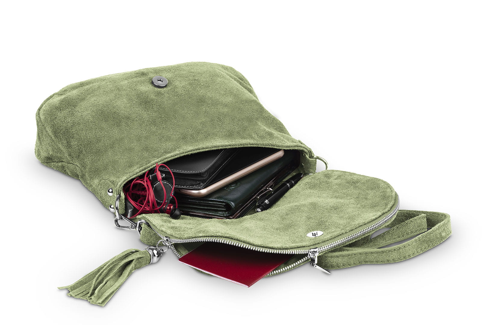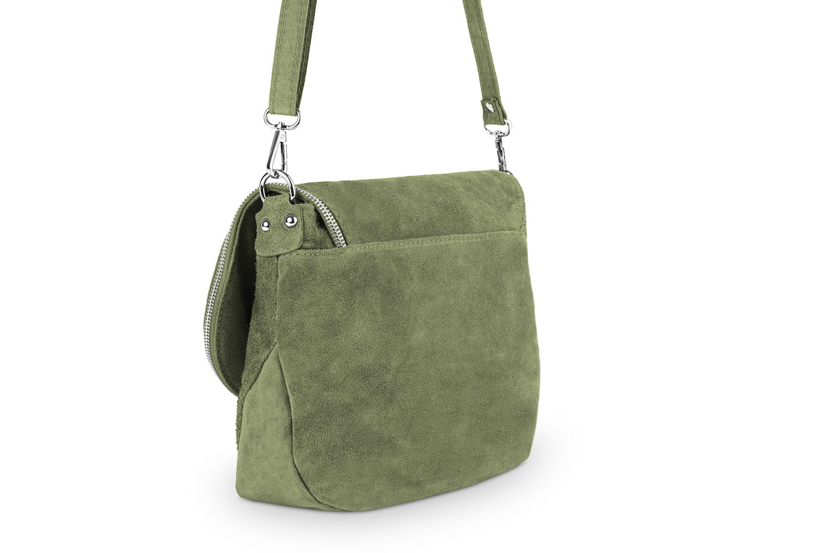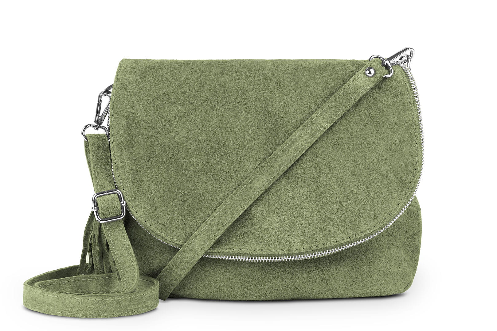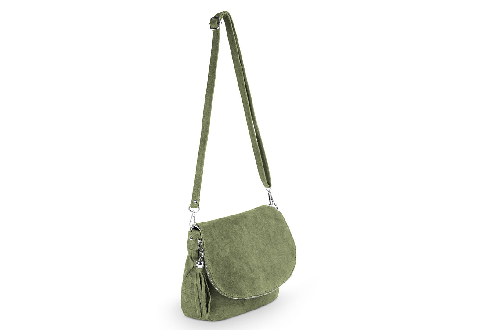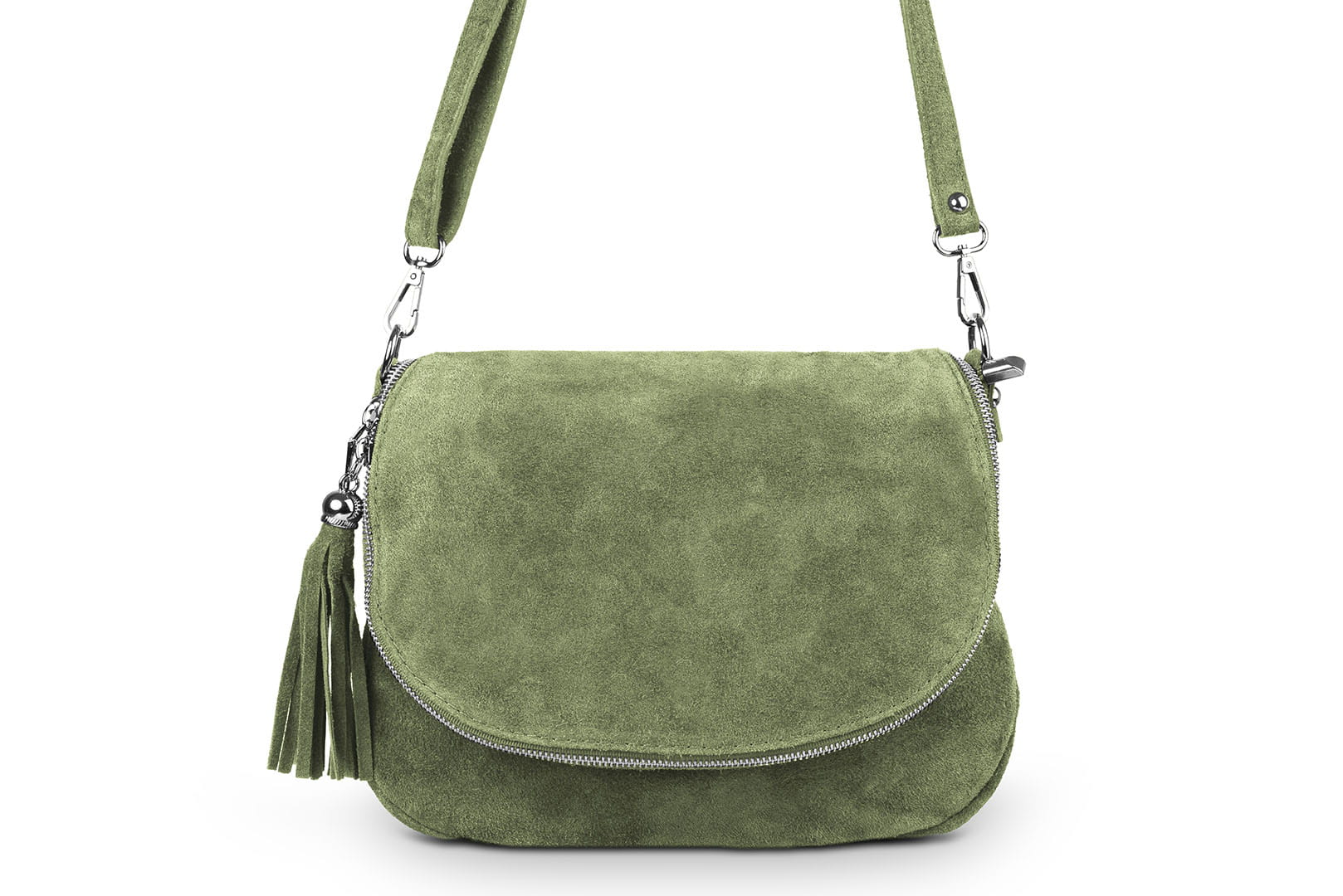Torebka Skórzana Vera Pelle Bisaccia Zamsz Oliwka