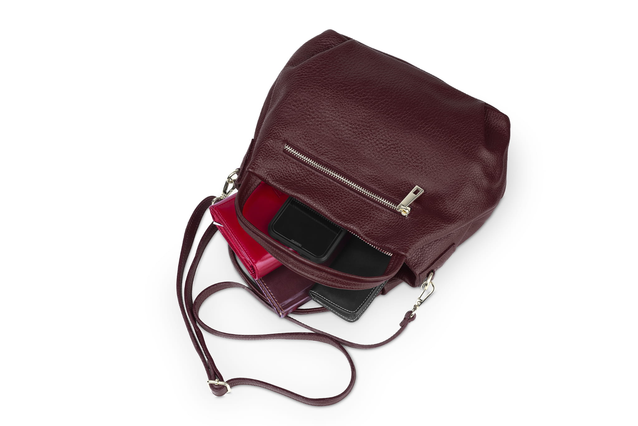 Torebka Skórzana Vera Pelle Bolsa Bordowa
