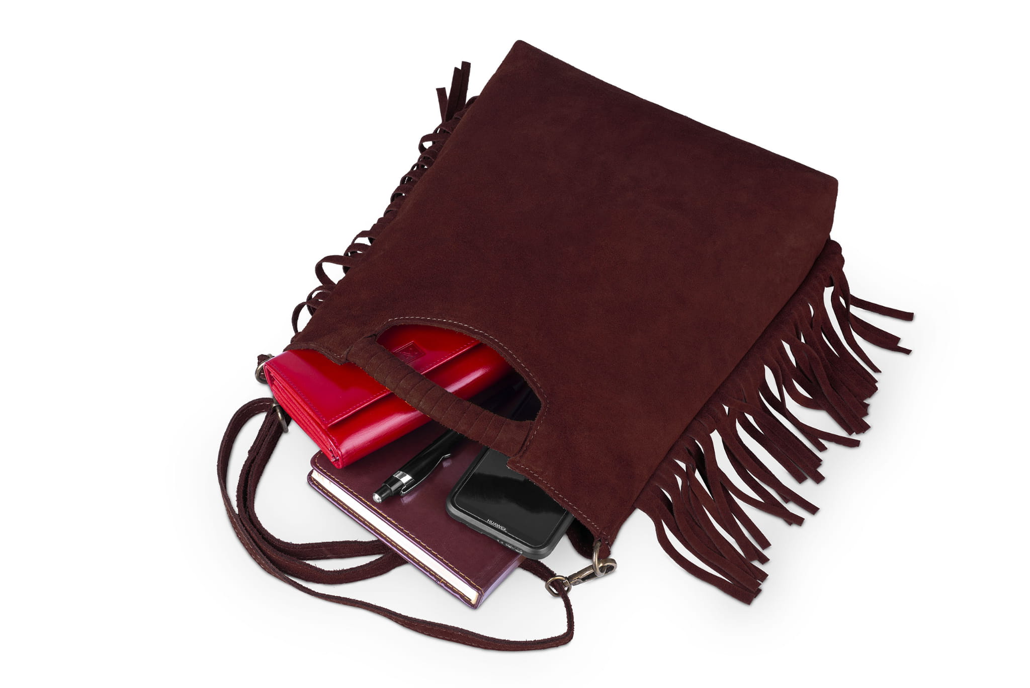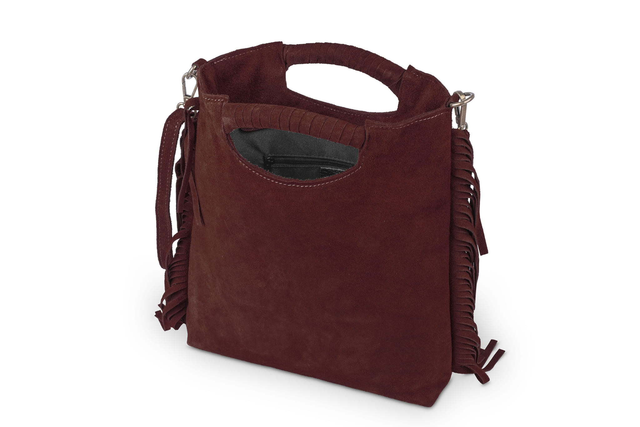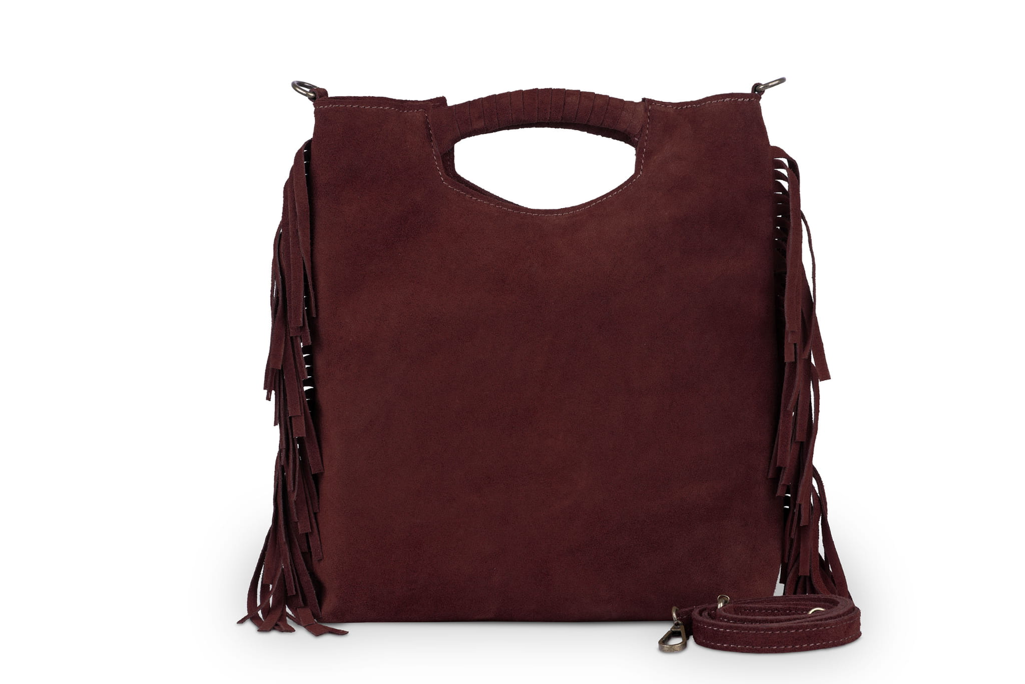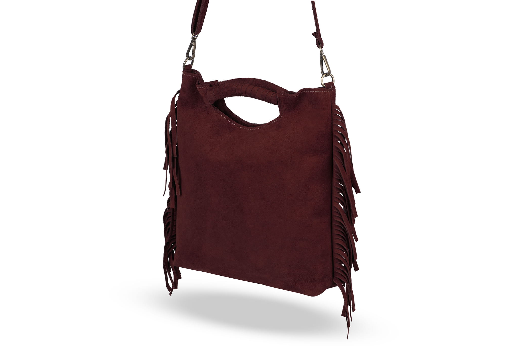Torebka wykonana z wysokogatunkowej, włoskiej skóry zamszowej. Uniwersalny rozmiar, pasek na ramię i wygodne rączki sprawiają, że torebka sprawdza się idealnie w wielu sytuacjach.
