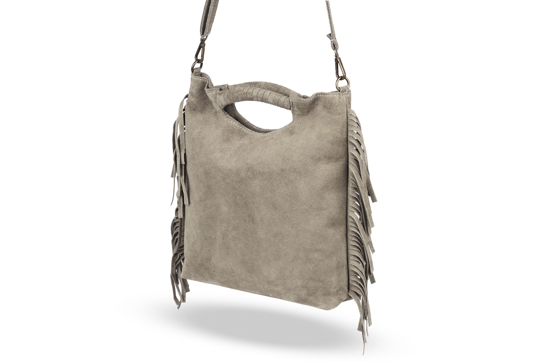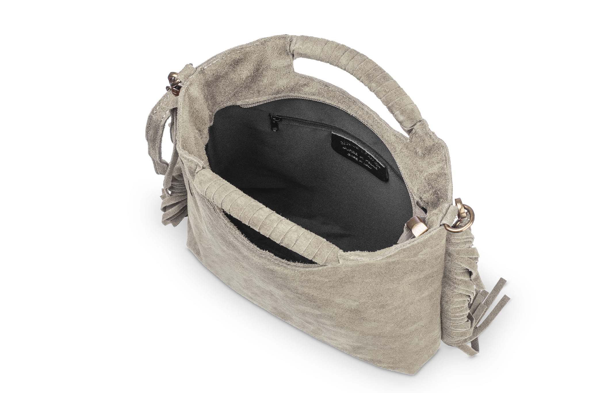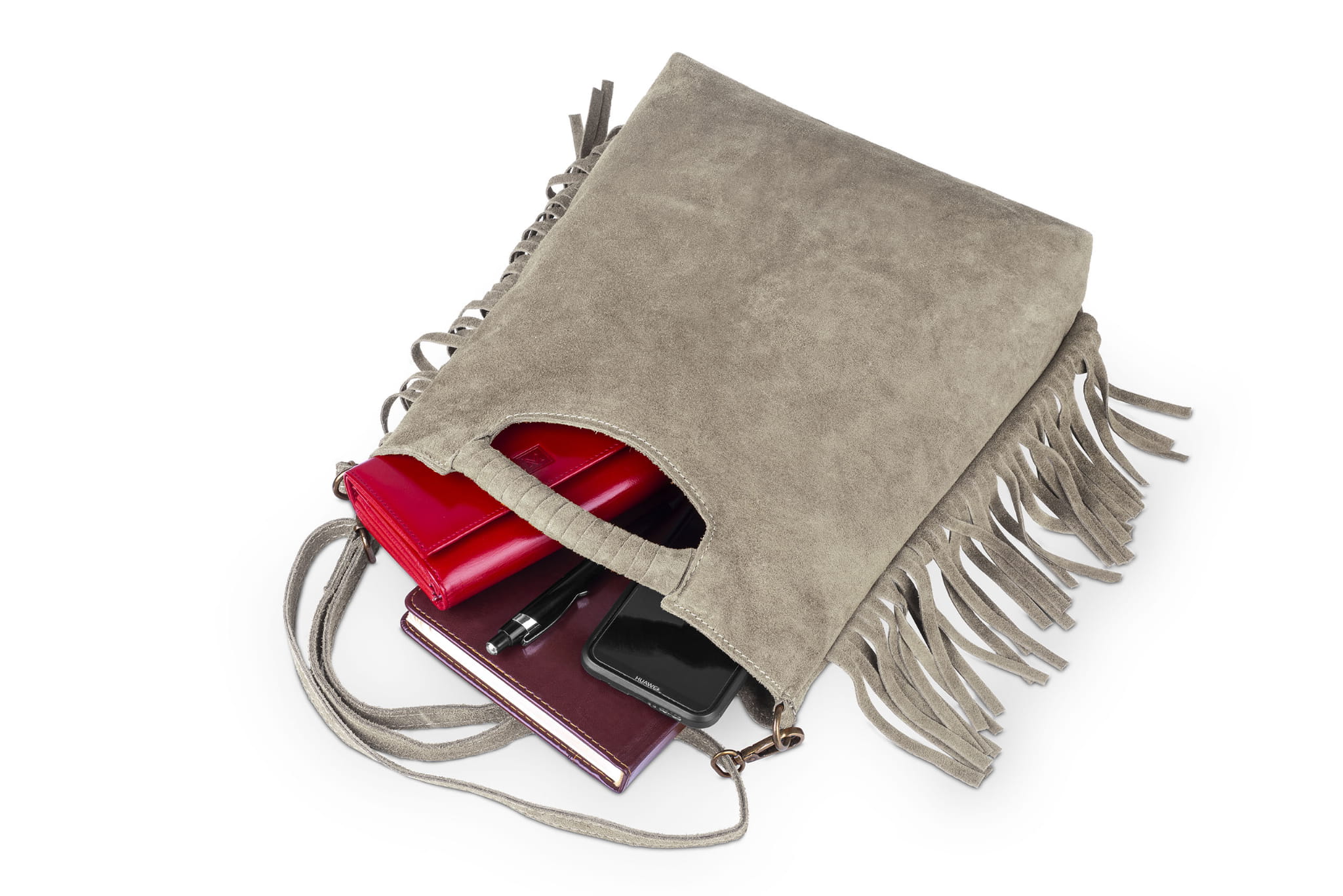 Torebka wykonana z wysokogatunkowej, włoskiej skóry zamszowej. Uniwersalny rozmiar, pasek na ramię i wygodne rączki sprawiają, że torebka sprawdza się idealnie w wielu sytuacjach.