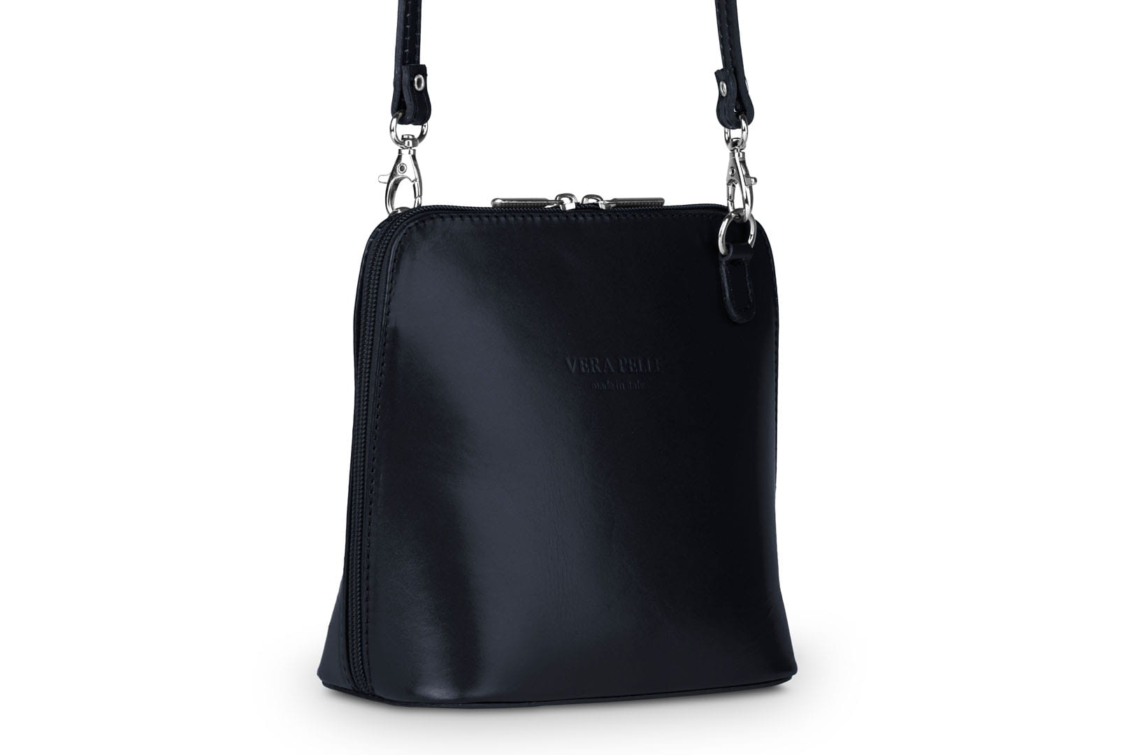 Włoska torebka damska wykonana z naturalnej skóry licowej. Drobna i lekka listonoszka Vera Pelle Mini jest atrakcyjnym dodatkiem do każdej kreacji. Usztywniane dno sprawia, że torebka nie zmienia swojej smukłej formy w trakcie użytkowania.