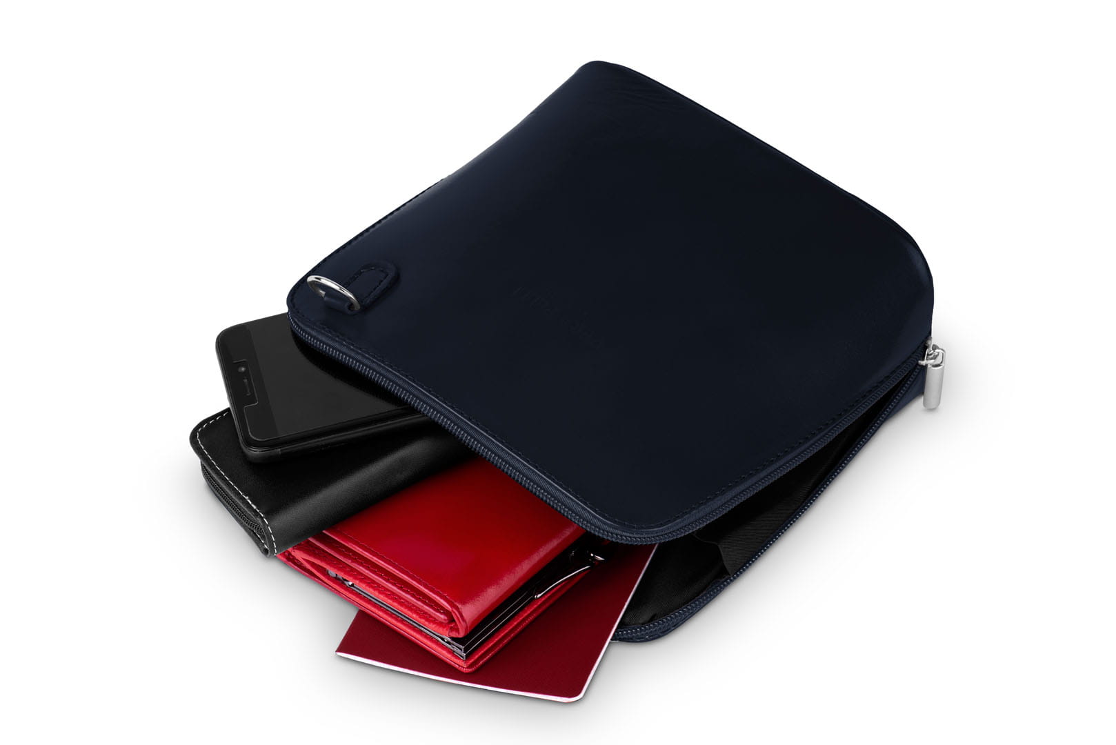 Torebka Skórzana listonoszka Vera Pelle Mini Granatowa
