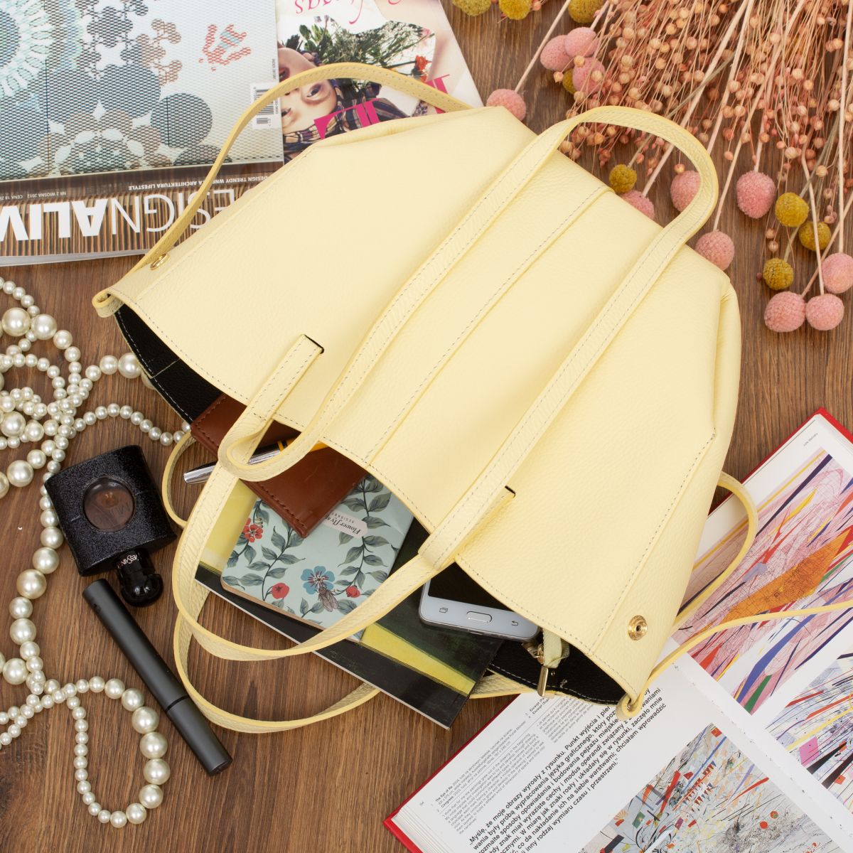 Torebka Skórzana z Saszetką Kaletnik Tocca Żółta