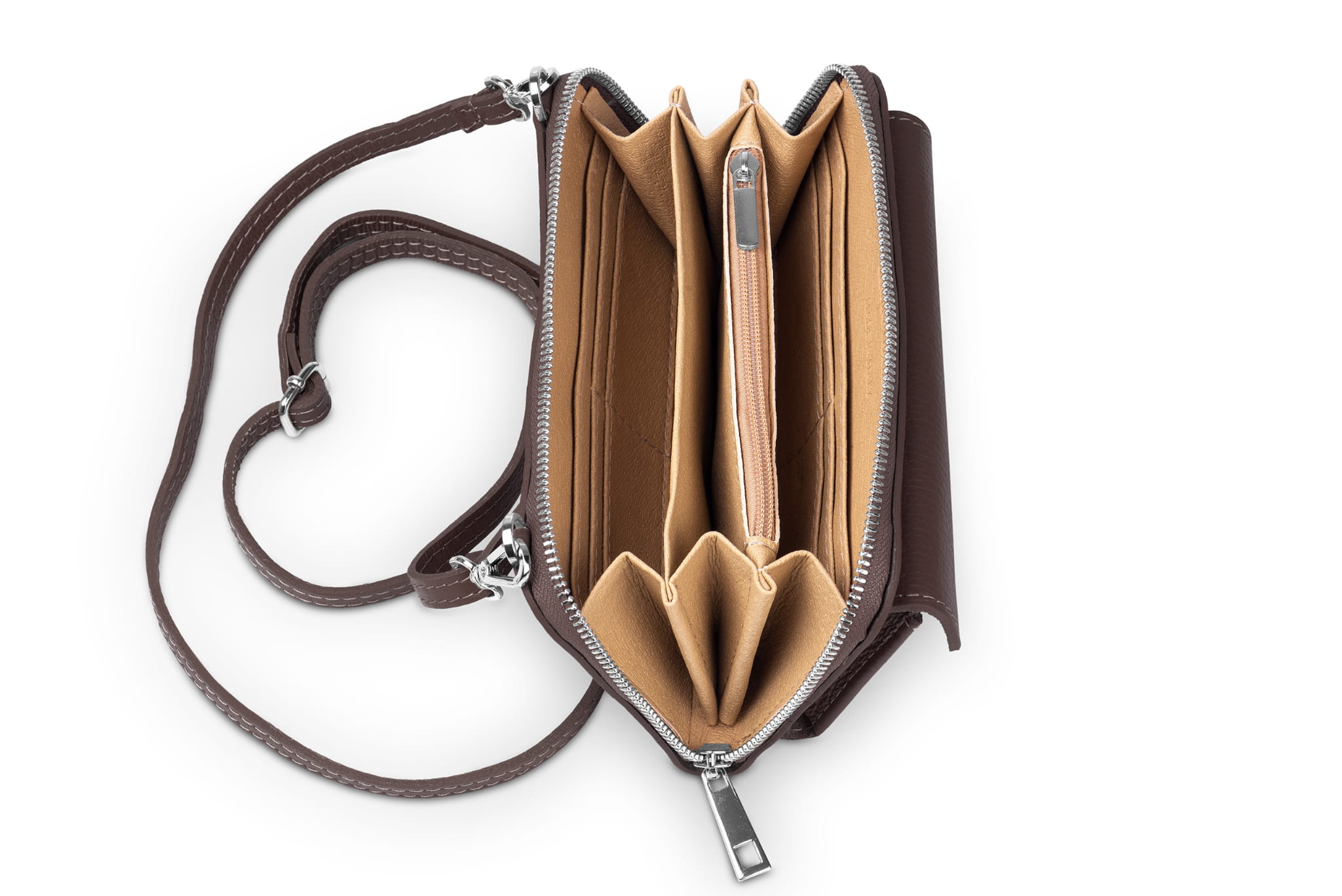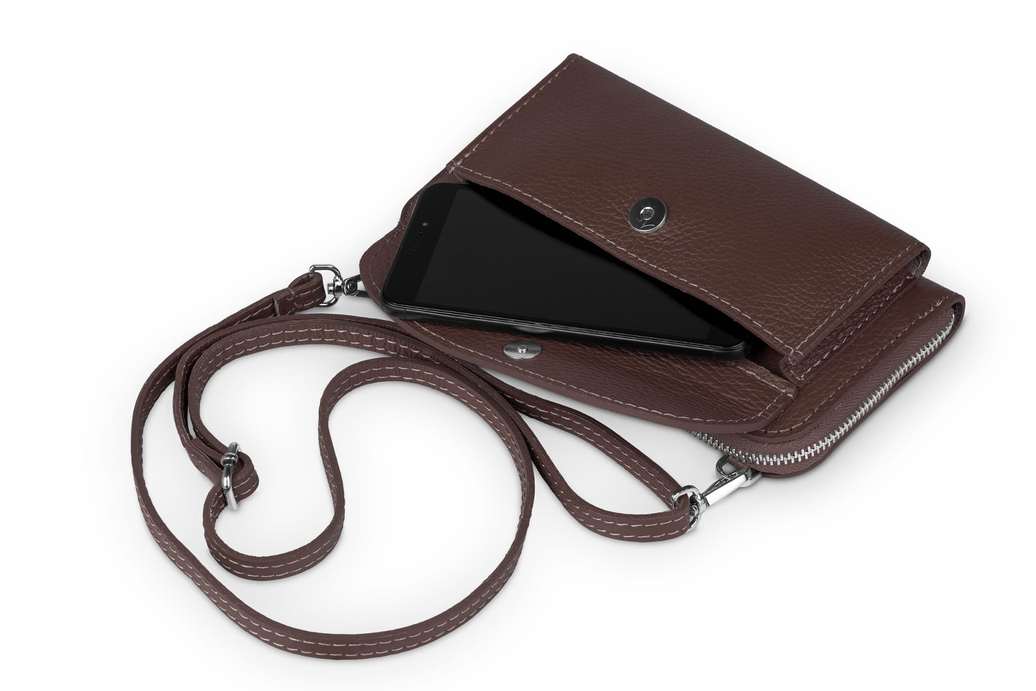 Torebka na telefon Skórzana na ramię Brązowa
