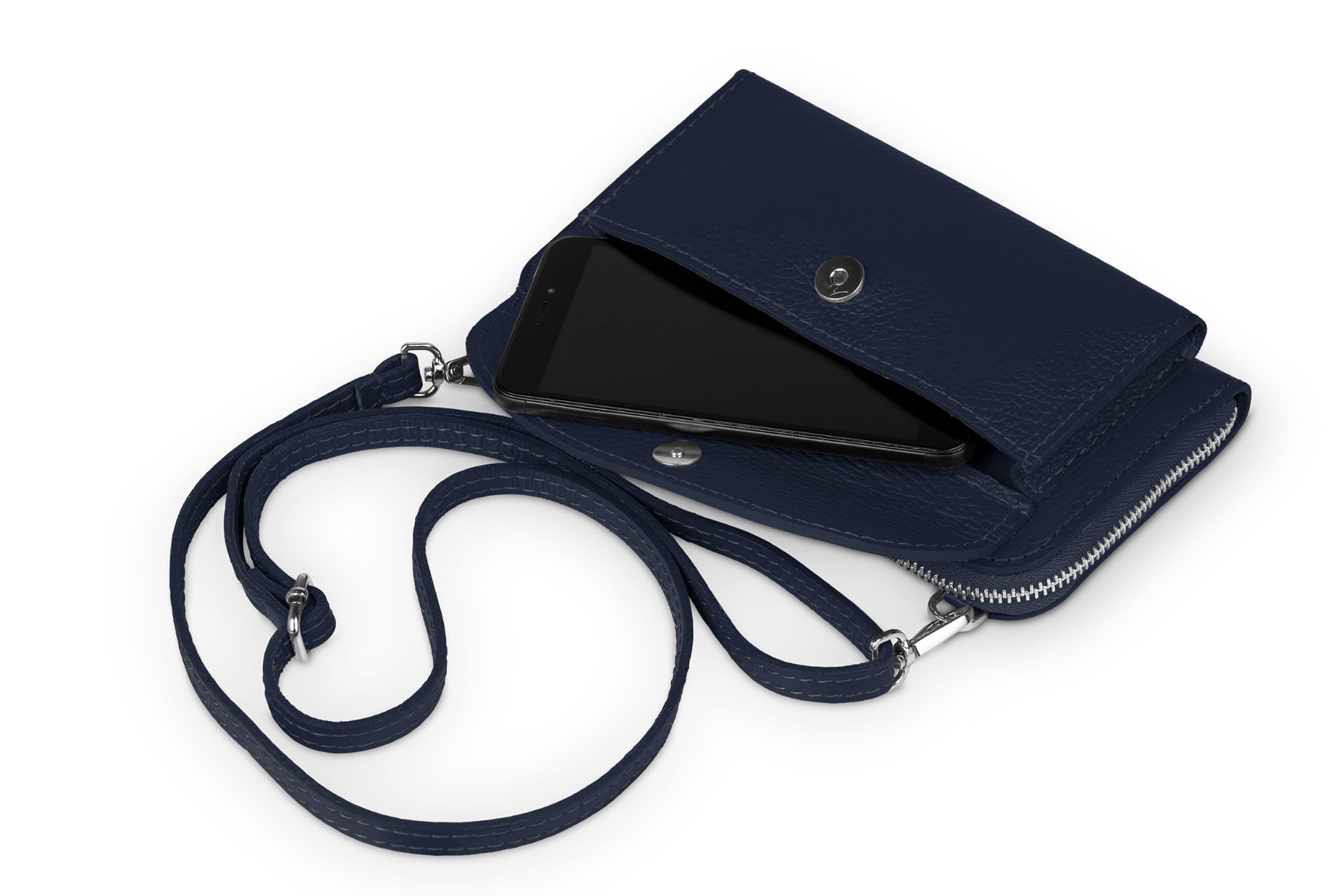 Torebka na telefon Skórzana na ramię Granatowa